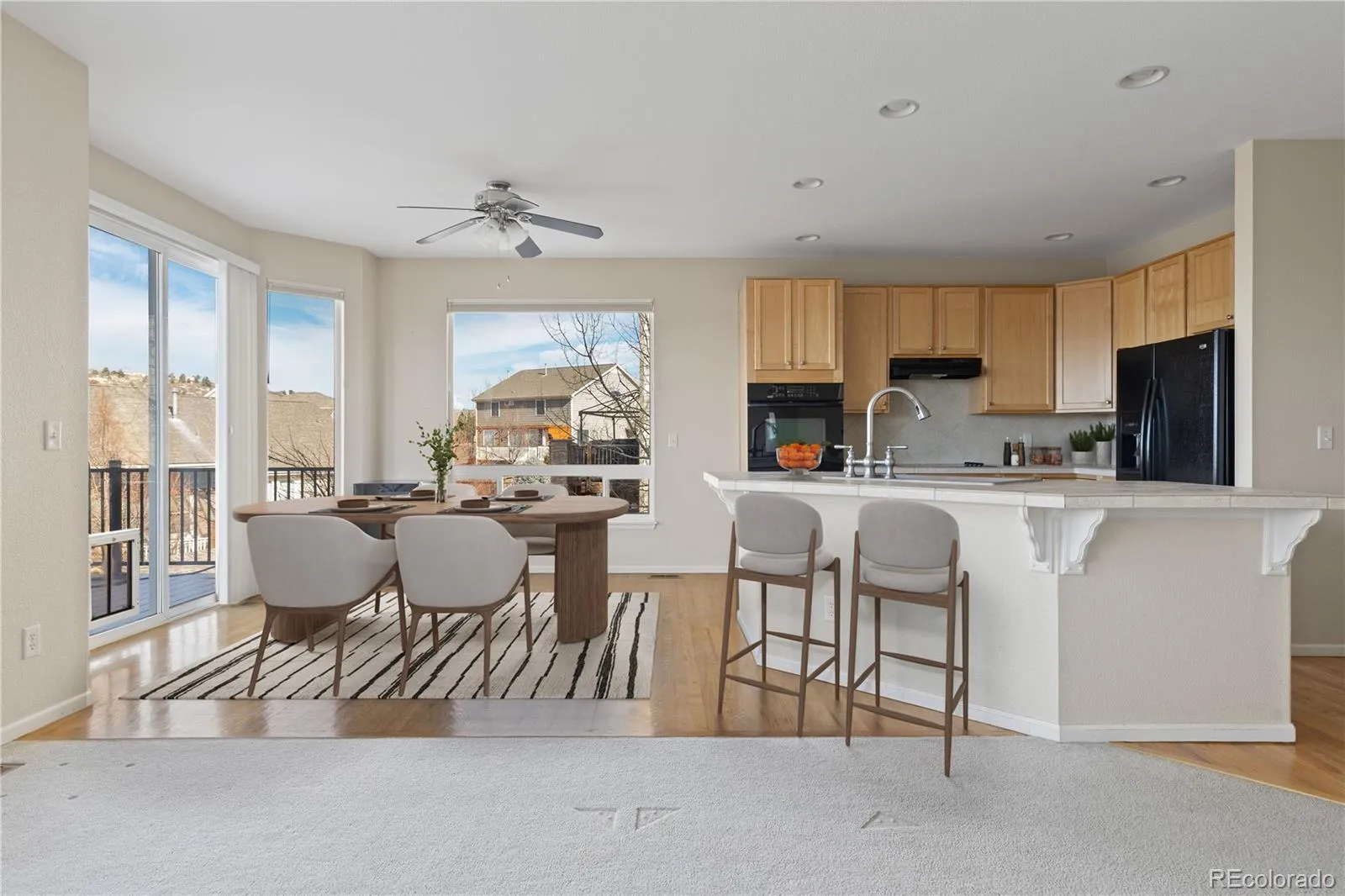 Experience breathtaking, majestic mountain views from this beautifully maintained home, perfectly positioned on over ¼ acre bordering open space with mature trees and lush landscaping. Enjoy unforgettable sunsets from the private back deck or from the comfort of the family room beside the cozy gas fireplace. Designed with entertaining in mind, the open-concept living area flows seamlessly to the expansive new deck just off the kitchen and living room, creating the ideal indoor-outdoor lifestyle.