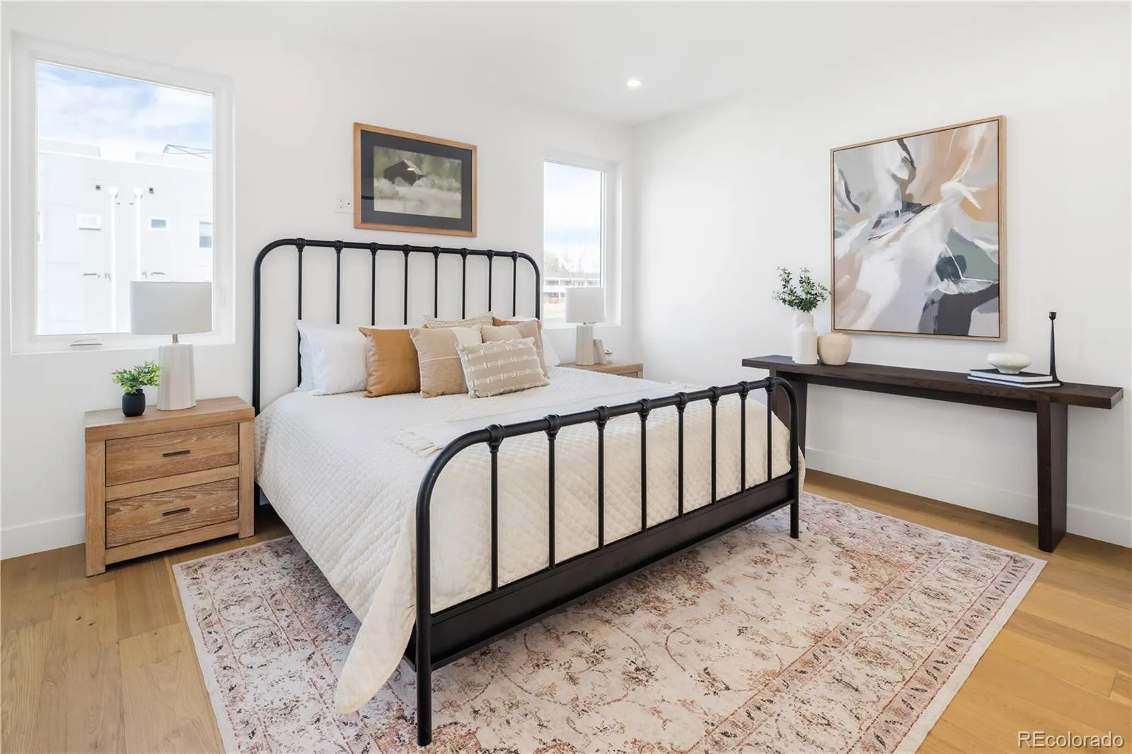 Each level of the home offers panoramic views overlooking the park, community garden, and green belt. The second level includes two guest bedrooms, a full guest bath, and a conveniently located laundry area.