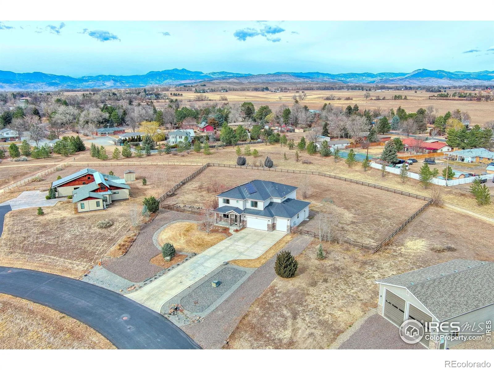 Open House Sat. 2/14 from 10 am – 2 pm. Gorgeous contemporary semi-custom home on 1.35 acres! Have a newer home, privacy and plenty of space in Boulder County! Enjoy great mountain views of Longs Peak from the upstairs! Open and sunny floor plan with 18′ ceilings in living room makes for a super entertaining space. Kitchen is a cooks paradise with a Thermadore refrigerator and range hood, new 6 burner gas stove and kitchen island for seating. Large primary bedroom has 5 piece luxury bathroom. Beautifully finished basement already has a living room, kitchen, bar, bedroom, full bathroom and could be a mother in law suit. Terrific gardens with fruit trees and raised beds are ready for your spring plantings. This has outdoor living at it’s finest with a large patio, firepit, fenced yard and plenty of privacy. Incredible 5 car drive through garage with 9′ door. House faces 7 acres of open space that will never be built upon. This house in the highly desirable Monte Cielo neighborhood is a rare find. Neighborhood has 22 custom & semi-custom homes with 24 acres of open space & 1 mile walking path on the perimeter. Outbuildings and ADU’s are allowed. Don’t miss this opportunity!