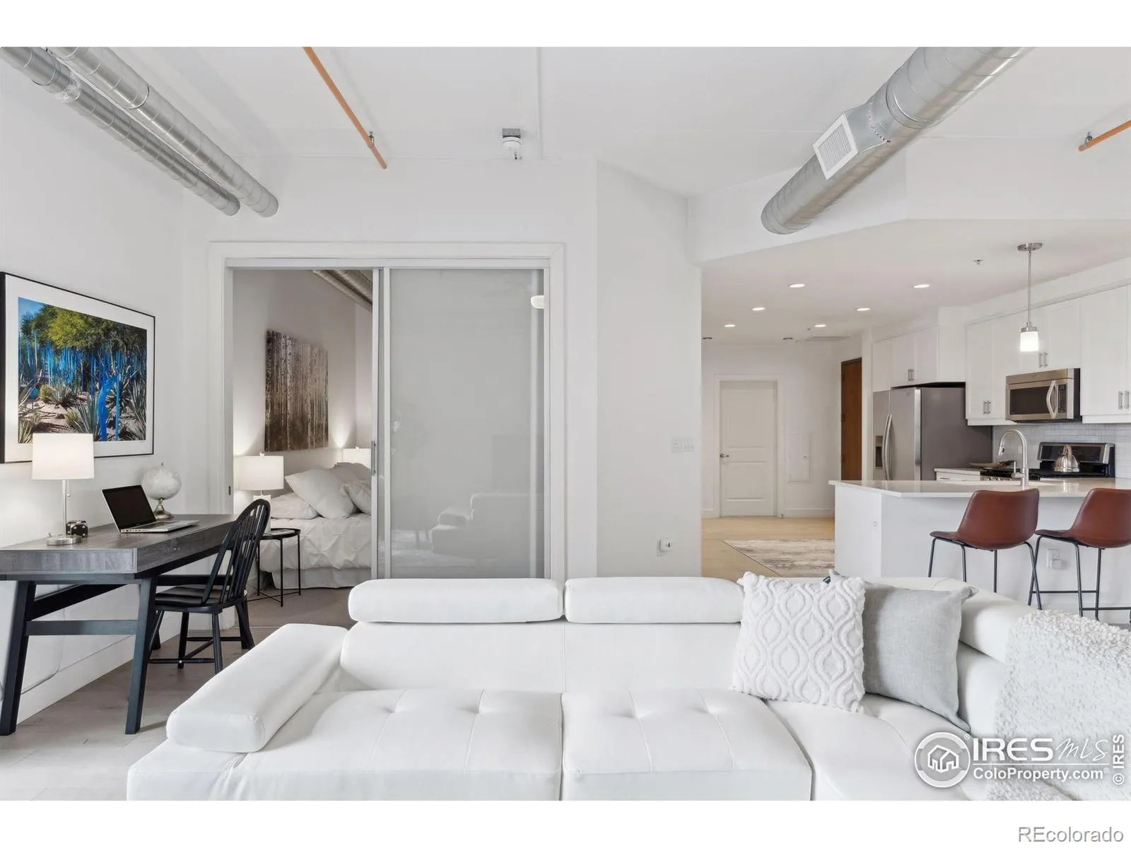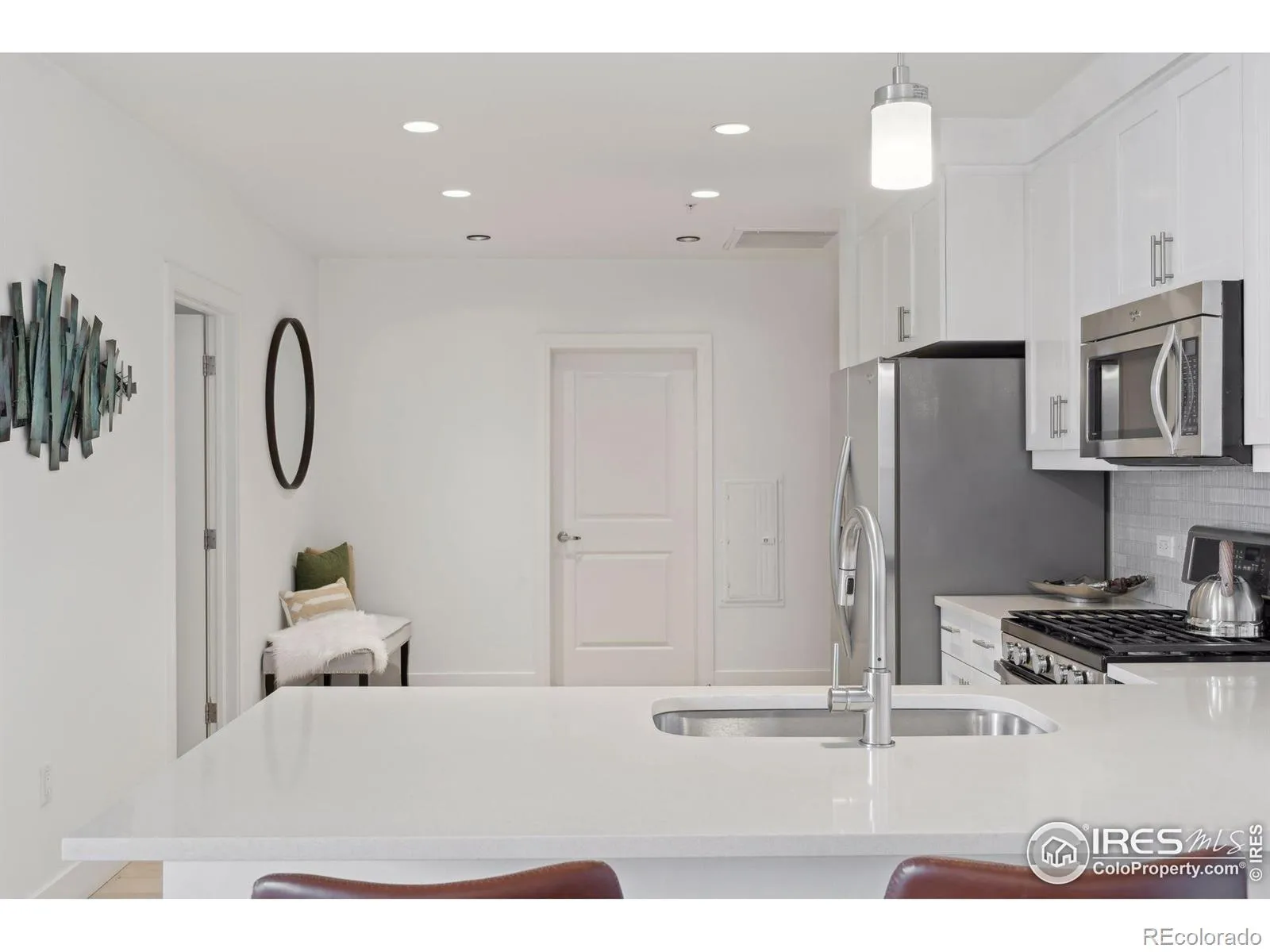 Replete with modern finishes, this spacious 1 bedroom residence offers a convenient, lock-and-leave lifestyle in a vibrant Boulder location. A generous and open, loft-style layout unfolds with fresh paint, 100% wool Berber carpeting and white oak wood flooring. The home chef is treated to a sleek kitchen featuring designer Ann Sacks tile, an eat in peninsula with quartz counters and stainless steel appliances including a gas range. Open a glass door in the natural light-filled living space to reveal access to a private, south-facing outdoor balcony. Retreat to a sizable bedroom highlighted by a large walk-in closet and an en-suite bath. A laundry/utility room features a washer and dryer set and ample storage. Built with concrete and steel construction, this secure elevator building includes underground garage parking and offers exclusive access to the on-site Peloton amenities featuring a 24-hour commercial-quality gym, a year-round heated rooftop pool and hot tubs, dedicated community management, private dog park and walkable award-winning restaurants. A central Boulder location provides proximity to local eateries, coffee shops, microbreweries, premier yoga and fitness studios, Google, Apple, Trader Joe’s, Whole Foods, biking paths, and the outdoor Twenty-Ninth Street retail district.