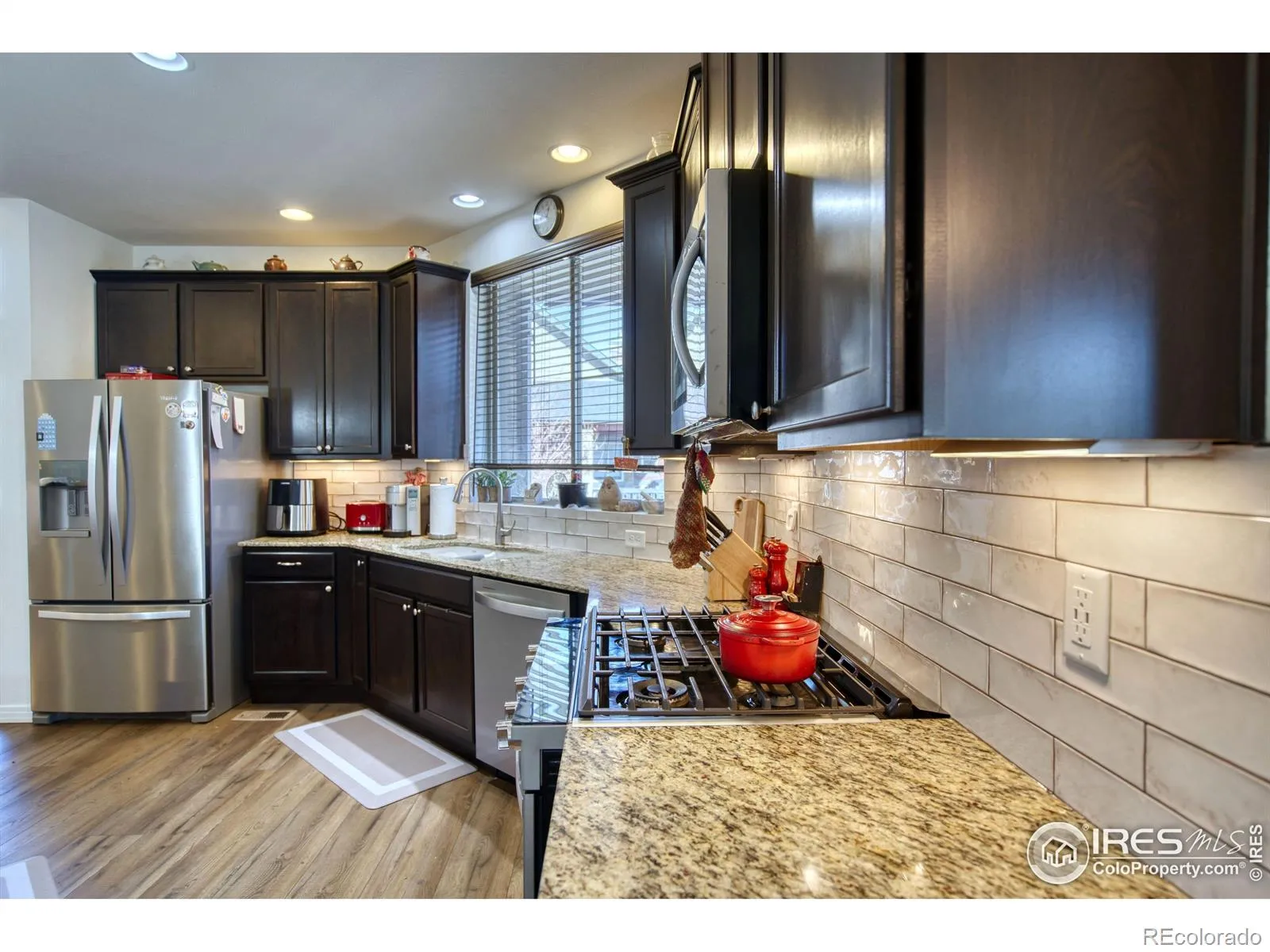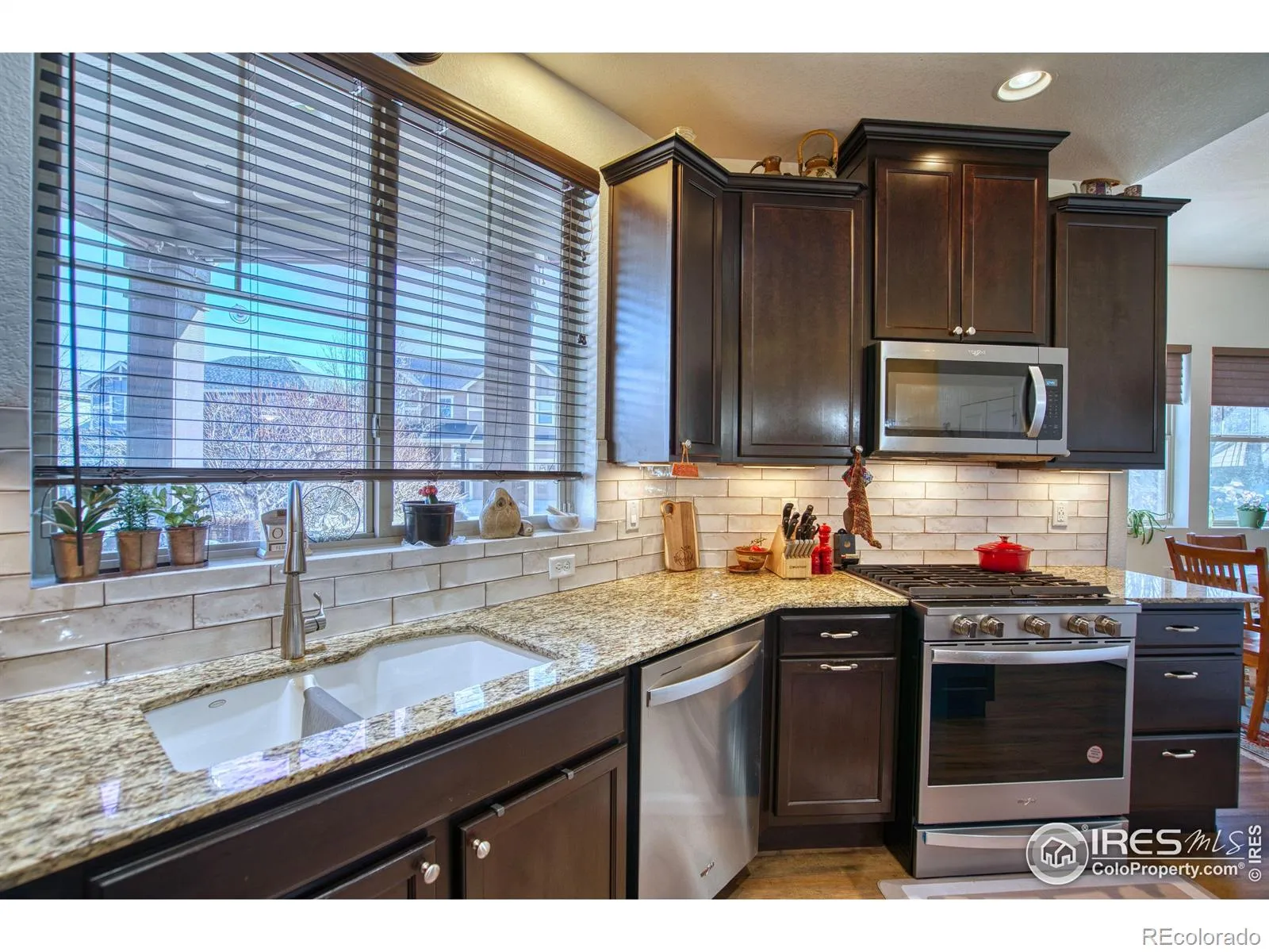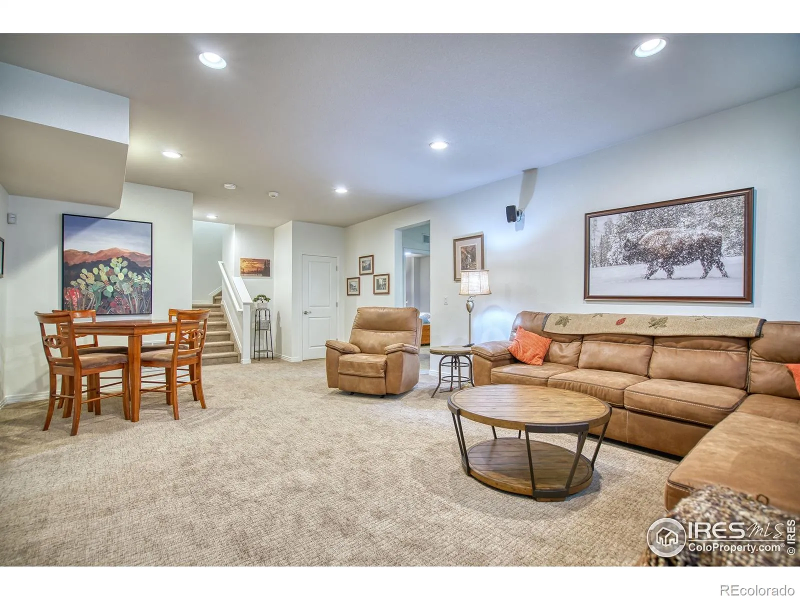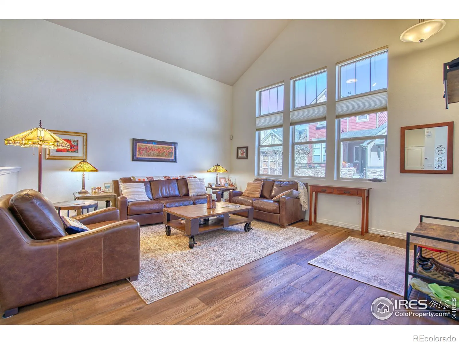 Feel the warmth as you walk into this highly desirable ranch condo in the Erie Commons. The prime location of this property is walkable to the library, recreation center, restaurants, shops and more. This corner unit has an open concept design with vaulted ceilings making the main level feel very spacious. Enjoy the weather and a beverage on your southeast facing patio. Newer high-end laminate flooring on the main level compliments the clean ascetic. Listen to your favorite music or newscast on the whole-home sound system. In the fully finished basement you will find two bedrooms with ample closet space. This is a great property that your clients need to see right away!