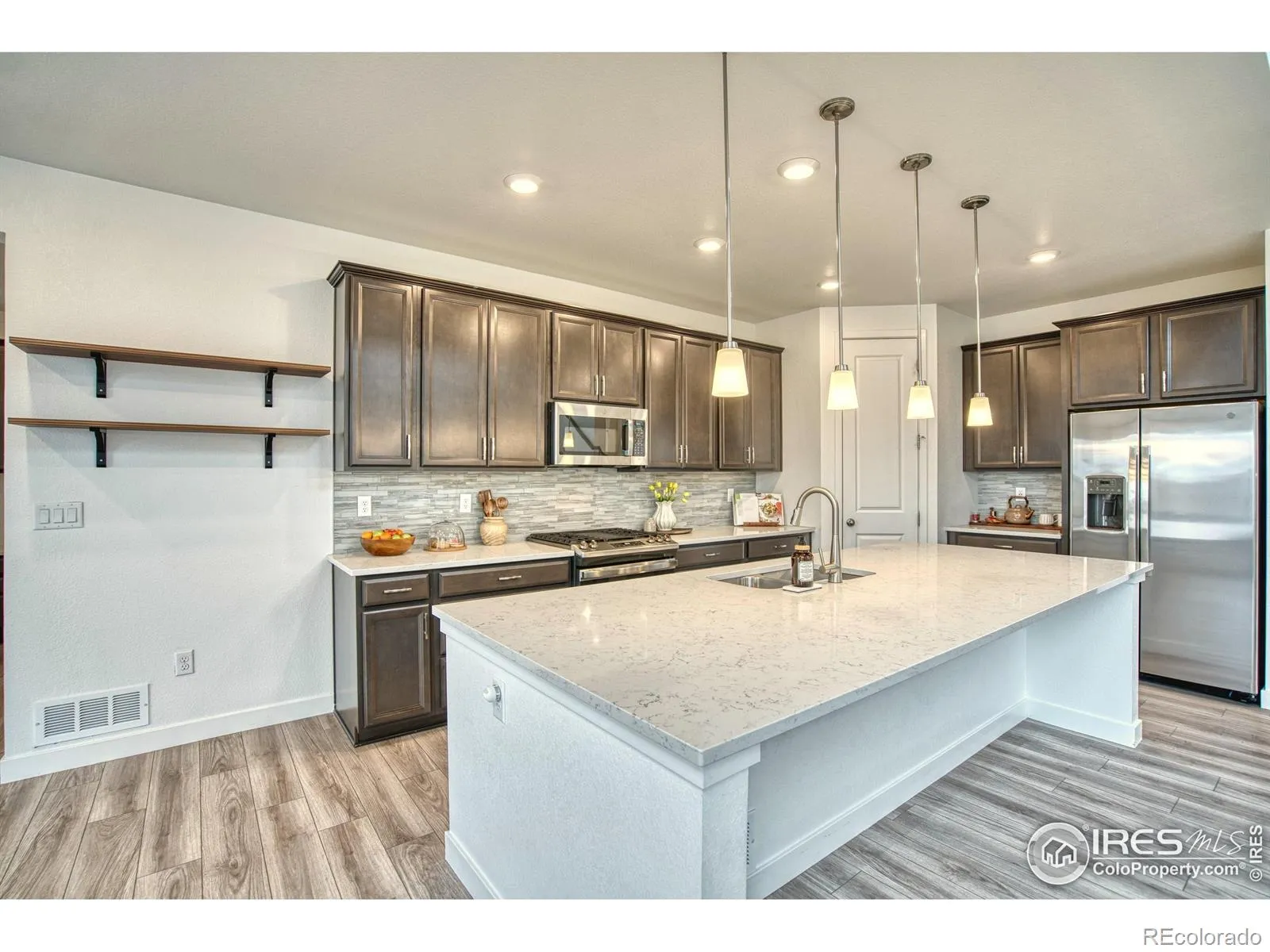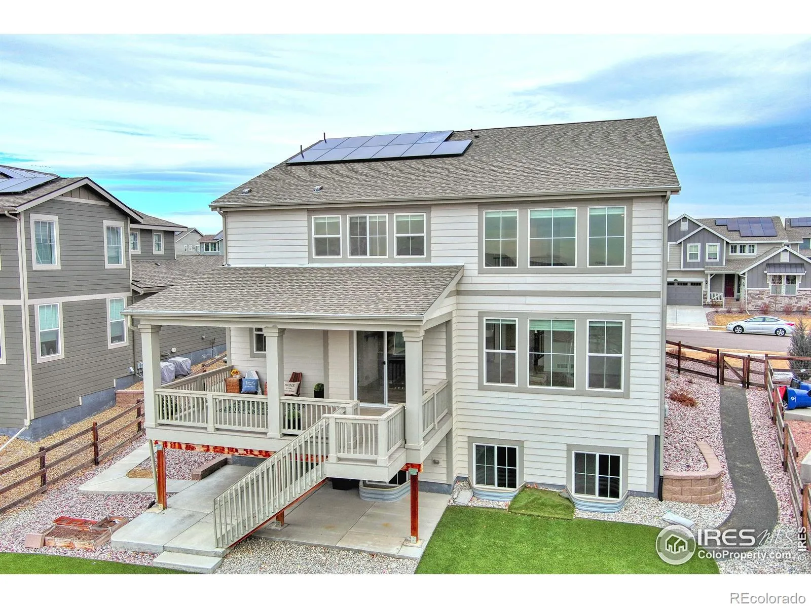 This beautifully designed 5-bedroom, 4-bath home offers exceptional space, light, and functionality, paired with a rare 4-car tandem garage and solar panels for energy efficiency and long-term savings. Natural light fills the home through expansive windows, enhancing the open two-story living room and creating a bright, welcoming atmosphere throughout. The spacious kitchen is built for both everyday living and entertaining, featuring a large center island, walk-in pantry, and an adjacent workspace/mudroom area that adds everyday convenience. A main-level bedroom with an adjacent full bathroom provides excellent flexibility for guests or multi-use living arrangements. Upstairs, the primary suite is a true retreat with scenic mountain views, two large walk-in closets, and expansive primary bath with a large walk-in shower, double sinks, and a dedicated center vanity. A second bedroom enjoys a private full bathroom, while the third and fourth bedrooms are connected by a shared full bath, offering a smart and functional layout. The full unfinished basement with garden-level windows provides abundant natural light and endless potential for future customization. Outdoors, enjoy a beautifully landscaped, low-maintenance backyard with artificial turf, dual side-yard gates with walkway access, and a patio deck featuring a peek-a-boo mountain view-perfect for relaxing or entertaining. With its thoughtful layout, generous living spaces, energy-smart features, and strong connection to natural light and outdoor living, this home offers a rare combination of comfort, flexibility, and long-term potential. A new roof will be installed at Seller’s expense, either before closing or immediately after closing based on scheduling and availability.