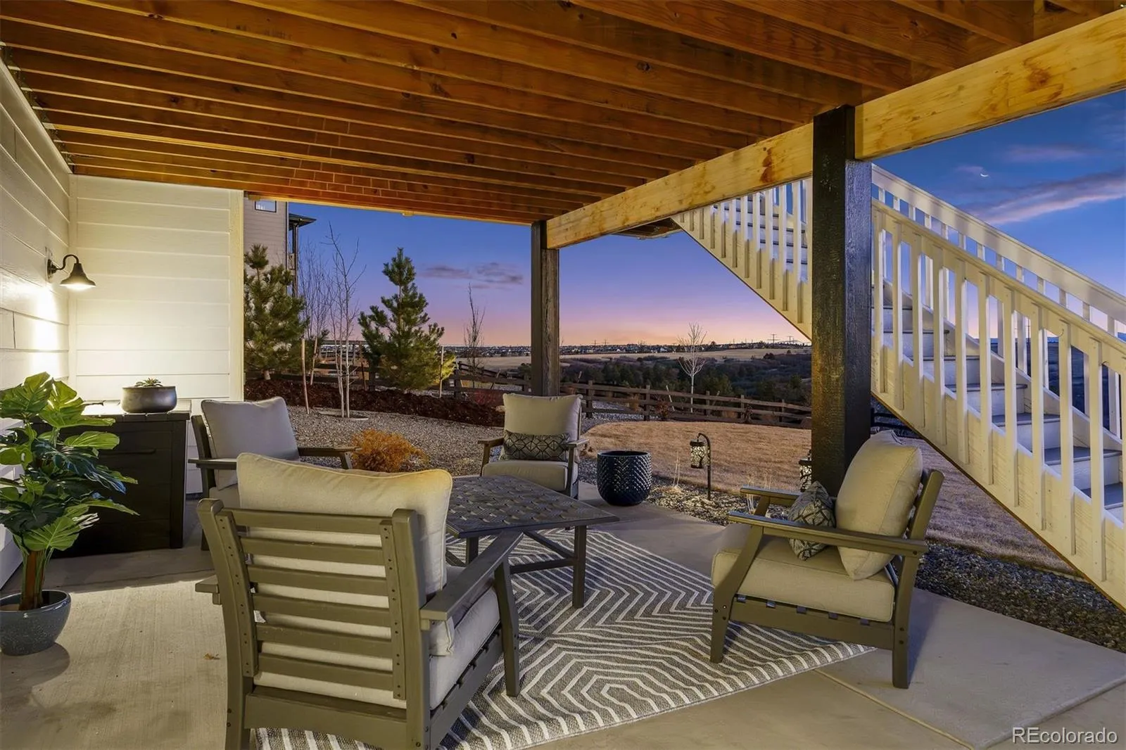 There are homes that sit on the land, and then there are homes that hold the horizon. Set on a $300,000 premium lot backing to open spaced canyons, this 2023 Toll Brothers Bross model opens to a cinematic sweep of Pikes Peak, Sleeping Indian, Cheyenne Mountain, and the long, unbroken drama of Colorado sunsets. Light moves deliberately through the interior. A two-story living room rises around a custom porcelain slate fireplace, its scale softened by expansive 14′ stackable glass door that draws the mountains inward, hour by hour. The gourmet kitchen is composed and confident, KitchenAid stainless appliances, double ovens, Azul Plantino granite, matte black hardware, slow-close cabinetry, and a walk-in pantry—equal parts precision and presence. The main-level primary suite is intentionally placed, oriented toward the views and finished with a soaking tub, dual vanities, and a custom walk-in closet—private, grounded, and removed from the rest of the home. Covered upper and lower outdoor living spaces extend the architecture into the landscape, overlooking protected open space with a dedicated fire pit setting, fenced yard, and curated landscaping. No hassle seasonal/holiday lighting on exterior of home. Below, the walk-out basement spans 2,508 square feet with 9-foot ceilings, bath rough-in, radon mitigation, and solar hookup—quietly expansive, and ready for interpretation. Additional details include a three-car extended 4′ garage with LED lighting, tankless water heater for unlimited warm water, dual furnaces and dual A/C systems, and custom two-story Ethan Allen silk drapery that frames the verticality of the home. Located within the 1000+ acre Macanta community, residents enjoy direct access to miles of trails, resort-style amenities, and a sense of space that feels increasingly rare—yet remains just 20 minutes from DTC and equidistant to Denver and Colorado Springs. This is architecture shaped by light, land, and intention.