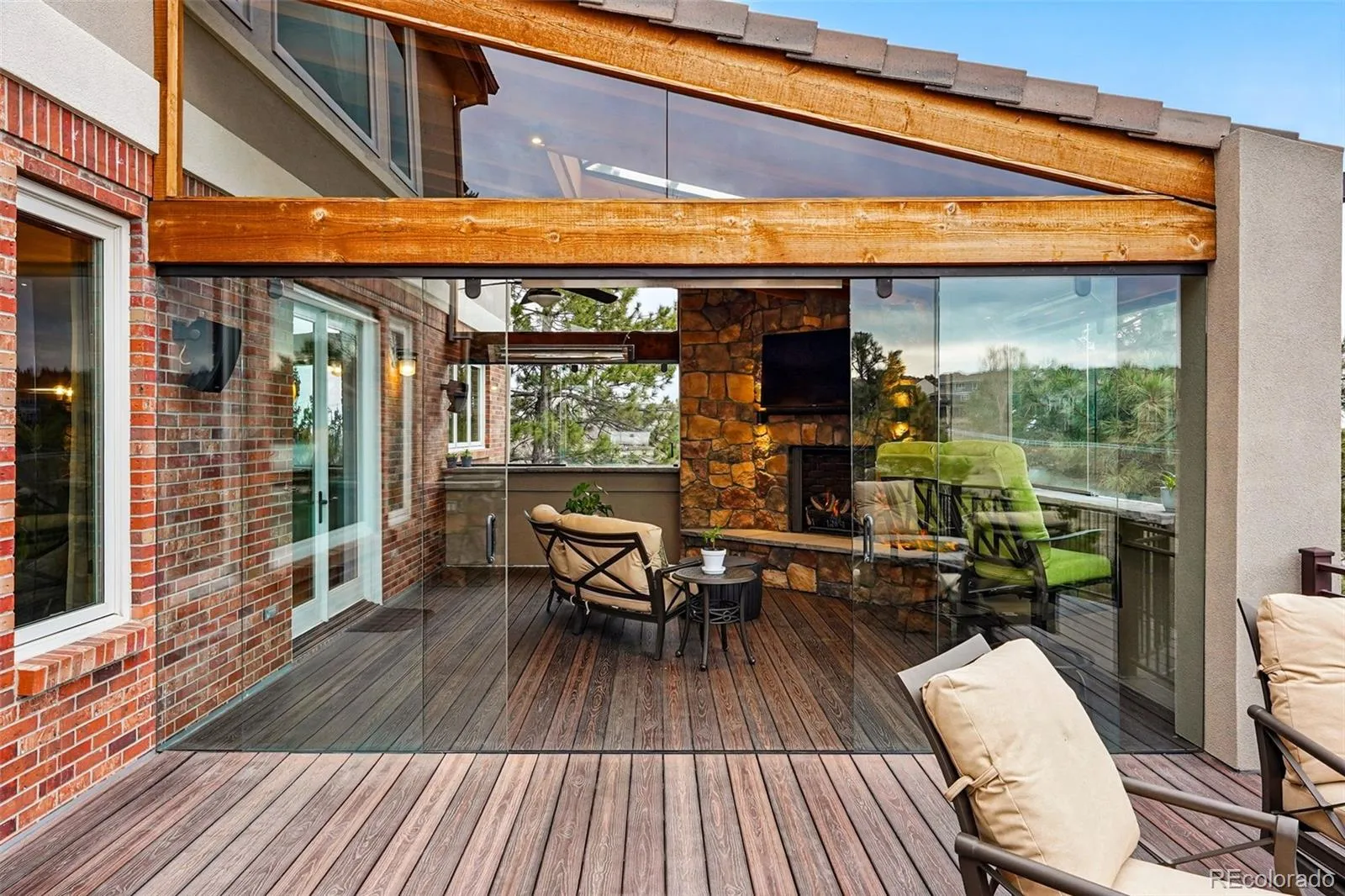 Now updated and refreshed including: Brand new paint and new windows throughout, as well as newer HVAC and tons of additional upgrades. Welcome to this breathtaking residence, nestled in one of Castle Pines’ most sought-after neighborhoods. As you enter this gated enclave, you’re immediately greeted by a beautifully landscaped front yard, setting the tone for the elegance that lies beyond. Step inside, and a grand two-story foyer impresses with its soaring ceilings and intricate design, drawing you deeper into the home. Large, airy rooms throughout create a sense of space and openness, with every window framing picturesque views of the surrounding natural beauty. This home is thoughtfully designed and meticulously upgraded, featuring new windows throughout. The showstopper is the fully enclosed all-seasons room off the back deck, where you can enjoy year-round comfort overlooking the open space behind the house. Complete with a striking stone gas fireplace, infrared heaters, custom lighting, sliding glass doors, and an outdoor TV, this space is perfect for entertaining or simply relaxing every day or night. Step outside onto the expansive deck to experience a built-in gas grill and Green Egg, ideal for preparing your favorite meals. Afterward, gather around the gas firepit for a cozy evening of s’mores or retreat below to the private hot tub for ultimate relaxation. Whether you’re playing a game of chess or simply enjoying the serenity, this home has it all. Located in the prestigious Castle Pines North neighborhood, you’ll enjoy exceptional amenities like a neighborhood pool, miles of scenic trails, and stunning mountain views. Plus, with easy access to top-rated metro Denver schools, this home offers the perfect balance of luxury and convenience.