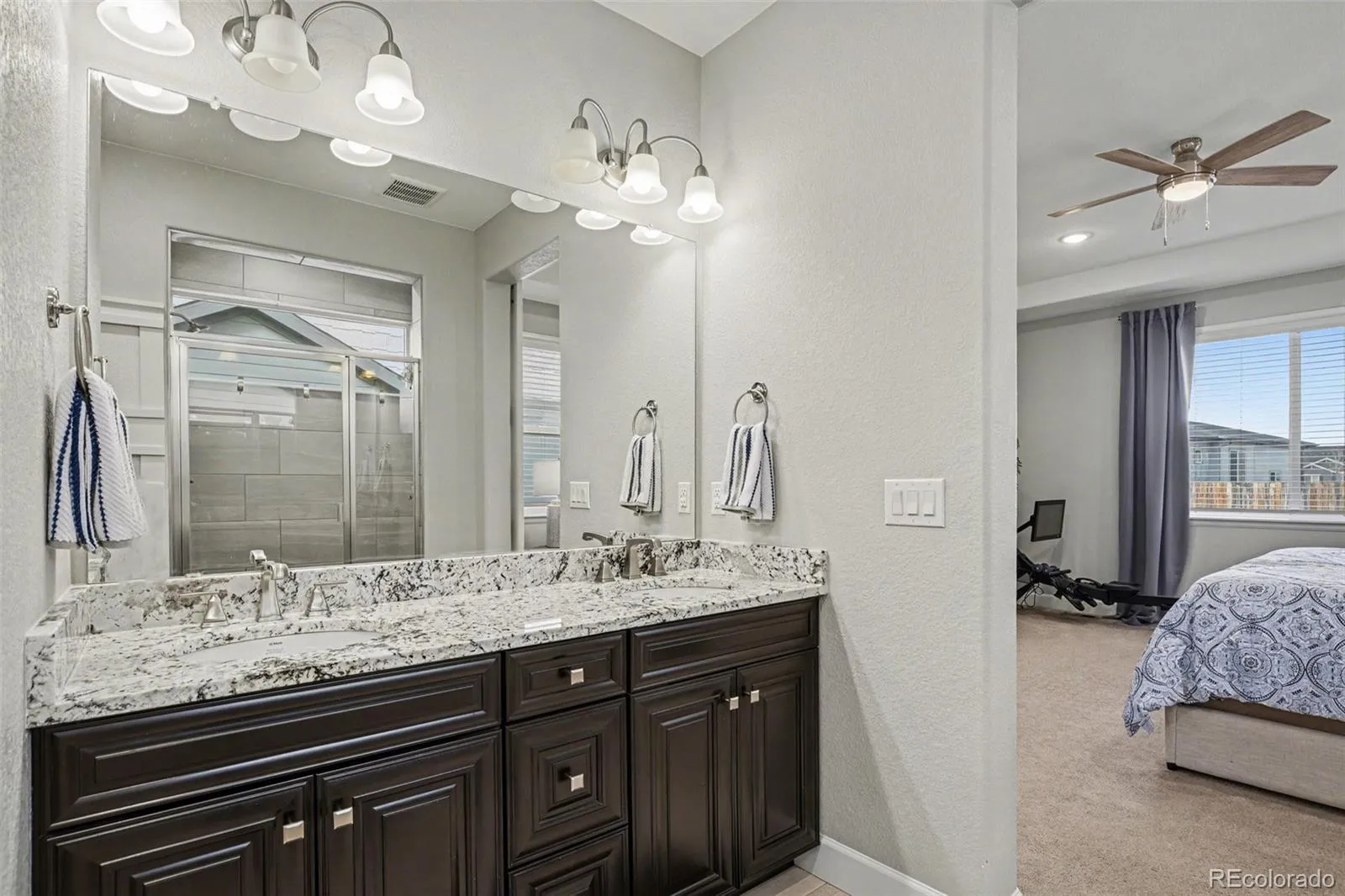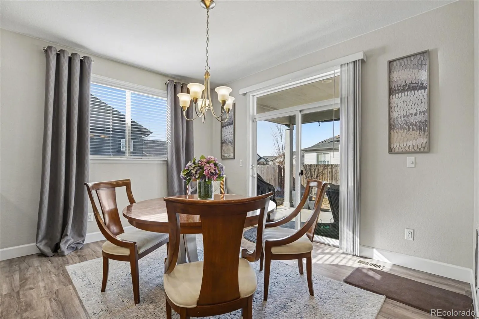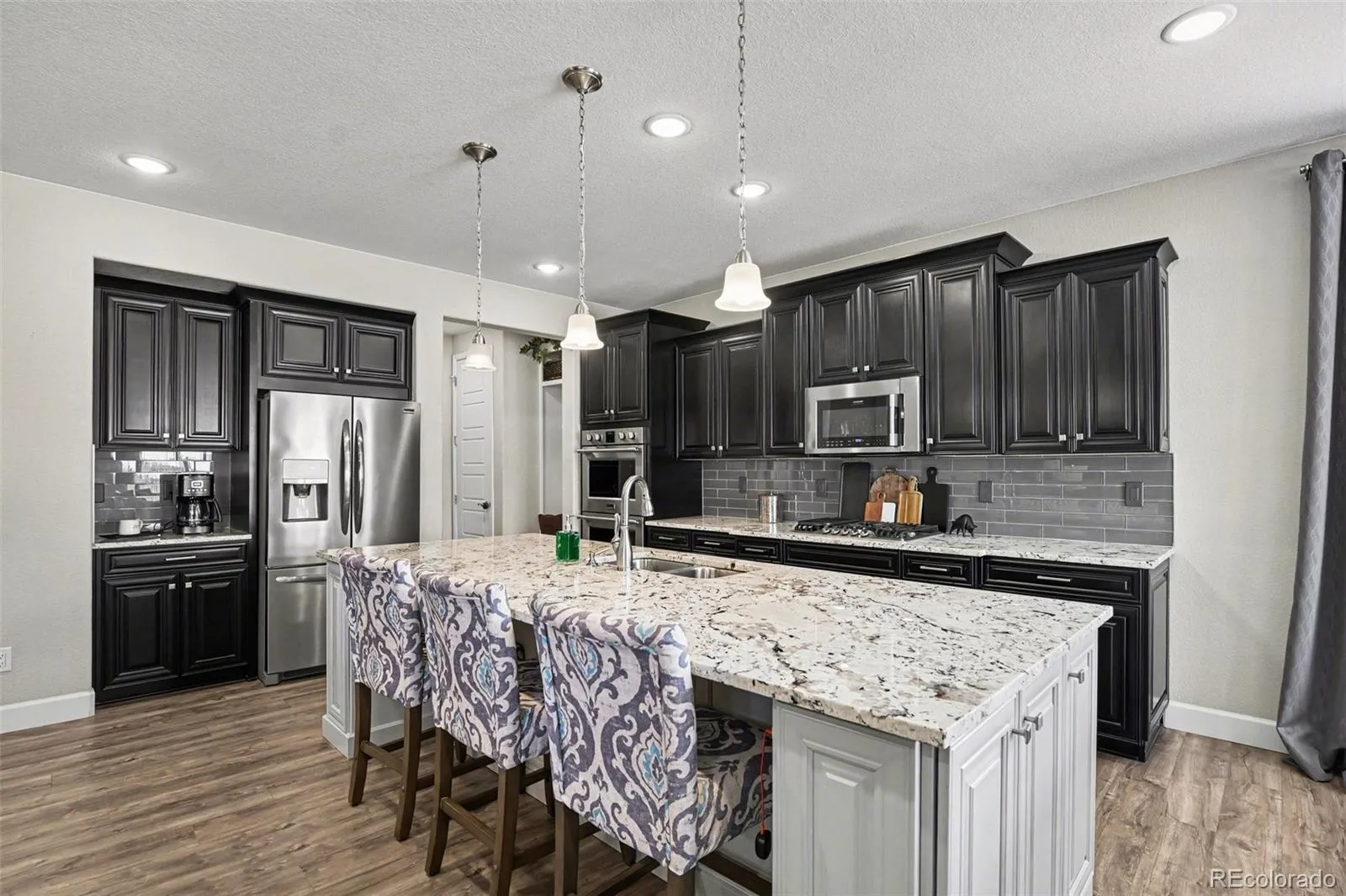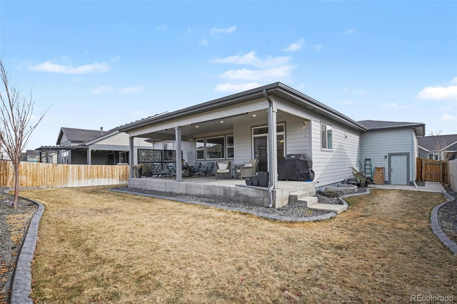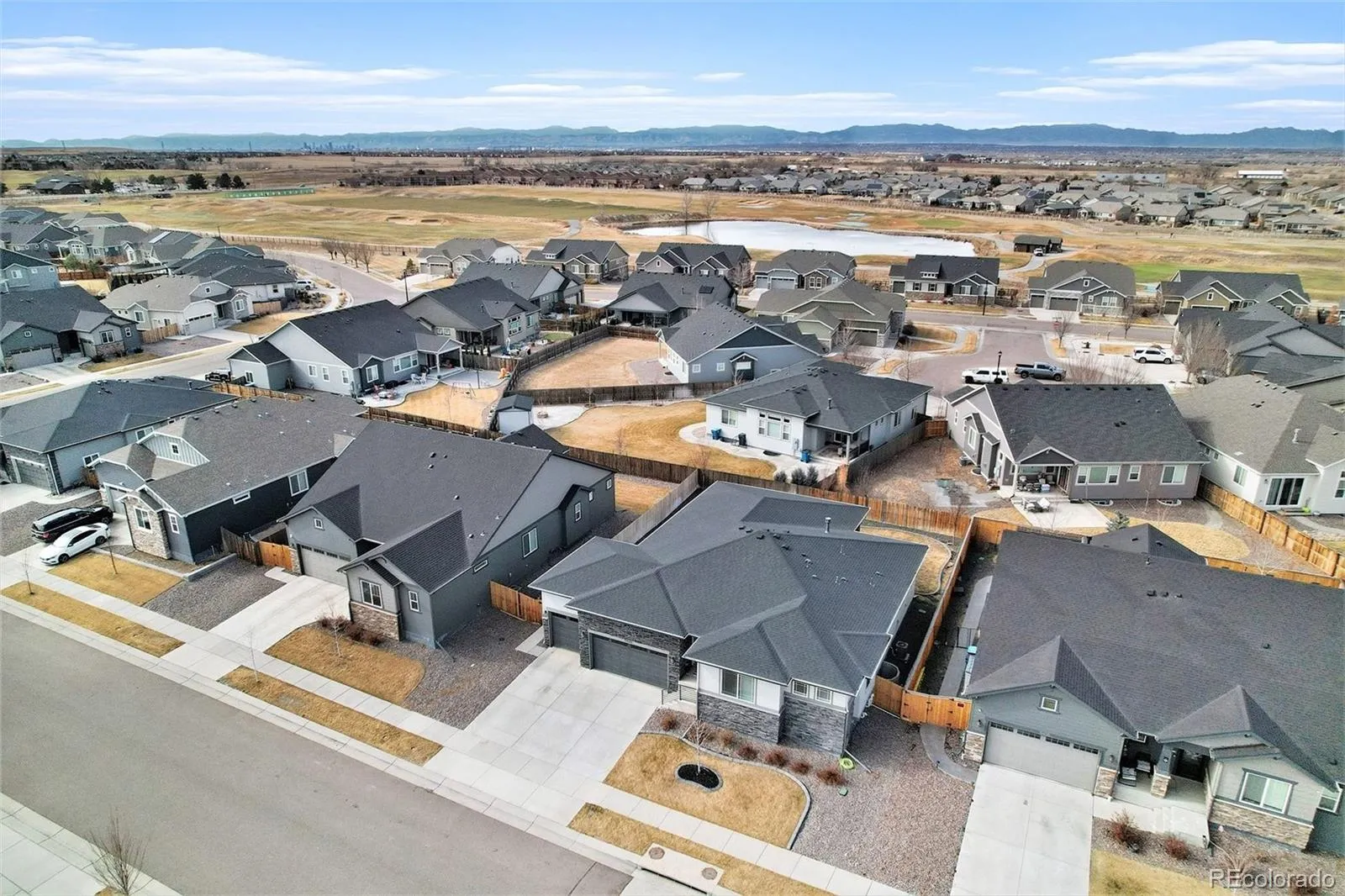 Welcome to The Villages at Buffalo Run! Built in 2021 and still showing like new, no upgrades were skipped during construction. This ranch-style home offers convenient main-floor living with plenty of space for work, study, and entertaining. The open kitchen is the heart of the home, featuring a generous island, gas cooktop, double oven, stainless steel appliances, abundant cabinetry, and a spacious pantry. Just off the kitchen is a versatile office nook — perfect for remote work, organization, or managing household tasks. The kitchen flows seamlessly into the large living room with an updated gas fireplace, built-ins, and custom accent walls. Expansive windows fill the space with natural light, creating a bright, welcoming atmosphere ideal for entertaining or relaxing. The primary suite is a private retreat with a five-piece ensuite bath and walk-in closet, offering comfort and functionality. Two additional main-floor bedrooms are bright and flexible — one perfect for an office or creative workspace, and the other conveniently located near a full bath for guests. A mud room adds everyday convenience and organization. The basement is roughly 70 percent finished, including framing, drywall, texture and electrical, ready for a new owner to add personal touches and create additional living space such as a rec room, gym, or guest suite. Outdoors, enjoy a professionally landscaped yard and upgraded covered patio, along with a three-car garage providing ample storage. Located minutes from Buffalo Run Golf Course and restaurant, nearby shops and dining, Rocky Mountain Arsenal National Wildlife Refuge, and with easy access to I-76 and E-470. This home combines thoughtful upgrades, newer construction, and the ease of ranch-style living in a highly desirable community.
