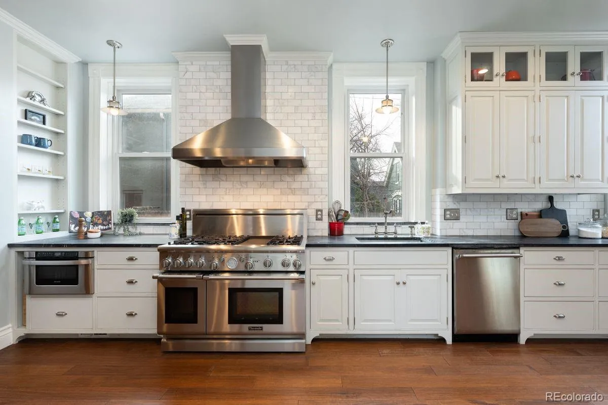 A rare opportunity to own a true Denver Victorian in one of the city’s most desirable, walkable locations—just steps from the Broadway entertainment district, downtown Denver, and the State Capitol. This historic residence blends preserved architectural detail with modern updates, offering timeless character and exceptional flexibility. From the moment you enter, the home makes a powerful first impression with a grand entrance foyer—a true statement space rarely found today—showcasing soaring ceilings, richly preserved original woodwork, a sweeping staircase, and stunning stained-glass windows that flood the home with filtered light. The foyer sets the tone for the craftsmanship throughout —details that speak to a level of historic quality simply impossible to replicate. The renovated kitchen honors the home’s period charm with custom cabinetry, Thermador appliances, soapstone countertops, and a rear staircase to the second level. The upper floors provide generous and flexible living spaces, including guest rooms ideal for offices or studies, a second-level loft area overlooking the foyer, a conveniently located laundry closet, and a stunning primary suite featuring dual fireplaces, a walk-in closet, and a private balcony. The third level adds even more versatility with additional rooms, a ¾ bath, and a front recreation space pre-wired for entertainment, plus west-facing mountain views—well-suited for conversion into a private rental or guest suite with minimal modification. Alternatively, the basement offers another strong income-producing option, with the ability to create a separate living area for rentals. Outdoors, enjoy a private brick and slate patio, garden beds, and a two-car garage. Rich in history and originally built for one of Colorado’s first city attorneys, this Victorian is unmatched in presence, location, and flexibility—ideal as a primary residence, investment property, or both, and a truly exceptional offering in the heart of Denver.