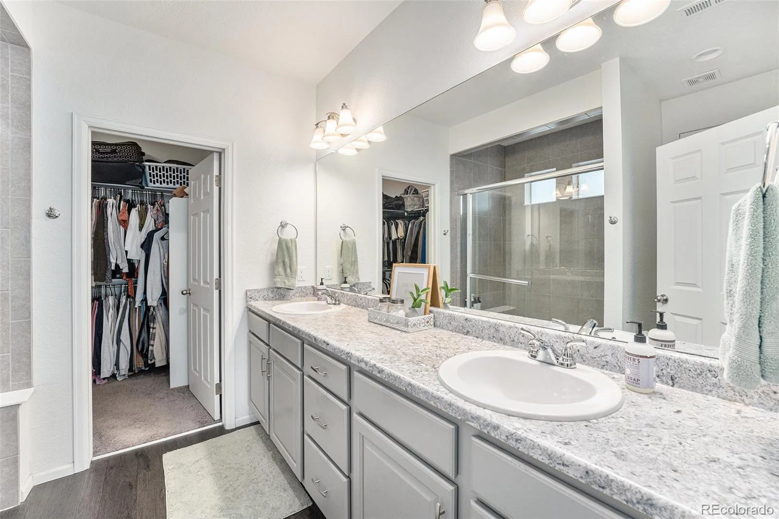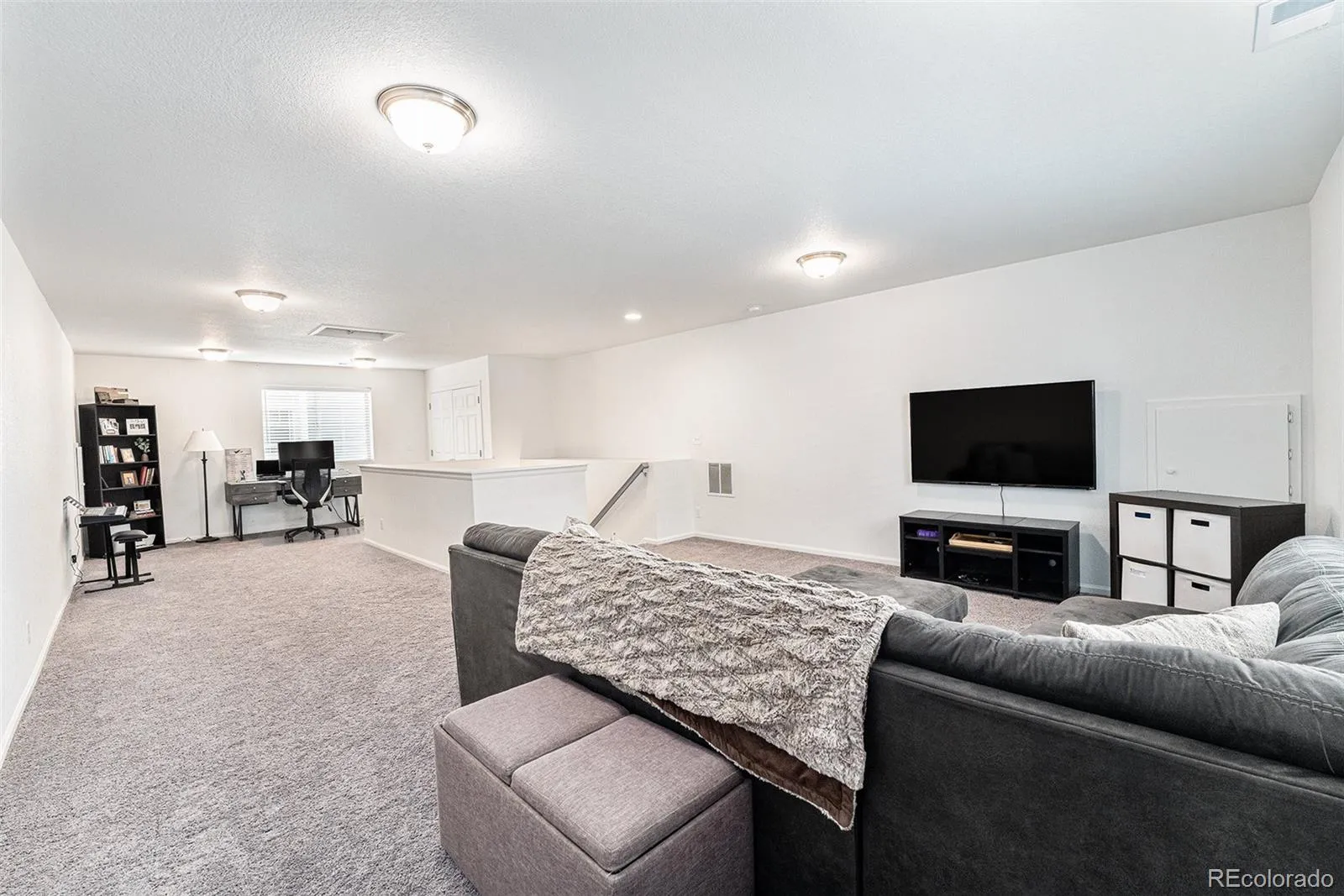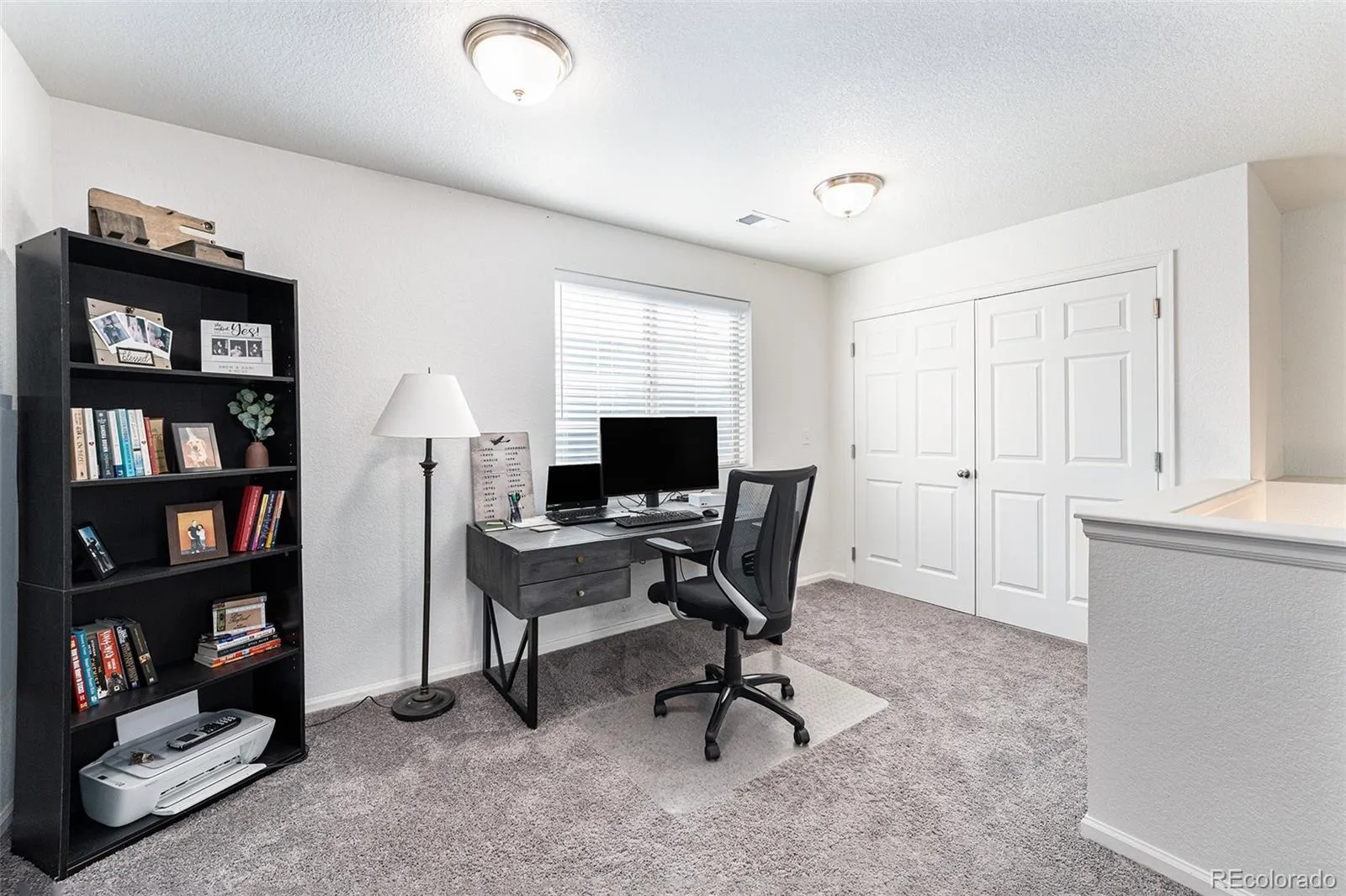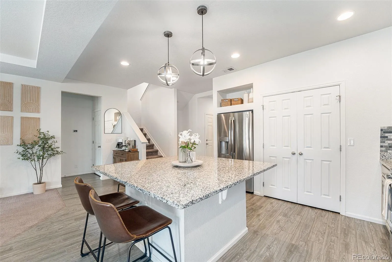Welcome to this picture-perfect single-family home offering over 2,000 sq. ft. above ground and a thoughtful floor plan with a main-level primary suite. Step inside through the charming covered entry to a bright foyer where you’re instantly welcomed by the open and inviting floor plan. The kitchen is a true showstopper, featuring an expansive two-door pantry, upgraded cabinetry, and a statement island topped in rich granite. Designed for entertaining, the kitchen flows seamlessly into the dining area and spacious living room with a modern tiled gas fireplace. Sliding doors open to your backyard retreat, complete with a full-length patio for sun or shade, a private yard and garden beds ready for flowers or fresh vegetables. The fully fenced yard ensures both privacy and a safe space for pets. The main-floor primary suite boasts a large walk-in closet and double vanity, thoughtfully set apart from a secondary bedroom, full bathroom, and a walk-in laundry room with built-in storage. Upstairs, the large flex space offers endless possibilities—whether you need a media room, home gym, office, guest space, or a combination. *New roof in February 2025!* All appliances and major mechanics are from 2017!* Located just minutes from DIA, Green Valley Ranch Golf Club, Gaylord Rockies Resort, shopping, dining, parks, and schools!