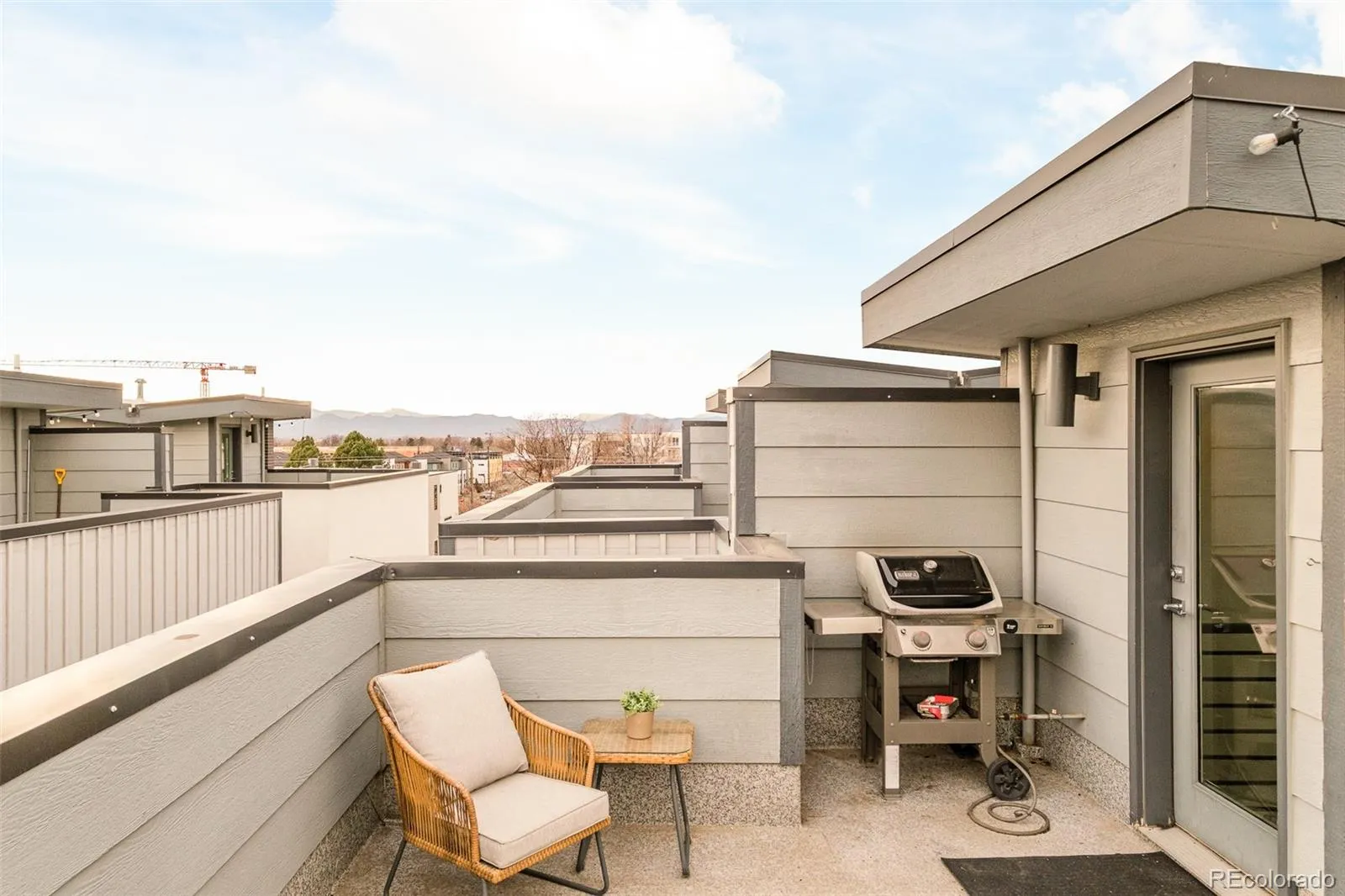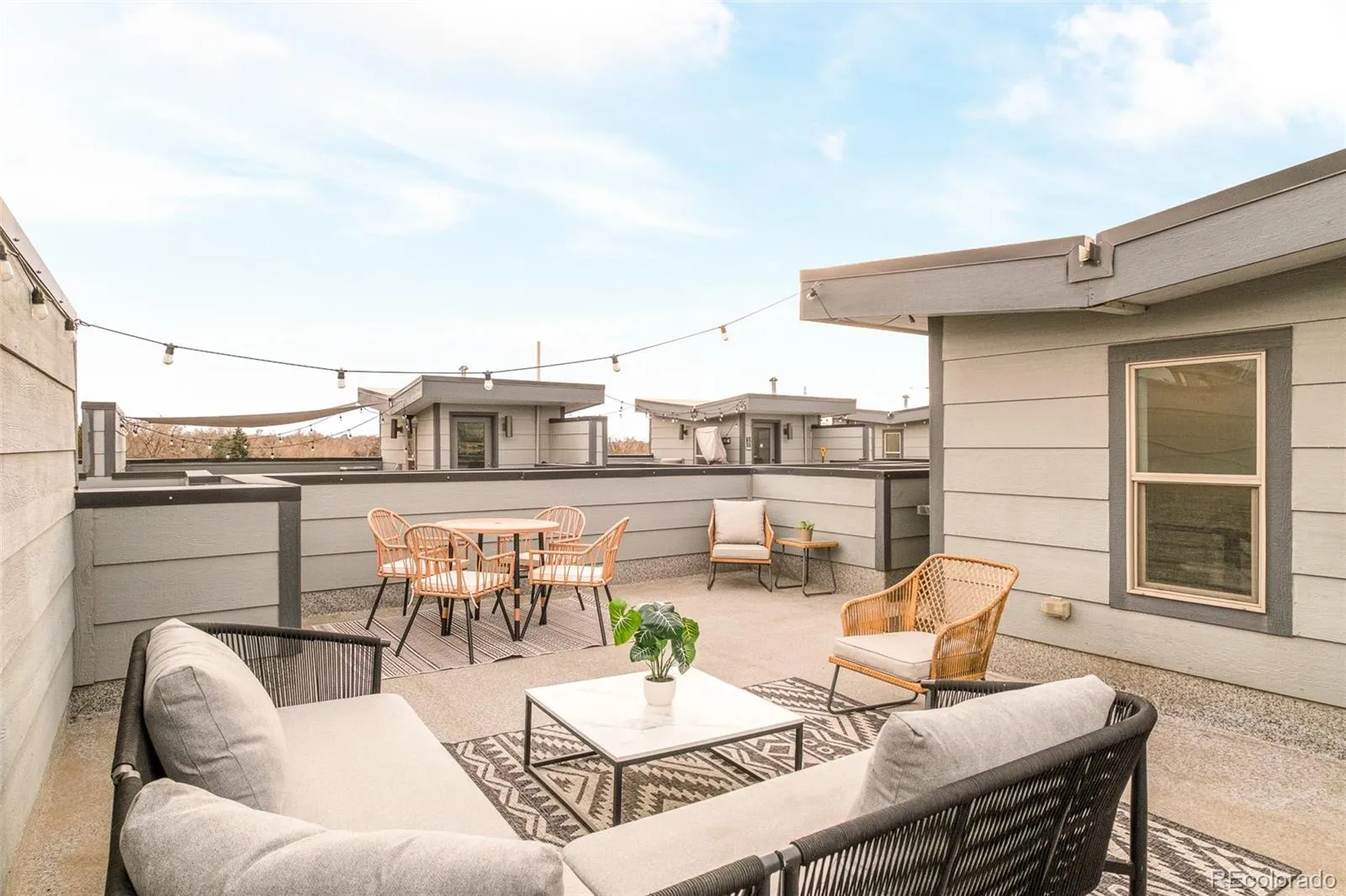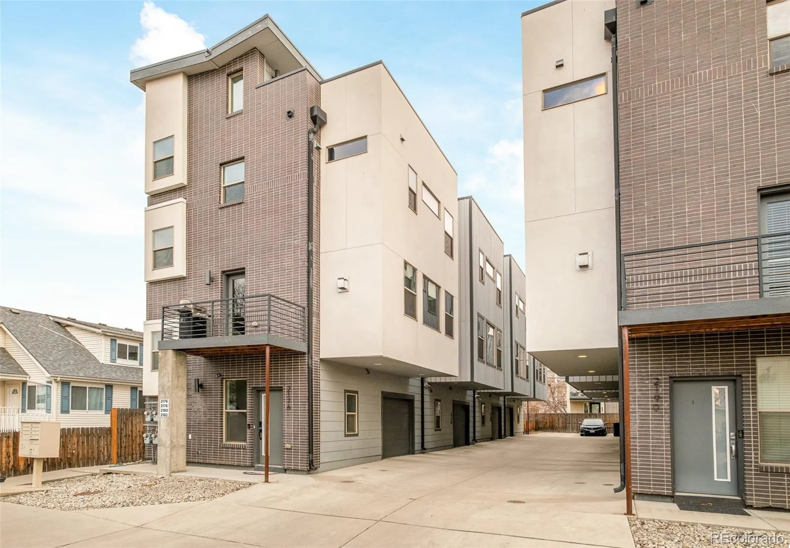 This exceptional townhome reflects a thoughtful balance of modern architecture and elevated finishes in Denver’s coveted University Park neighborhood—with the rare benefit of NO HOA and an expansive rooftop deck offering mountain views. The open, light-filled floor plan is accented by hardwood flooring, modern metal banisters, stylish fixtures, creating a touch of sophistication and appeal! The Great Room features a sleek gas fireplace that serves as a striking focal point and the inviting open floor plan provides effortless access to the impressive kitchen/dining area that provides convenient living space! Quartz countertops, premium stainless steel appliances, and an expansive breakfast bar enhance everyday living and casual entertaining. The primary suite is a private retreat, featuring an oversized three-quarter shower, dual vanities, and a walk-in closet. The secondary bedroom, full bath, and laundry area are ideally situated in close proximity to the primary suite. With a well-planned front entry and mudroom adjacent to the garage you will enjoy the convenience and practicality the main level features, including a spacious half-bath. The remarkable outdoor space is equally suited for entertaining, quiet relaxation, and an play area for your pets! Thoughtfully designed, it blends a private outdoor retreat with practical urban living! An ideal location in the University Park neighborhood you are within minutes to Light Rail, entertainment, restaurants, shopping, and an easy commute to DTC or downtown Denver.