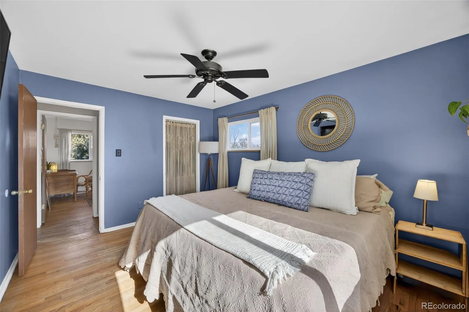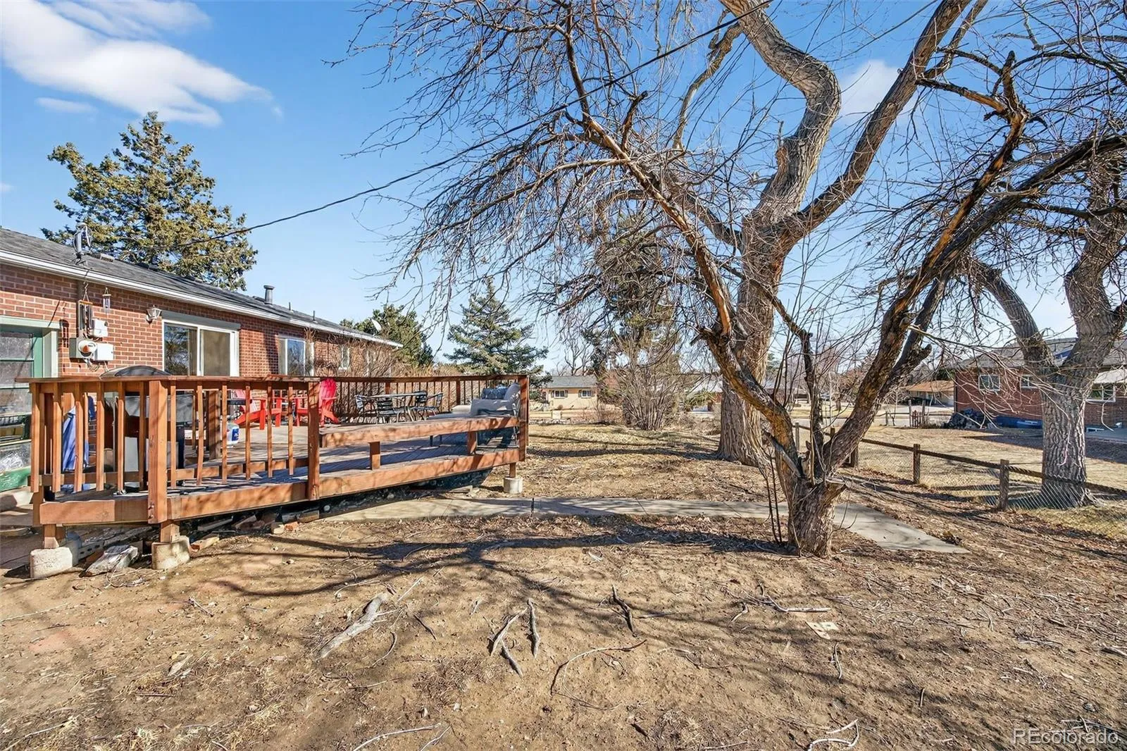 If a large backyard, ranch style home, and Green Mountain location are high on your priority list, then look no further! This .34 acre corner lot sits along the Foothills in Lakewood; an ideal location for an easy commute into Denver or a convenient drive to the mountains. This community allows for Colorado living to the fullest. With Green Mountain, Bear Creek Lake Park, and Red Rocks Amphitheater just minutes to the west, hiking, biking, fishing, paddle boarding and a spectacular, historic concert venue are at your fingertips. Fifteen minutes to the east is Belmar, an outdoor mall full of shopping, dining, and entertainment. In between these desirable attractions, are several parks, schools, restaurants, breweries, and grocery options. As you walk through this well-maintained home you’ll find pieces of authentic 1960’s charm in the original hardwood floors, the dining room built-in, beautiful exterior red brick, and mid-century modern flat panel cabinetry. The living, dining, and kitchen flow seamlessly together with three bedrooms and two bathrooms down the hall. Downstairs you’ll find a large living room, two non-conforming bedrooms, laundry, and massive unfinished storage room. A perfect place to house all your Colorado gear! This backyard is truly one of a kind. Sip your morning coffee on the porch, host a backyard barbecue, hang your hammock from the trees, or enjoy the many sunny Colorado days. Don’t miss your opportunity to own this rare, Green Mountain gem! System updates include: sewer line replacement (2018), roof (2017), furnace (2014), hot water heater (2021), washer & dryer (2022), and kitchen appliances (2018-2020). Other upgrades include: gutter replacement (2025), trees trimmed (2025), main level bathroom remodels (~2016), main level window replacement (~2014). **Seller to offer a $5,000 seller concession to refinish the hardwood floors. Estimate from All City Floors available upon request!