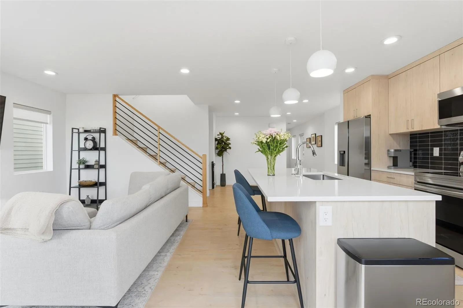 Meticulously maintained and cared for, this newer built home has several upgrades and is ready for move in! LEED GOLD Certified home in beautiful Golden, CO. The ONLY SHARED WALL IS THE GARAGE WALL – this home lives and feels like a single family!!! 5 bedrooms, 3.5 baths, 2,112 sqft and comes with a FINISHED WALK OUT BASEMENT! The main level features an open floor plan including the liv/kit/din areas, back deck overlooks the expansive PROFESSIONALLY LANDSCAPED and FENCED BACK YARD to enclose your space. Office or bedroom, powder room and garage access complete the main floor. UPGRADED GARAGE includes SHELVING for extra storage and EPOXY COATED FLOORING. Kitchen includes quartz countertops, a large island and stainless steel appliances, light wood grained cabinets with matte chrome hardware, tile backsplash and pendant lighting. Upgraded CUSTOM WINDOW COVERINGS throughout including electric blind for stairwell. Upstairs find 3 bedrooms including a well-appointed primary suite, complete with CUSTOM ELFA SHELVING in the walk-in closet and 4-piece bath. The secondary bedrooms share a full bath with dual sinks, one bedroom has en-suite access. Laundry closet is also located on the upper level! Smart features include: video doorbell, programmable energy efficient climate control system and SmartThings home network for appliances and garage door. MOMENTS FROM BOTH I-70 and US 6, quick and easy access into the mountains or downtown Denver, the Ashwood neighborhood. This home is within walking distance to Welchester Elementary School, Tree Grant Park, and is a short drive to downtown Golden, Clear Creek River, local museums, and historical places of interest, 2.5 miles from Colorado Mills Shopping Center, and 10 Miles from downtown Denver.