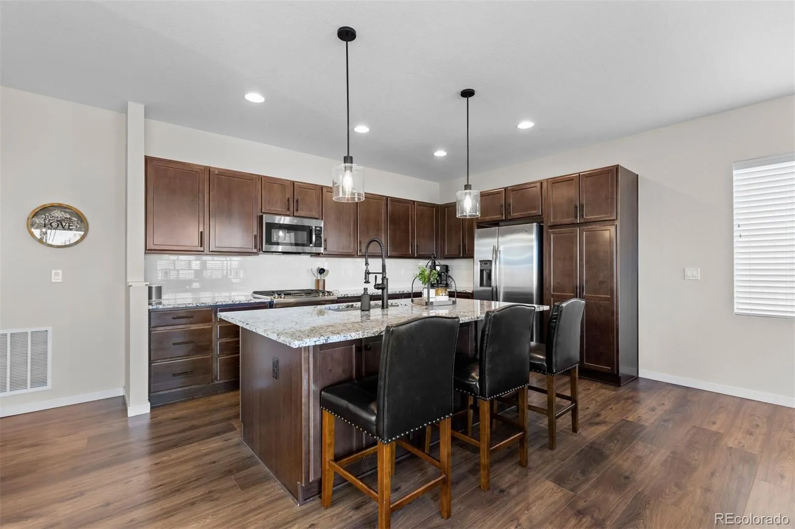 Located in Stepping Stone, one of Parker’s most sought after and family friendly communities. This 4 bed / 4 bath home has been immaculately maintained and features a fully finished walkout basement with direct access to a generously sized backyard—perfect for kids, pets, or simply entertaining family & friends as we head into the spring/summer months. Inside you will be greeted by souring valued ceilings allowing for ample amounts of natural light filling the entry to the home. The first floor features a dedicated home office complete with custom French doors, a wide open and expansive layout, and direct access to the outdoor deck area … the perfect place to take in not only the mountain views, but also a morning cup of coffee or an evening cocktail. Back inside, the main floor layout flows seamless from kitchen to dining area making meals from oven to table a breeze. Stainless appliances, a gas stove, and enough cabinet and countertop storage to house all of your kitchen essentials make this gourmet kitchen truly the heart of the home. Downstairs the newly finished walkout basement again is flooded with natural light and features a wall bar complete with beverage fridge, a 4th bedroom, and a gorgeously finished bathroom making this the perfect space for guests or visitors. Arguably the most desirable feature of this home, the oversized backyard area, offering exceptional amounts of space, full 6-foot privacy fencing, and mature professional landscaping which even further enhances the usability and privacy of this outdoor retreat. Round all of this out with a 2 car attached garage, low HOA’s, and top rated Douglas County Schools. This home delivers the best of Colorado living in the heart of Parker.