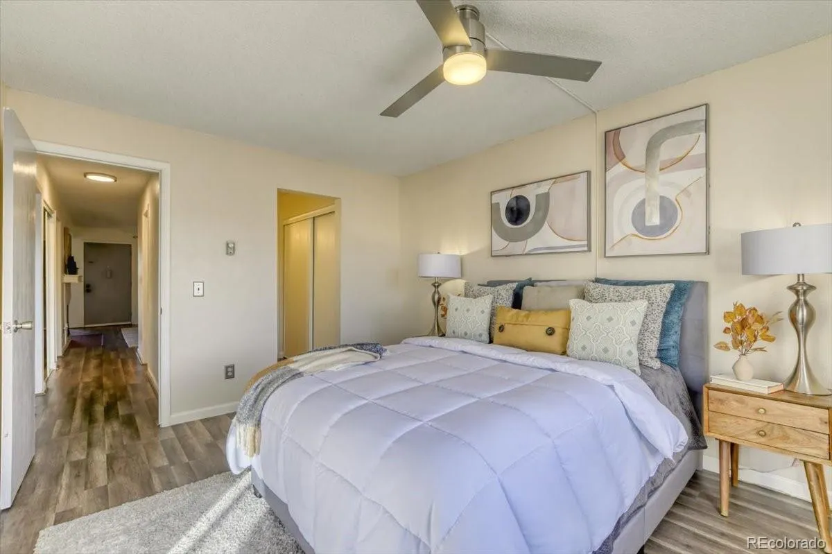 Welcome to a completely refreshed condo in the heart of Arvada Gardens! This thoughtfully reimagined two-bedroom residence showcases brand-new luxury vinyl flooring, fresh paint throughout, and a bright open layout designed for both comfort and style. The living room anchors the space with a cozy wood-burning fireplace, creating a warm focal point for everyday living or relaxed evenings at home. The kitchen has been fully remodeled with new counters, freshly painted cabinetry, a brand-new stove, updated sink and faucet, and clean, modern finishes that flow seamlessly into the adjacent dining area. Sliding glass doors lead to a covered balcony, extending your living space outdoors and offering the perfect spot for morning coffee or evening unwinding. Both bedrooms feature new flooring and updated finishes, with the primary suite offering private balcony access, a modern ceiling fan, and an attached bathroom. The full bath has been completely renovated with a new vanity, fixtures, and a polished contemporary feel, while a convenient powder room adds flexibility for guests. Additional highlights include an in-unit laundry room with newer washer and dryer, plus a large private storage unit located on the main level. This second-floor unit sits just steps from parking and offers a low-maintenance lifestyle with a professionally managed HOA that includes water, sewer, trash, snow removal, insurance, and beautifully maintained grounds, along with access to a community clubhouse. Ideally positioned within walking distance to Old Town Arvada, Memorial Park, the Ralston Creek Trail, and a vibrant mix of restaurants, coffee shops, bars, and local boutiques, this home delivers exceptional walkability and access to public transit. Whether you’re a first-time buyer, downsizer, or investor, this fully updated condo offers modern comfort, storage convenience, and a location that puts Arvada’s best dining, recreation, and community right outside your door.