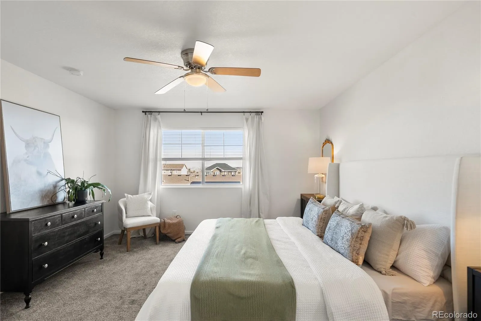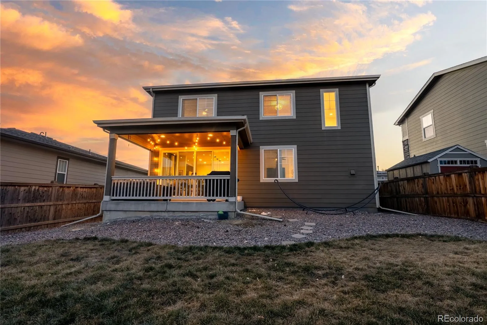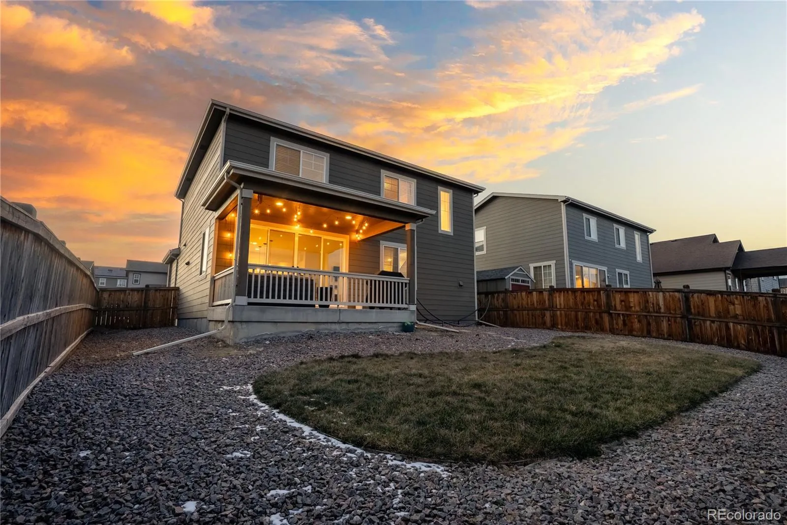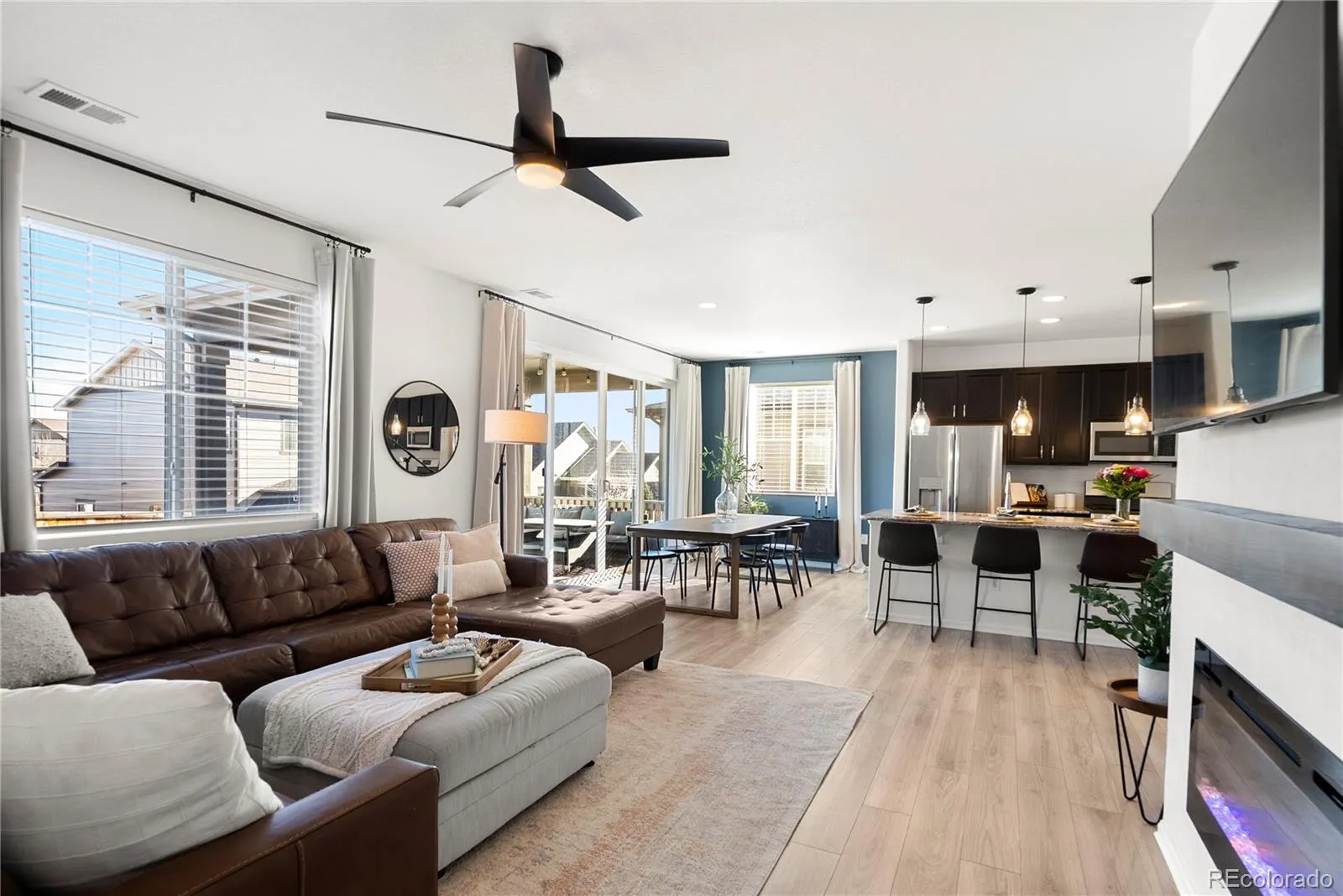 This 3 bedroom, 3 bath home feels bright and welcoming from the moment you step inside. Natural light streams in all day, helped by 9 foot ceilings on the main floor, and the open layout makes 2,051 square feet feel easy to live in. The main floor is designed for everyday life. Luxury vinyl flooring runs throughout, and the kitchen’s eat in island works for cooking, catching up, or casual dinners. Granite counters and stainless steel appliances complement the space, which flows well into the living area so the space feels connected. A powder room adds convenience for guests, and a dedicated office provides a quiet spot for work or study without using a bedroom. Upstairs, two full bathrooms serve three well-sized bedrooms, with granite counters continuing into the bathrooms. Storage is practical, the two car garage handles daily needs, and the large patio doors open to the backyard, leading out to a covered, low-maintenance patio. Built in 2019, the home sits in a newer community with walking trails and parks just steps away. Riverwalk Ballfield Park is nearby, Carpenter Park and the rec center are an 8 minute drive, and downtown Denver is less than 20 minutes away. RTD access is 1.4 miles out for commuters. The nearest grocery store is less than five minutes away, with several options within a 10 minute drive. For a home that delivers light, space, and real value near Denver, this one’s worth seeing in person. Contact us today for a detailed list of features, a floor plan, or to schedule your private tour. The home has been pre-inspected.