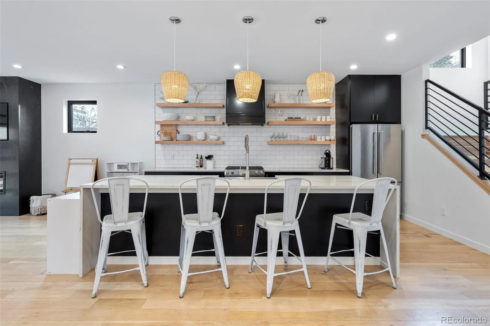 A rare blend of modern design and a prime location, this custom-built Berkeley residence redefines urban living just moments from the energy of Tennyson Street. Thoughtfully designed with five bedrooms plus a dedicated office, the main home offers generous space and an airy, light-filled layout. High-end finishes elevate every room, including wide-plank white oak floors, designer wallpaper and a chef’s kitchen with KitchenAid appliances and custom cabinetry. The open-concept main level flows seamlessly to a private backyard patio through a full-height garage door, effortlessly connecting indoor and outdoor living. Upstairs, the primary suite is a pristine retreat with soaring 18-foot vaulted ceilings, a cozy sitting area with a fireplace, a walk-in closet and a spa-like five-piece bath. A third-story rooftop deck adds another layer of lifestyle appeal, perfect for taking in neighborhood views. Completing the property is a fully separate ADU above the attached two-car garage, offering exceptional flexibility for guests or rental income.
