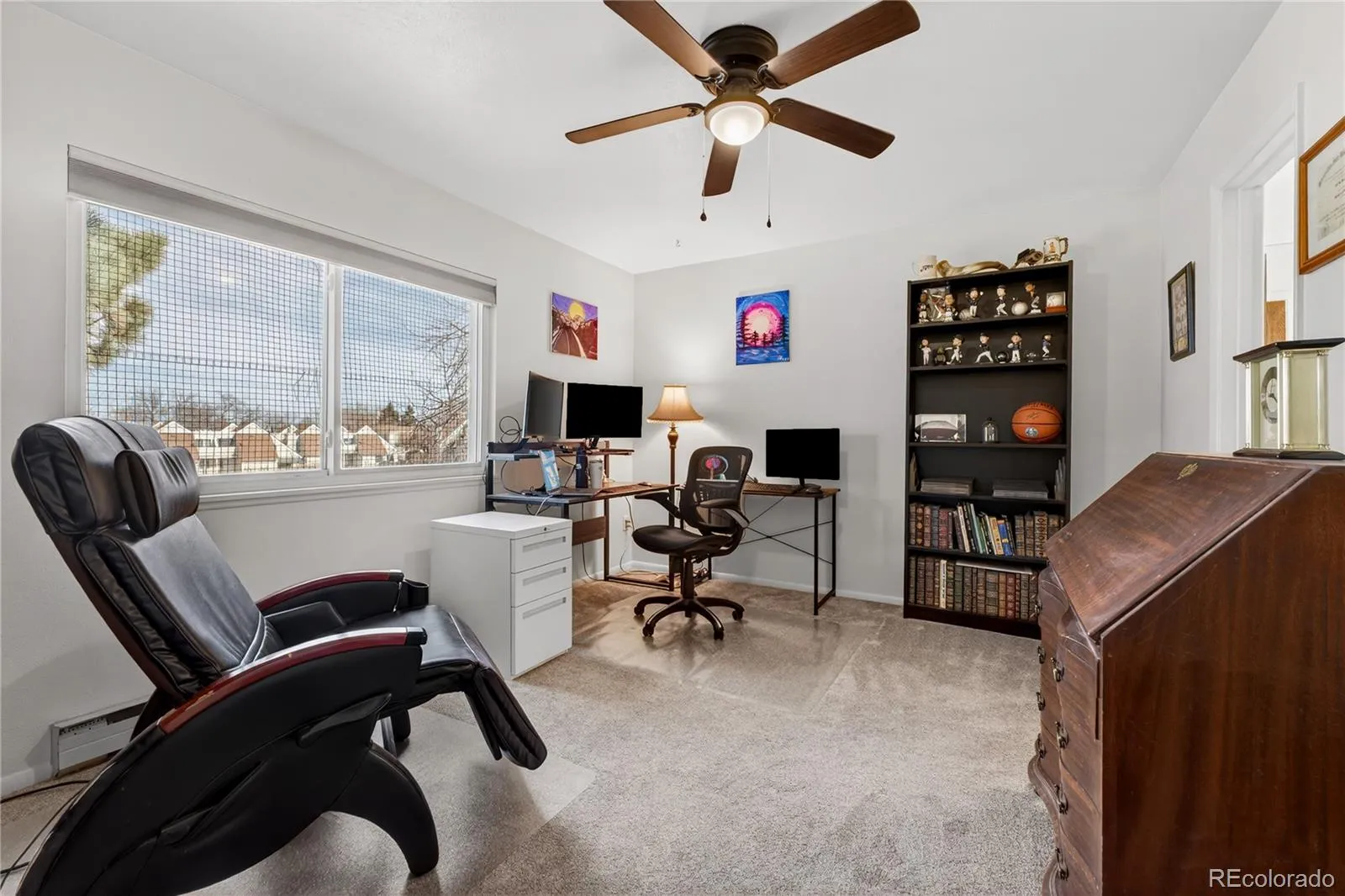 This great townhome in Heather Ridge South is a rare find, backing to open space and the golf course with peaceful views and added privacy. Enjoy a quiet setting with friendly neighbors, access to Cherry Creek Schools, and a low-maintenance lifestyle in a well-kept community. A two-car attached garage with direct access to the home adds everyday convenience. Inside, the home is filled with natural light and features a highly functional floor plan. The spacious living room offers a cozy fireplace and flows easily into the kitchen, creating a comfortable space for both relaxing and entertaining. A sliding door off the living room opens to the private, enclosed patio—an ideal spot to enjoy the outdoors while overlooking open space and the golf course. The nicely updated kitchen showcases soft-close knotty wood cabinetry, striking granite countertops, and a generous dining area. The main level includes a bedroom and nearby full bath, perfect for guests or a private home office. Upstairs, two generously sized bedrooms share a Jack-and-Jill bathroom with double sinks. Recent updates include updated light fixtures, a remote-controlled gas fireplace with temperature control, an upgraded electrical panel in 2021, replaced carpet in 2023, ceiling fans in 2022, an updated primary bath in 2022, and a Samsung washer and dryer added in 2022. Residents enjoy a nicely maintained community with a pool and well-kept grounds. The location offers easy access to I-225 for quick trips to DIA, Cherry Creek Reservoir, and a wide variety of shops and restaurants. This inviting townhome blends comfort, updates, and an exceptional setting—an opportunity not to be missed.
