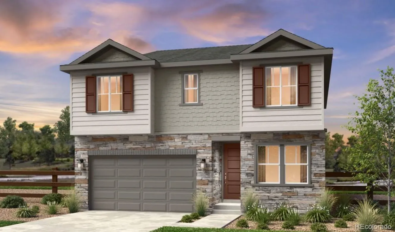 What’s Special: High Ceilings | Loft | Flex Room | Corner Lot | No Rear Neighbors. New Construction – March Completion! Built by America’s Most Trusted Home Builder. Welcome to the Ridgway at 16477 W 92nd Place in Trailstone Town Collection! This stunning new home features an expansive kitchen with a walk-in pantry and an eat-in island overlooking the dining area and great room with its cozy fireplace and airy volume ceiling. A sliding door leads to the covered patio, perfect for relaxing outdoors. The front of the home includes a flexible space for work or play, along with a convenient powder room. You’ll also appreciate the two-car garage with extra storage space for everyday ease. Upstairs, a spacious loft connects two secondary bedrooms, a full bath, a dedicated laundry room, and a private primary suite with an en-suite bath and large walk-in closet. Discover Trailstone, a new home community on the edge of the Rocky Mountains in Arvada, CO. Just off Candelas Parkway and only 15 miles from Boulder, find room to roam in stunning single-family homes with spacious backyards in Arvada. You’ll love the incredible views of Downtown Denver, the Rocky Mountains and Standley Lake. With incredible planned amenities including an outdoor pool and pickleball courts, every day is an opportunity to explore a new path at Trailstone. Additional Highlights Include: Fireplace at great room, sliding glass door at great room, 8′ interior doors at main level, covered patio, and built-in appliance package. Photos are for representative purposes only. MLS#6534046
