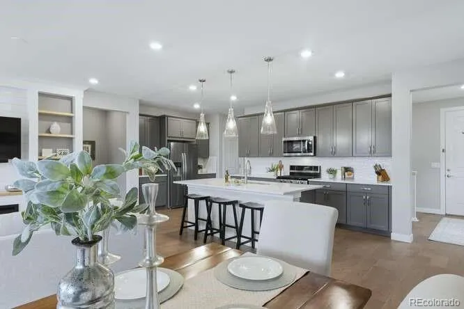 Welcome to effortless Colorado living in The Canyons of Castle Pines! This beautifully maintained 3 Bedroom, 3 Bathroom Ranch-style duplex with a finished walk-out Basement offers the perfect lock-and-leave lifestyle, with the HOA handling front landscaping and snow removal for low-maintenance convenience. Step onto the inviting front porch and into a bright, open-concept floor plan featuring a neutral paint palette and spacious Living Room with cozy fireplace and built-ins, flowing seamlessly into the Dining area and gourmet Kitchen. The Kitchen is designed to impress with a large island, Quartz countertops, tile backsplash, stainless steel appliances, pantry, and plenty of workspace for entertaining. The main-level Primary Suite is a peaceful retreat with serene open space views and a luxurious spa-inspired en-suite Bathroom showcasing designer tile, upgraded finishes, and fixtures. A convenient 2nd Bedroom, Full Bathroom, Laundry Room with additional storage and a 2-Car Attached Garage complete the main floor. Downstairs, the finished walk-out Basement adds an impressive 1,488 SF of additional living space, featuring a large Family Room, an expansive 3rd Bedroom with walk-in closet, and an adjoining 3/4 Bathroom—ideal for guests, multigenerational living, or a private suite. Enjoy your own private backyard oasis backing to open space, with multiple outdoor living areas perfect for entertaining or relaxing in peace. Residents of The Canyons enjoy unmatched amenities including The Exchange coffee house, fitness center, restaurants, pool, pickleball courts, and year-round community events—offering the very best of Colorado living. With miles of scenic trails, stunning open space, and resort-style amenities right outside your door, The Canyons truly captures the Colorado lifestyle at its finest.