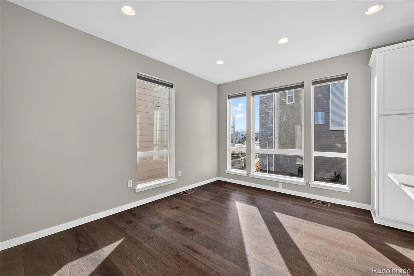 Perched above it all with sweeping views of downtown Denver and the nearby foothills, this 2023-built standalone residence in Haskins Station offers elevated outdoor living and a streamlined, modern lifestyle. At the top, a private rooftop terrace sets the stage for open-air entertaining or quiet evenings with a mountain backdrop and city lights on the horizon.
