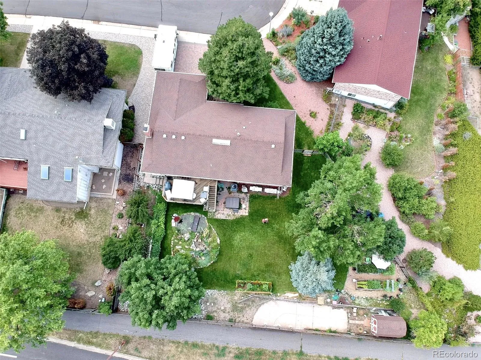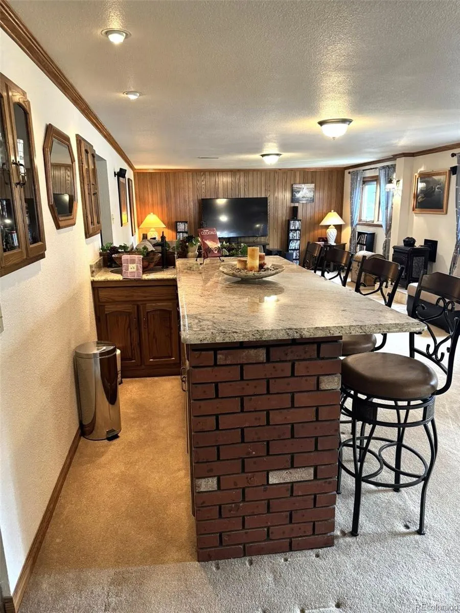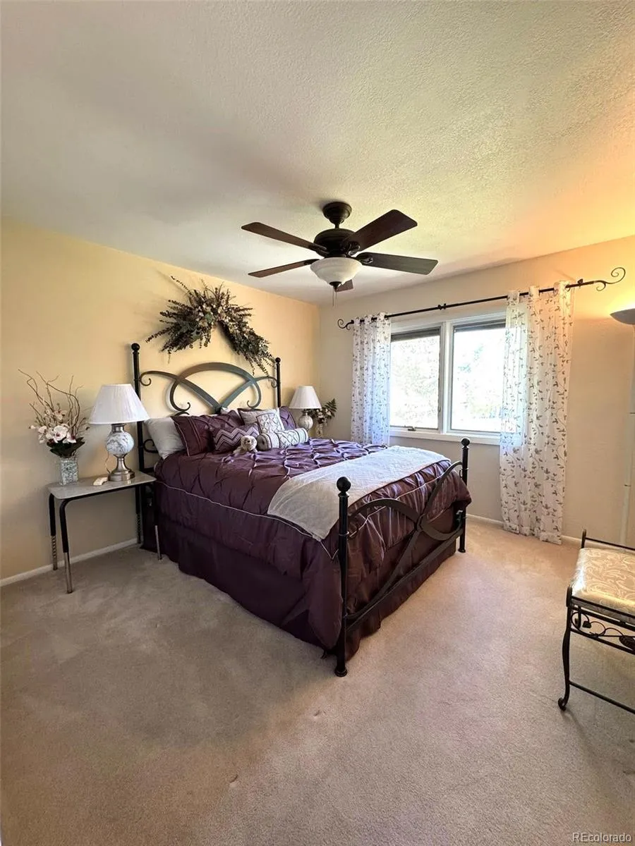 Beautifully updated and spacious 3500 finished SqFt, Hutchinson Model “D”, 4 Bed/3 Baths Ranch w/Walkout Basement. NO HOA! Located in Hutchinson’s Green Mountain Village. Easy access to schools, shopping, trails, Red Rocks Park & Amphitheater, and Bear Creek Lake Park. Upon entering the home, step into the enclosed entryway with security door, large formal dining room, Sun Room and open floor plan with elegant Brazilian Teak hardwood floors and crown molding throughout the entire main level. Updated, custom built-in granite kitchen table and countertops, granite island with glass top stove/range. Cozy gas fireplace and ceiling fans in adjacent spacious family room with plush carpet and large windows for excellent natural lighting. The main level primary bedroom, features a private en suite 3/4 bathroom. Two additional carpeted bedrooms and an updated full bathroom with jetted bathtub off the hall complete the main level. Huge Lot includes front flower/rose garden, in-ground sprinklers, fully fenced in backyard, an expansive hardwood deck with pergola, shaded mature landscaping, various vegetable garden boxes, Garden flagstone patio seating area, Koi Pond, 2 sheds, 4 person Hot Tub Spa, RV cement pad and spectacular Mountain views. The fully finished walkout basement offers crown molding throughout, a great room/theatre room with gas fireplace, wet bar, office w/custom built-in Library and Window Seat/Storage, additional wood burning fireplace and a laundry/utility room w/ built-in dry storage shelving and included top loading GE clothes Washer/dryer/utility sink. The guest suite bedroom has a large closet and an updated, contemporary bathroom. 2 car garage is finished with built-in cabinetry, and work area. Three vehicle wide paver driveway. water heater replaced 2023, new 2024 roof/gutters and leaf gutters along front, Central Air/Heat and Pella Casement windows throughout as well as a Whole House Attic Fan.