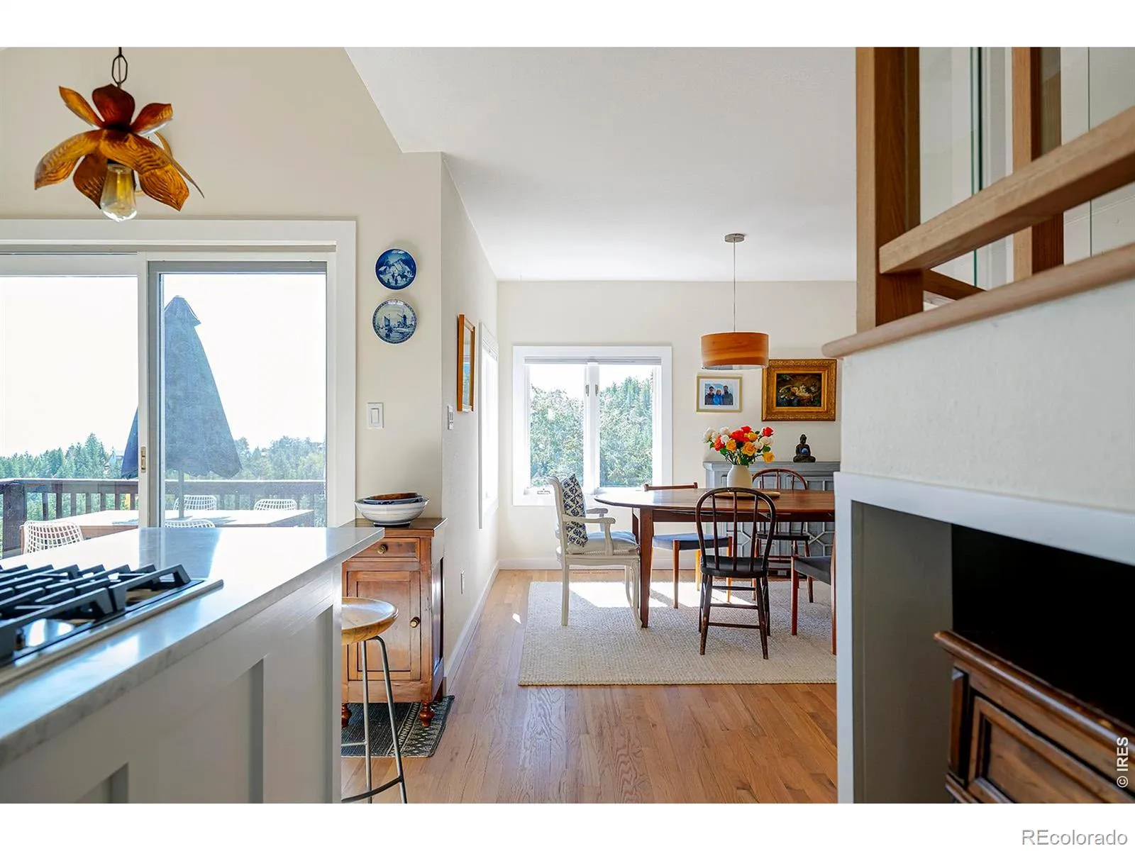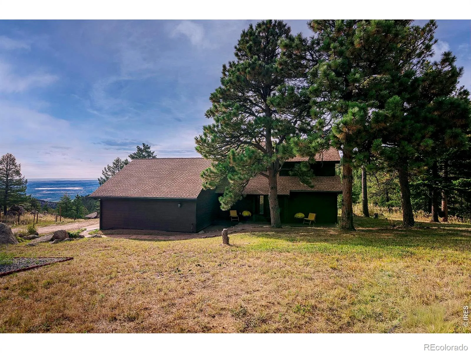 Tranquil mountain gem, minutes from N Boulder, offers privacy, serenity & forever views on a rare level lot with easy access. Truly one of a kind – not your typical remodel, boasting a gut renovation to create a comfortable, light-filled sanctuary with timeless style & ideal floor plan: kitchen, dining & living areas open to each other, centered on a stone hearth wood-burning fireplace, with abundant windows & glass sliding doors to south-facing deck & level yard. Main level primary suite includes luxurious bathroom with deep soaking tub & separate WC. This exquisite turnkey transformation boasts custom millwork by a local artisan who hand-crafted all the beautiful kitchen cabinets & distinctive bathroom vanities, topped with Carrara marble, as well as door/window trim & stunning wood & glass banister. Bosch appliances, gorgeous lighting & curated brass fixtures only add to the quality & allure. An office tucked off the front porch entry demonstrates the efficient use of space with a well-appointed powder room & handy laundry/mud room completing the main level. Two upper level bedrooms filled with light showcase views of surrounding nature, one with corner windows framing the Boulder Valley glistening below, share a bathroom similar in style & quality to the primary bathroom, with deep soaking tub, hand-crafted vanity & tasteful Restoration Hardware fixtures. Unlike many mountain properties, the driveway is level, offering smooth & easy access to the attached 2 car garage from the well-maintained street. Traveling to/from home through aspen stands & evergreen forests, basking in extraordinary sunrises & golden sunsets, watching city lights twinkle below, stargazing at night… just some of the welcome treasures. A keen dedication to energy-efficiency, sustainability & non- toxic materials include newer furnace, Wildfire Partners certification, encapsulated crawl space, 8.06 kW PV system = low energy bills & refund checks from Xcel. See boulder luxury group website G
