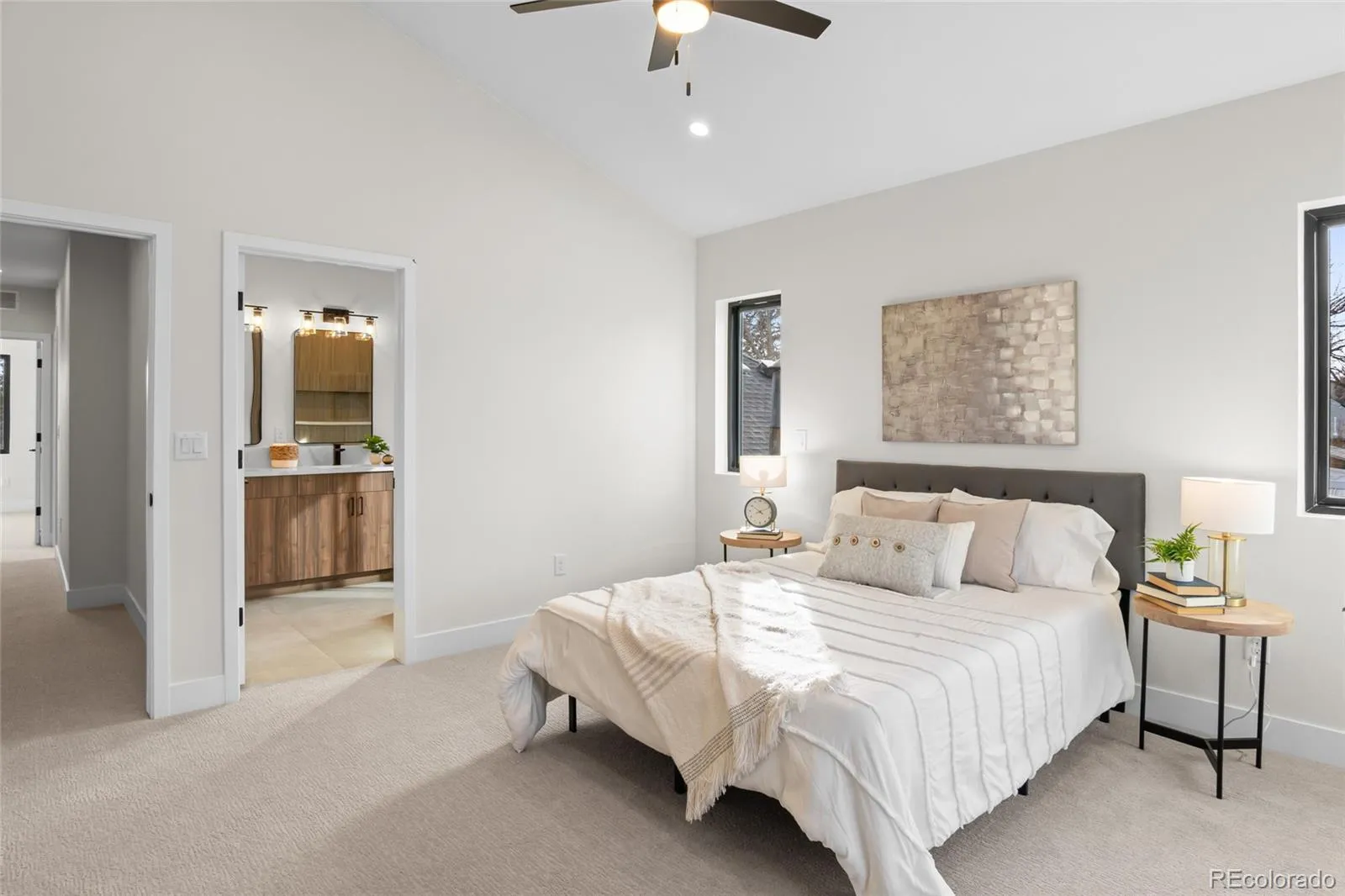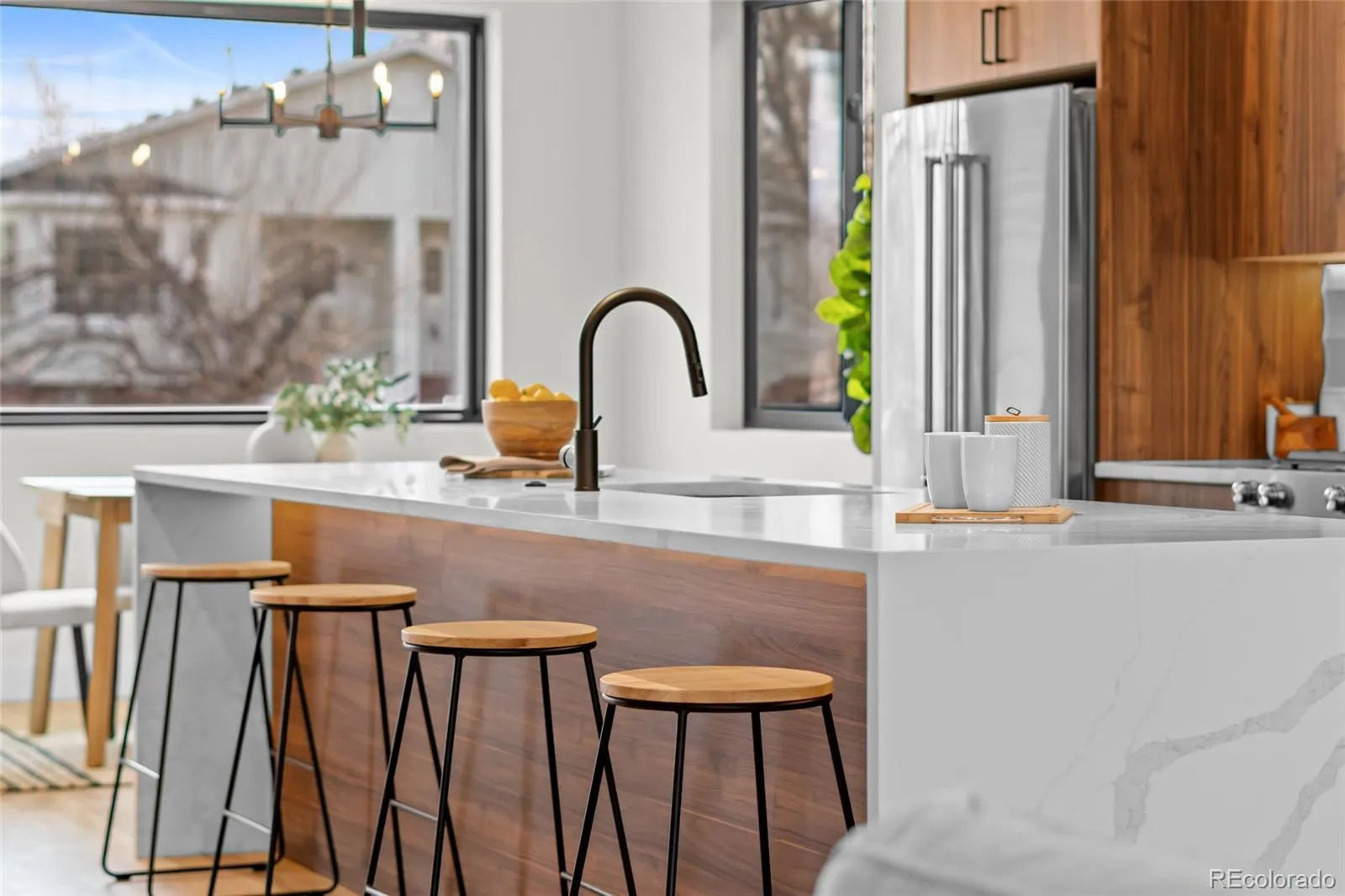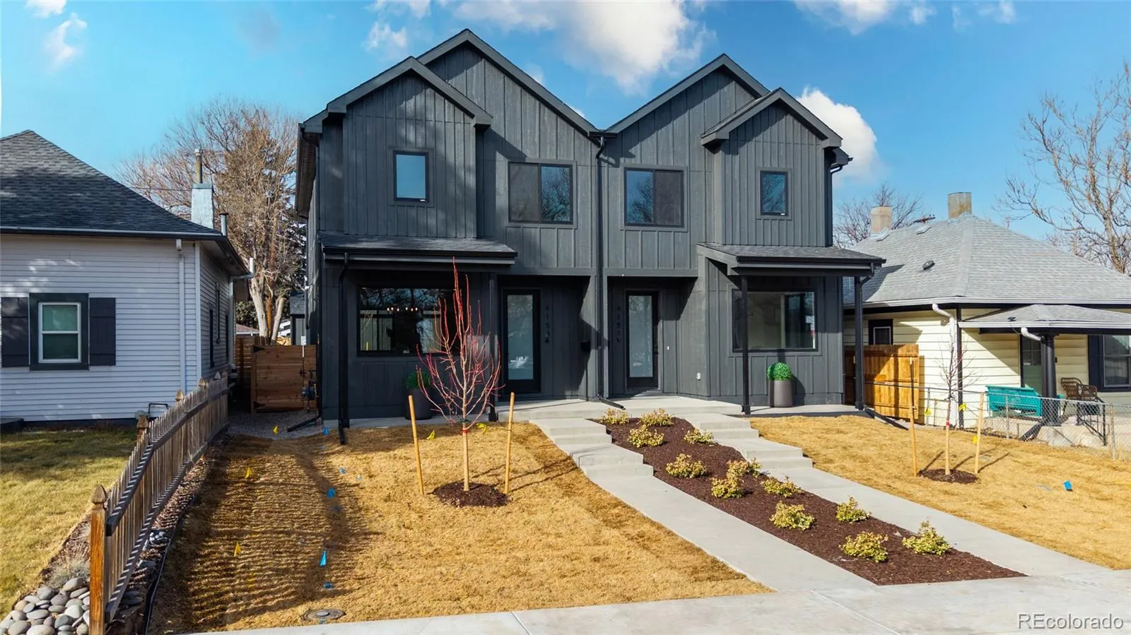 Stunning contemporary NEW construction 1/2 duplex (South unit) just completed in super hot South Broadway. Luxury kitchen with modern cabinetry, huge 11′ eat-in island with stunning movement in the quartz countertops, closet-style pantry, under-cabinet & under-island lights & Kitchen Aid appliances. An upgraded contemporary handrail opens the floor plan. Solid white oak hardwoods on the main floor. Custom seating area for storage & coats just inside the front door. Beautifully upgraded main floor half bath with custom woodwork and stylish black accents. 2 bedrooms upstairs w/vaulted ceilings. The primary bedroom has a massive, beautifully lit walk-in closet. Ensuite primary bath w/ huge walk-in shower, floor-to-ceiling custom tile & more. Contemporary black Anderson windows. Detached 2-car garage w/ wifi/smart opener, insulated garage door & wiring for electric vehicle charger. 2 bedrooms w/ vaulted ceilings. Various rooms are prewired for TV locations. No HOA. Party wall agreement in place. Buyer to verify taxes as they have not yet been assessed. Pictures are of an identical unit. Interactive Content: https://www.zillow.com/view-imx/4e2ea037-3449-4b58-9048-0cd7e93143a7?wl=true&setAttribution=mls&initialViewType=pano