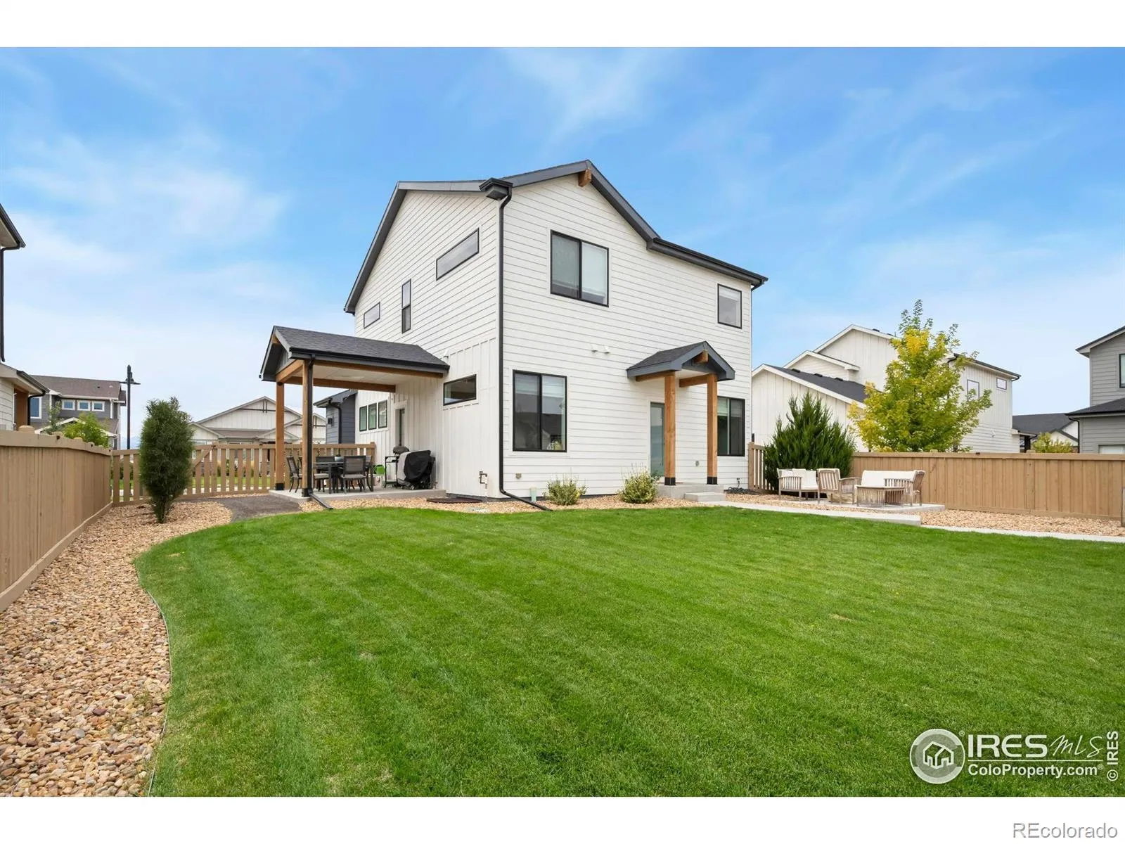 Beautifully crafted by WestMark Homes Colorado in 2021, this stunning five-bedroom, four-and-a-half-bath, 2 Laundry Room residence in Timnath Ranch offers modern design, thoughtful functionality, and effortless Colorado living. The open-concept main level is filled with natural light and features a chef’s kitchen with premium appliances, sleek cabinetry, designer lighting, and a large center island that flows seamlessly into the spacious great room – perfect for everyday living and entertaining. Contemporary finishes and clean architectural lines elevate the home throughout.The private primary suite offers a spa-inspired bath and generous walk-in closet, while four additional bedrooms provide flexibility for guests, office space, or multi-generational living. Enjoy beautifully designed outdoor living areas ideal for relaxing or entertaining, along with a spacious three-car garage for added convenience and storage. Located in the highly desirable Timnath Ranch community with access to trails, parks, pool amenities, and top-rated schools, this home delivers style, comfort, and exceptional location.