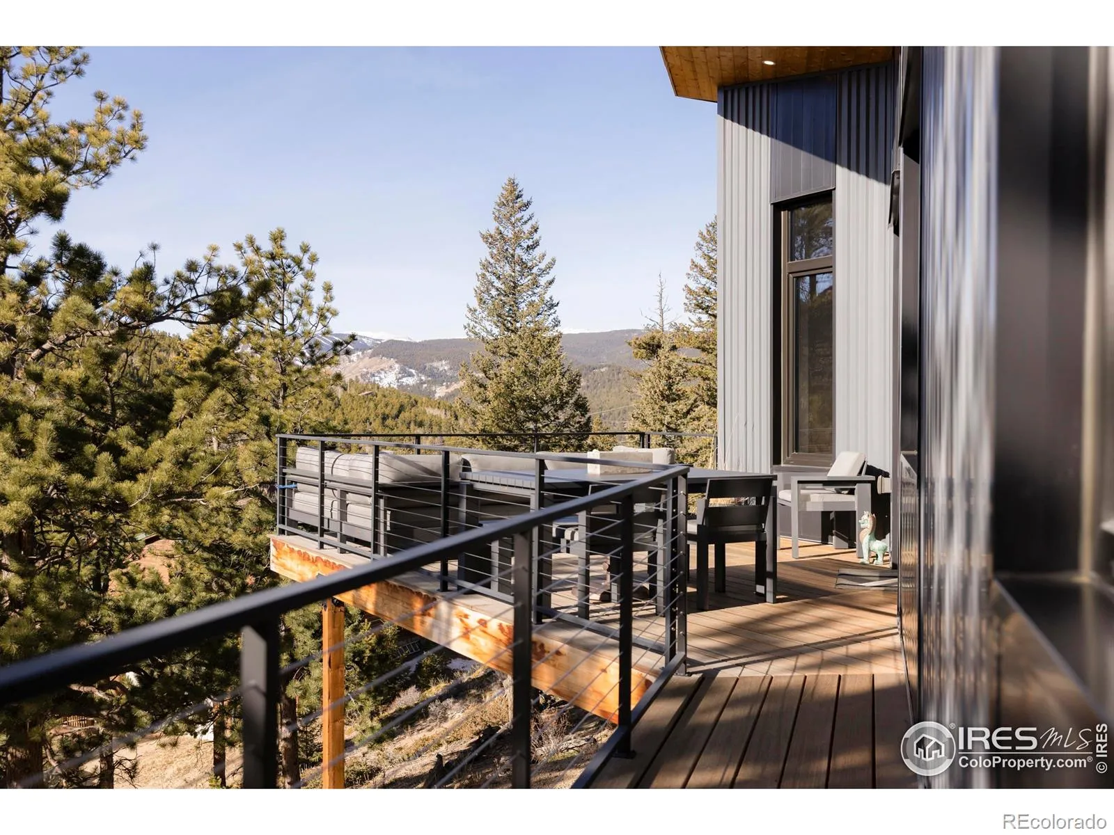 Tucked into a ponderosa grove, 103 Wildewood Drive offers 4 bedrooms, 4 bathrooms, and 3,326 square feet of award-winning architecture with views of Indian Peaks Wilderness and Eldora’s ski runs. Just a mile from downtown Nederland and five miles to Eldora, this Passive House Institute US certified home was named Colorado’s 2023 Green Building of the Year. Triple-pane European windows, air-tight insulation, and energy recovery ventilation keep the home comfortable year-round with minimal energy use, while southern exposure maximizes natural light and solar gain. The main level flows seamlessly from kitchen to dining to living room under high ceilings, with large Alpen windows framing Indian Peaks views. A waterfall-edge island, custom wood cabinetry, and glass doors opening to the deck blur the line between inside and out. A sleek gas fireplace anchors the living area. The main-floor primary suite captures mountain views, with a walk-in closet featuring custom built-ins, a freestanding soaking tub beneath a window, a walk-in shower with dual heads facing the peaks, and radiant heat underfoot. The walk-out lower level features polished concrete floors with radiant heat, a wet bar, and a large recreation space. A private guest suite includes its own bathroom and mountain views, while two additional bedrooms share a full bathroom, offering flex space for offices or creative pursuits. A covered breezeway connects the main house to the two-car garage and doubles as a sheltered patio. The deck off the main living area captures southern exposure and panoramic views, with trails and wilderness beyond. Nederland offers authentic mountain living an hour from Denver and twenty-five minutes from Boulder, where the Peak to Peak Scenic Byway meets coffee shops, hardware stores, and weekend live music. This home is for those who want to ski in the morning, grab lunch in town, and return to a place that’s welcoming, sustainable, and beautifully designed.