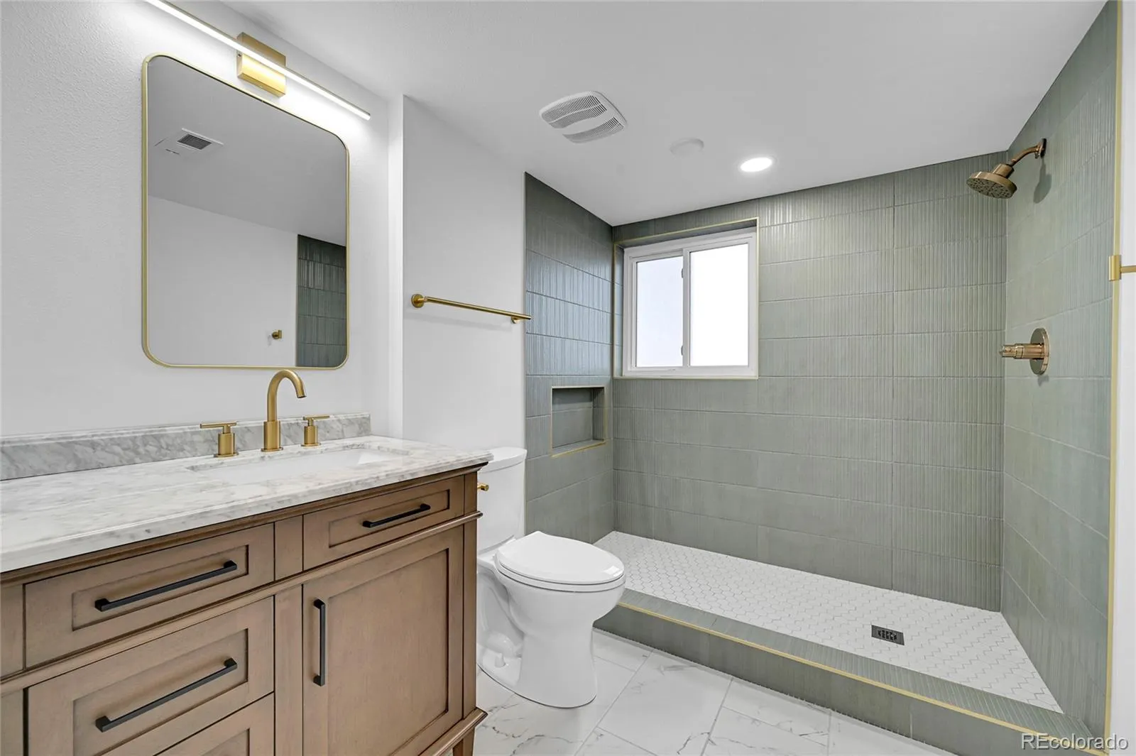 The garden-level basement provides exceptional additional living space with abundant natural light, a large family room, two additional bedrooms, a spacious bathroom with a large shower, and an expansive tiled laundry and storage room.
