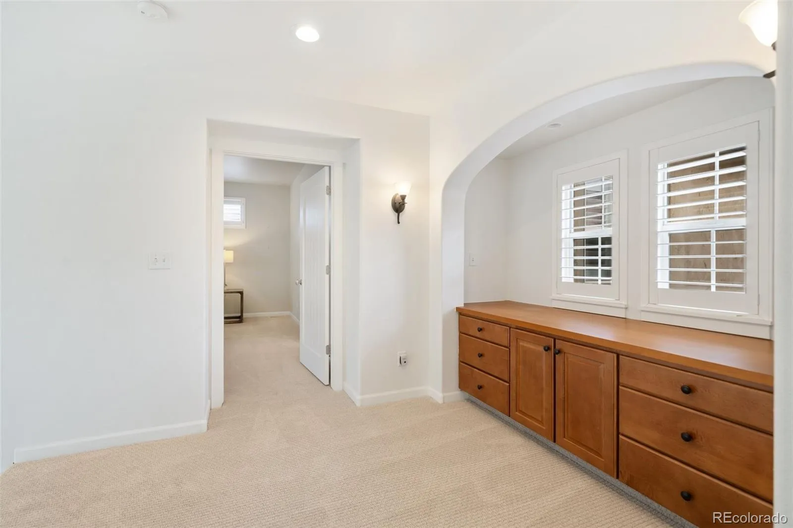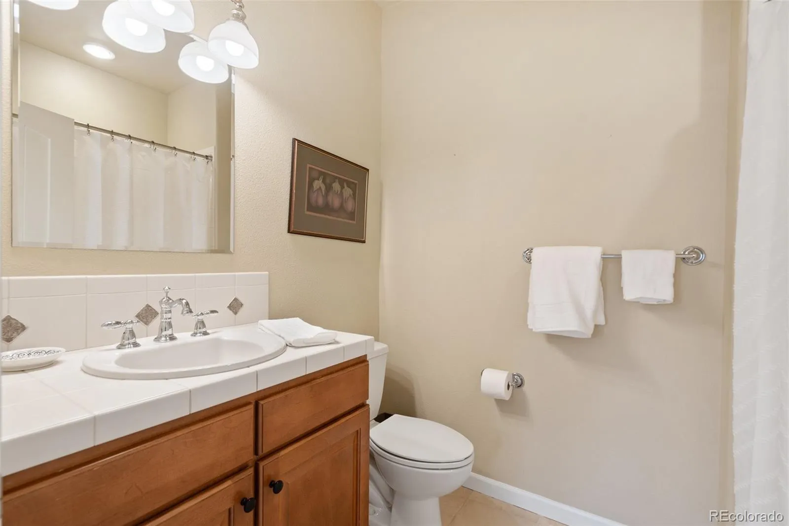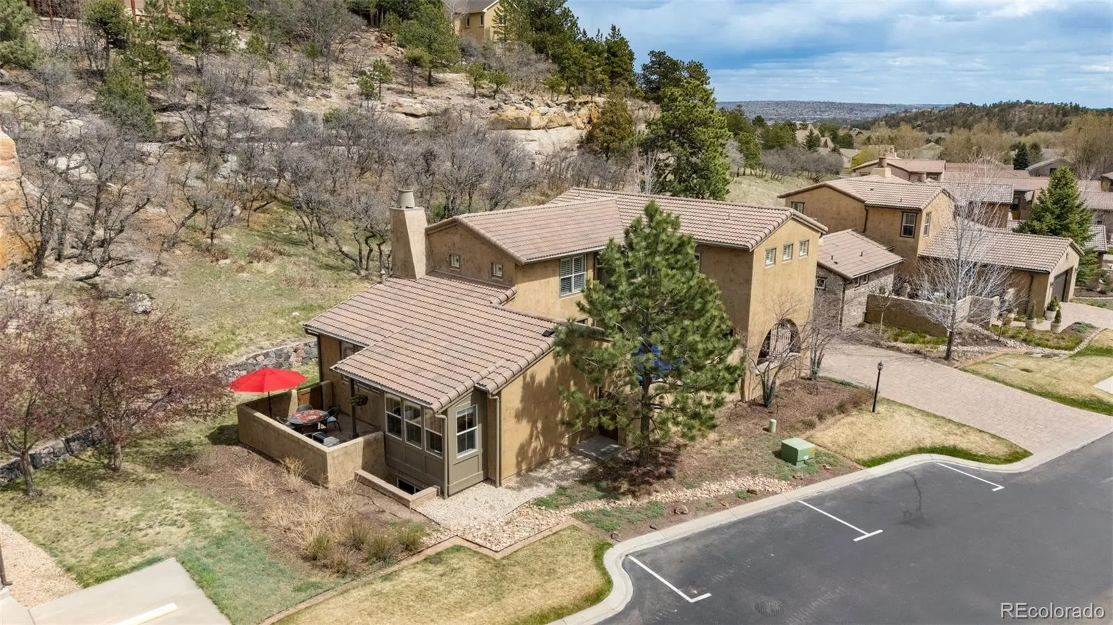 Nestled among the peaceful bluffs of Peregrine, this exquisite villa offers a lifestyle of relaxed elegance and effortless living. From the moment you arrive, the private front courtyard with a custom Tuscan mural invites you to unwind and embrace Colorado’s coveted outdoor lifestyle. Inside, the open and airy floor plan is perfect for both everyday living and entertaining. The remodeled kitchen is a chef’s dream—featuring expansive quartz countertops ideal for meal prep or showcasing a buffet, complemented by a charming breakfast nook beneath a stylish light fixture. The great room is warm and welcoming, centered around a cozy gas fireplace and seamlessly connected to the dining area. Natural light fills the space, creating a vibrant and inviting ambiance perfect for hosting friends and family. Fresh neutral paint throughout the main and upper levels, paired with new plush carpet, adds a modern and elegant touch. A unique window and window seat halfway up the staircase perfectly frame the surrounding mountain beauty—an architectural gem that captures the spirit of Colorado living. Upstairs, the spacious primary suite is a true retreat, complete with a luxurious 5-piece bath and a generous walk-in closet featuring custom California Closets. An additional en-suite bedroom on this level offers privacy and comfort for guests or loved ones. The finished basement expands your living options with two additional bedrooms—one highlighted by a rustic barn door—a stylish wet bar, and ample space for recreation or relaxation. Additional features include a main-level study/bedroom, central A/C, low-maintenance stucco exterior, and a durable tile roof. Located just minutes from trails, parks, tennis/pickleball courts.