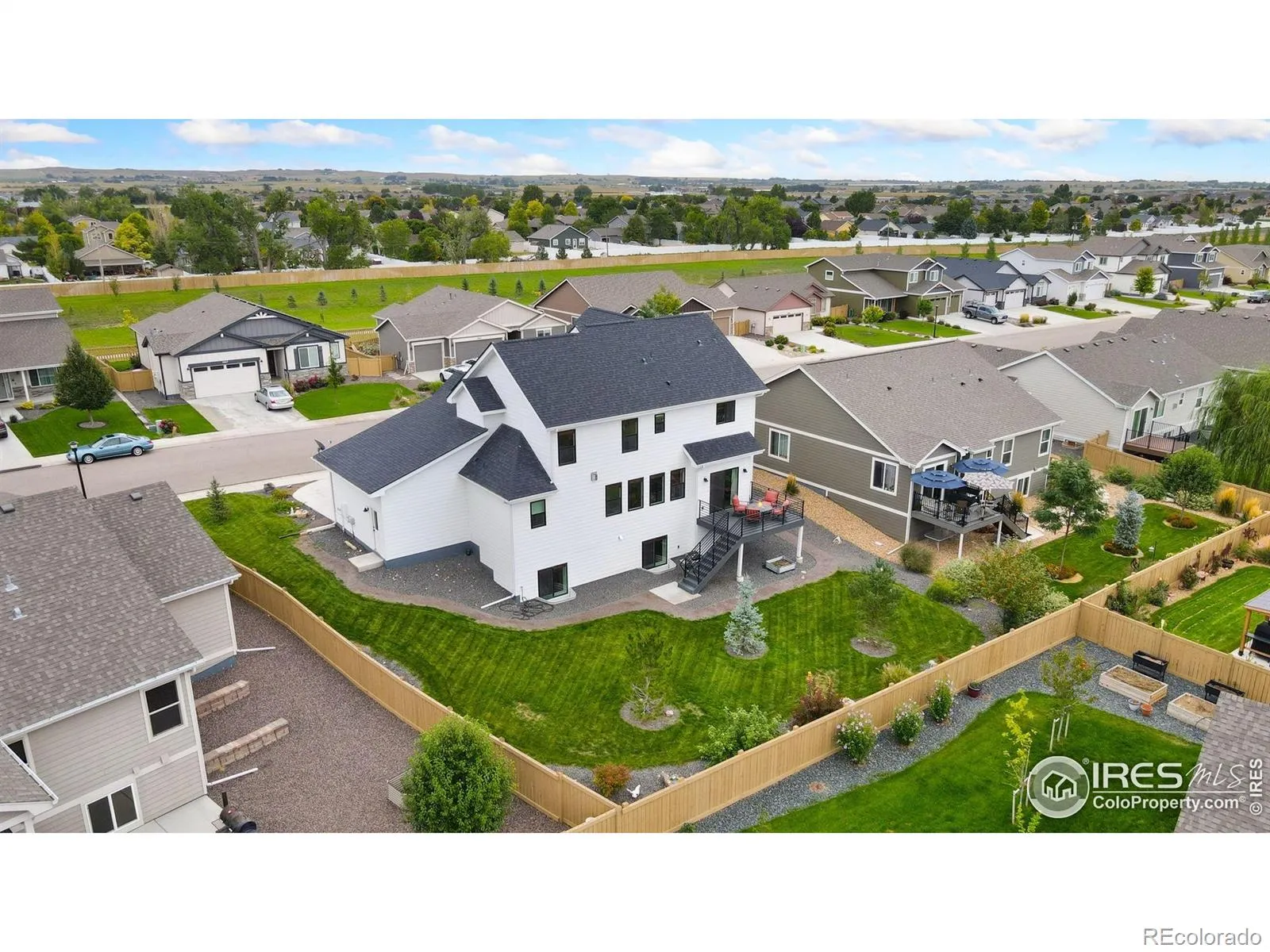This single-owner, custom-built home in Sage Meadows blends exceptional care, thoughtful design, and high-quality upgrades into one inviting package! Significant improvements were made after purchase, including a finished basement and professional landscaping with a full sprinkler system, making the home feel better-than-new and move-in ready. Inside, the home’s modern farmhouse design shines through with 9-foot ceilings, top-of-the-line LVT flooring on all three levels, and sleek black clad windows and patio door. The main living area features a gas fireplace and an easy flow into the kitchen and dining spaces, creating a perfect setting for everyday living and entertaining. The kitchen features stainless steel appliances, expanded cabinetry, quartz countertops, and a pantry to keep your cooking essentials organized. The separate dining area can also double as a secondary living space, depending on your needs. A dedicated office with a built-in hickory desktop provides the perfect workspace. The upper level features a spacious primary suite with tray ceilings, a luxurious 5-piece ensuite bath, and a walk-in closet. Two additional bedrooms share a Jack-and-Jill full bath, adding both privacy and convenience. The garden-level basement adds even more living space with an entertainment area, a fourth bedroom, a full bath, and additional storage space. Outside, the backyard includes a raised deck for outdoor gatherings and relaxation. Irrigation water is included with the HOA, keeping your lawn looking great all season long. The insulated 3-car garage offers plenty of room for cars, tools, and recreational gear. Enjoy community perks with access to an outdoor pool and park, right in the neighborhood. Located west of I-25, making trips to Fort Collins, Old Town & CSU a breeze. Additional highlights include a Class 4 impact-resistant roof, tankless water heater w/ circulation line, water softener & whole-house water filter.