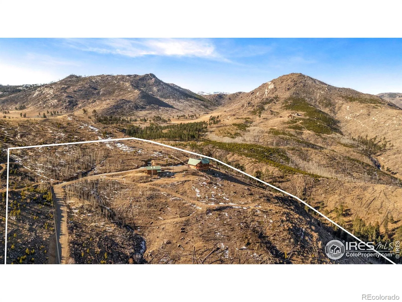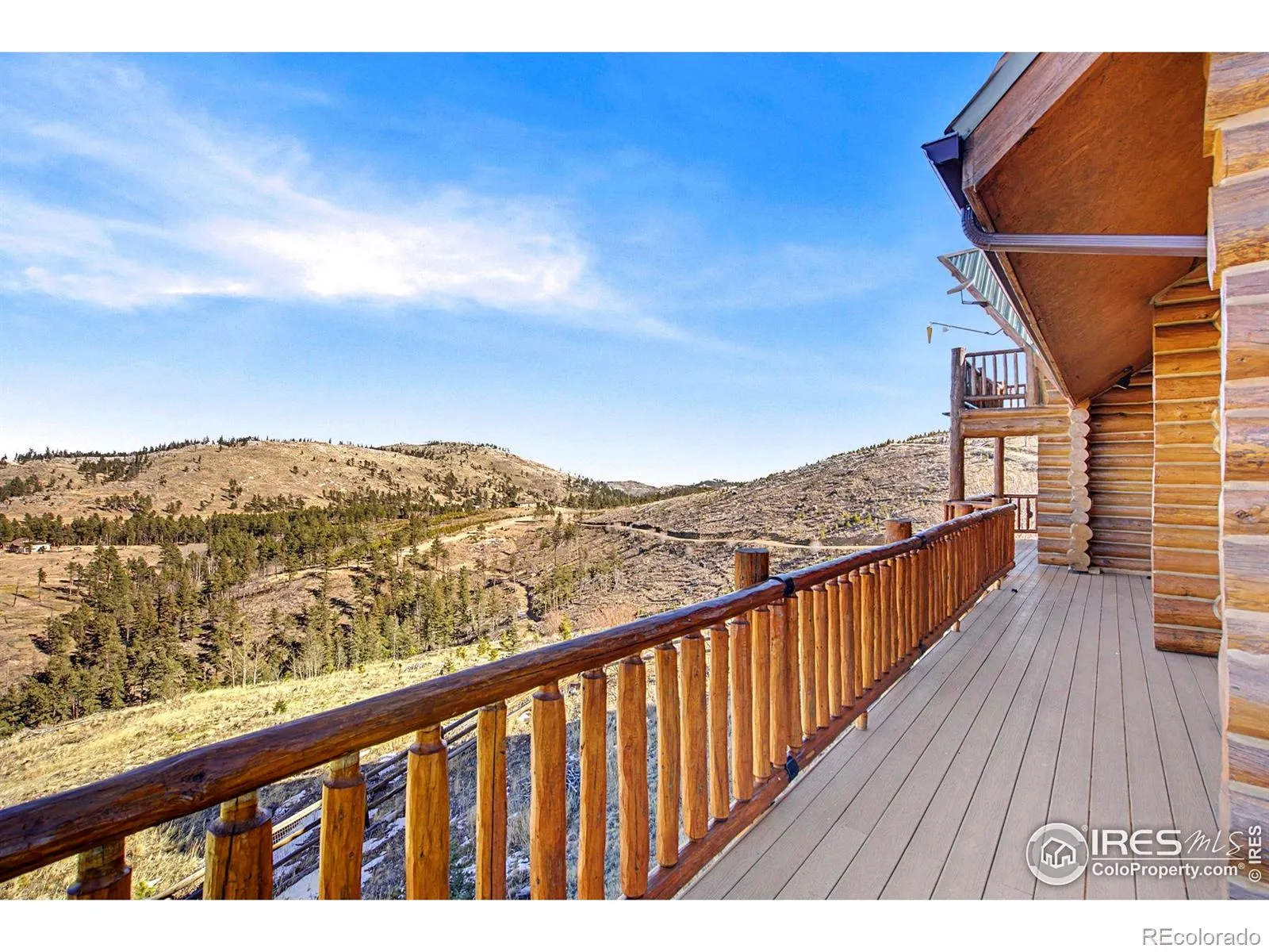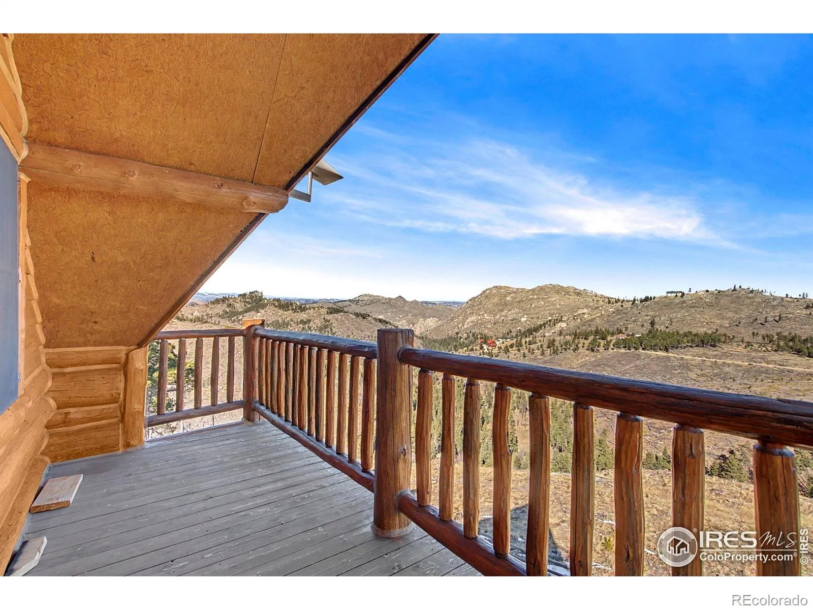 Live the quintessential Colorado lifestyle without boundaries. Set on 35 expansive acres that directly abut National Forest land, this property offers not just a home, but an endless backyard for hiking, hunting, and exploring. The residence itself is a beautiful 4-bedroom Swedish cope log home featuring a wrap-around Trex deck designed to capture 360-degree mountain views. Inside, the high-end tongue and groove pine and lofted ceilings surround you. The gourmet kitchen is a chef’s command center, featuring stainless steel appliances and a professional-grade Heartland 6-burner gas stove. The layout includes a main-floor guest wing with two bedrooms, a walk-out basement with a cozy wood stove, and a top-floor primary suite with a private balcony overlooking your vast acreage. In addition to two wood stoves, the home also has two high-efficiency Steffes room heaters and a propane powered Generac generator for peace of mind if electric supply is interrupted. Outside, you’ll enjoy a ~720 Sq.Ft. outbuilding with concrete floor, a garden shed steps from the home, and an RV pad with electric hookup. While the home is a warm and inviting shell, it allows you to cross the finish line on your own terms: a propane hook-up is already in place and ready for a furnace, and cosmetic finishes await your personal touch. Located in the Foothills for unmatched privacy and only 25 minutes from Vern’s Place and a short drive to Old Town Fort Collins.