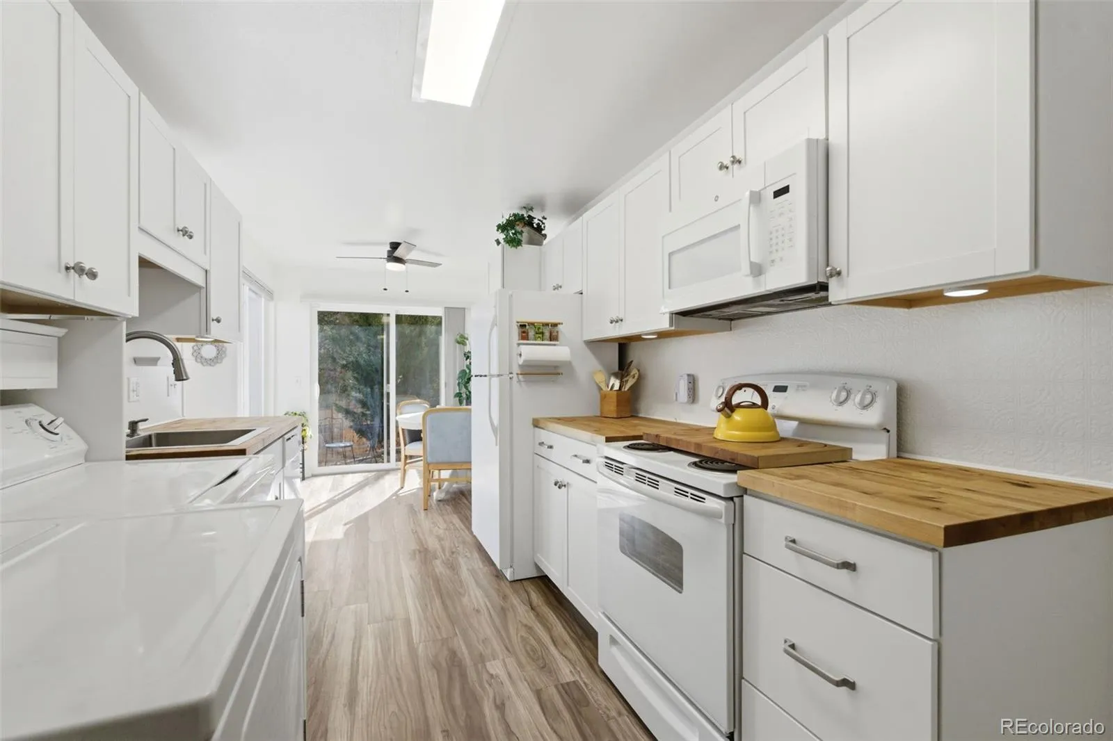 Fantastic, completely updated ground-floor condo in Arvada with no neighbors above! This incredibly unique unit offers both privacy and convenience and has been beautifully redone from top to bottom. Enjoy brand-new luxury vinyl plank flooring throughout, fresh interior paint, all-new baseboards, custom top-down/bottom-up blinds on every window, and stylish new interior lighting that gives the home a bright, modern feel.The gorgeous kitchen is a true standout, featuring new cabinetry with custom pull-out shelving, a pantry, new countertops, sink, mounted microwave, and dishwasher. All appliances are included—making this home truly move-in ready. The bathroom has been fully renovated with a new toilet, vanity, tile, and a custom sliding glass shower/tub door. The oversized primary bedroom offers excellent space and includes custom closet organizers with convenient motion lighting. The secondary bedroom is also spacious, bright, and inviting. Step outside to enjoy your own private outdoor space—perfect for relaxing or entertaining. The community offers fantastic amenities including a heated outdoor pool and playground. With new exterior paint completed in 2024 and thoughtful upgrades throughout, this condo is an exceptional opportunity in a fabulous community.