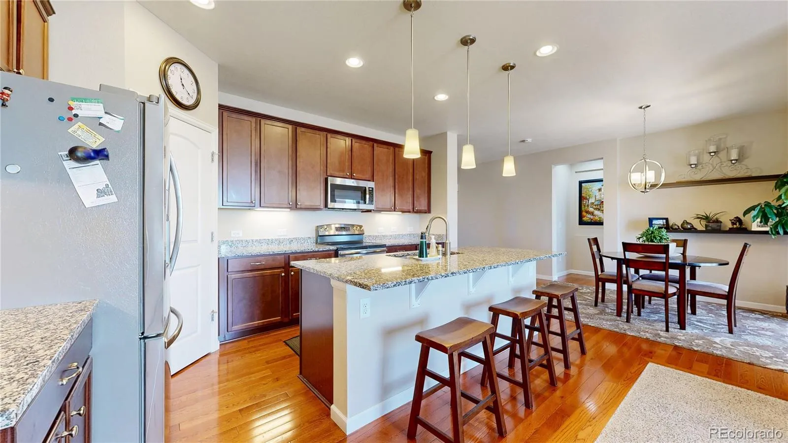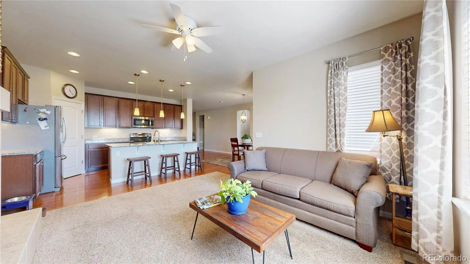 Beat the Spring rush to this beautiful, versatile ranch-style home in Palisade Park! Main level welcomes guests with gleaming hardwoods, a spacious office that can serve as extra bedroom, large dining room, and kitchen with granite counters | stainless appliance package. Cozy family room with fireplace perfect for a relaxing evening after you’ve spent some time on the private deck! Walk-out basement boasts multiple living areas, guest bed and bath, plus terrific workshop for anyone who craves a DIY project! Exterior newly painted and concrete patio resurfaced in 2025. Radon mitigation already in place. Backs to pond, open space, walking paths and more. Moments to the Broomfield Farmer’s Market and new Palisade Park Community Amphitheater. Conveniently located near I-25, The Orchard Town Center, and TopGolf. Easy access to DIA on E-470. Welcome Home!