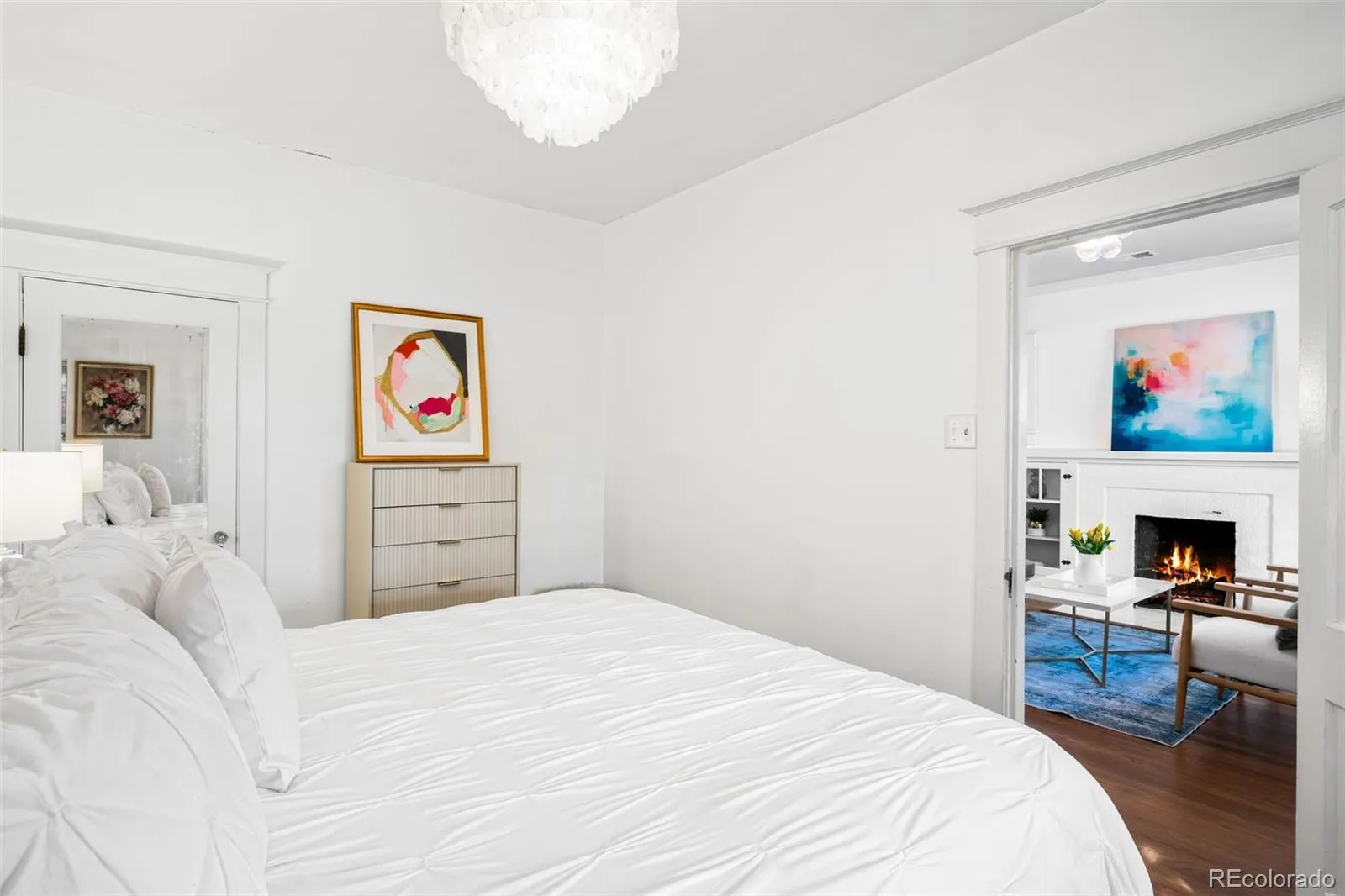 Inside, you’ll find refinished original wood floors, classic built-ins, and a fully gutted kitchen remodeled with luxury Monogram appliances, beautiful quartz countertops, and a large island featuring abundant drawers, a built-in microwave, and wine fridge. Both bathrooms have been completely renovated with high-end finishes. Two generous bedrooms complete the main level, enhanced by custom blinds and shutters throughout.