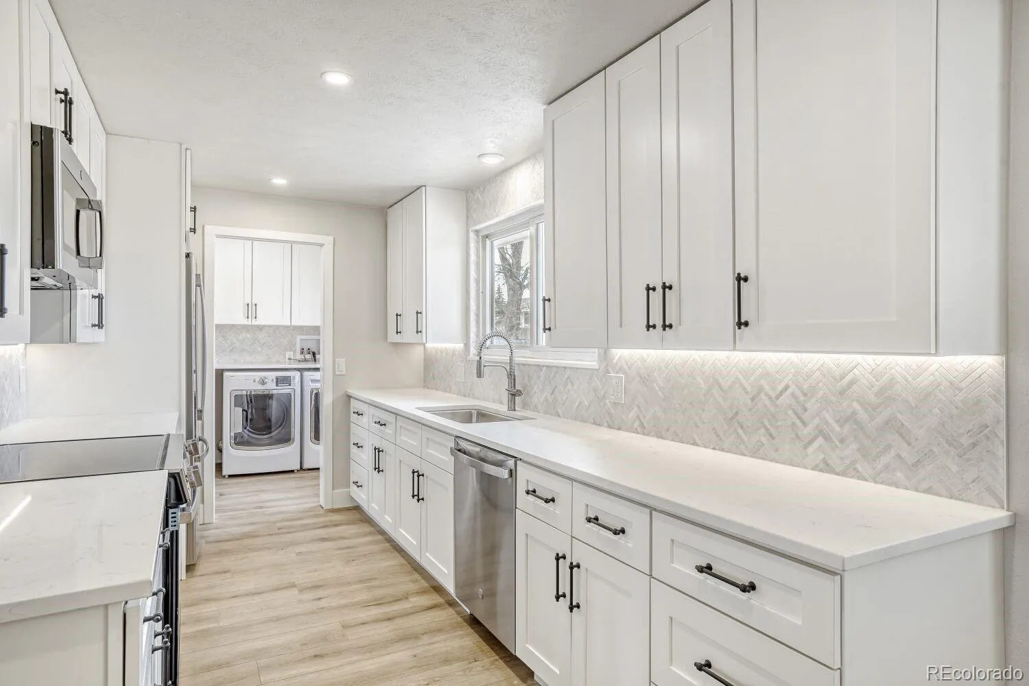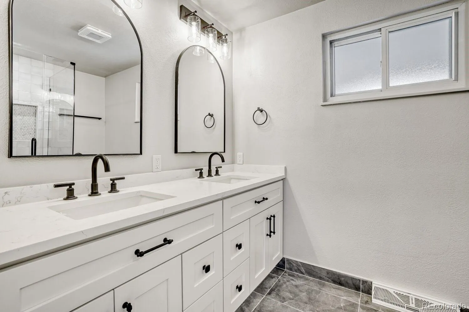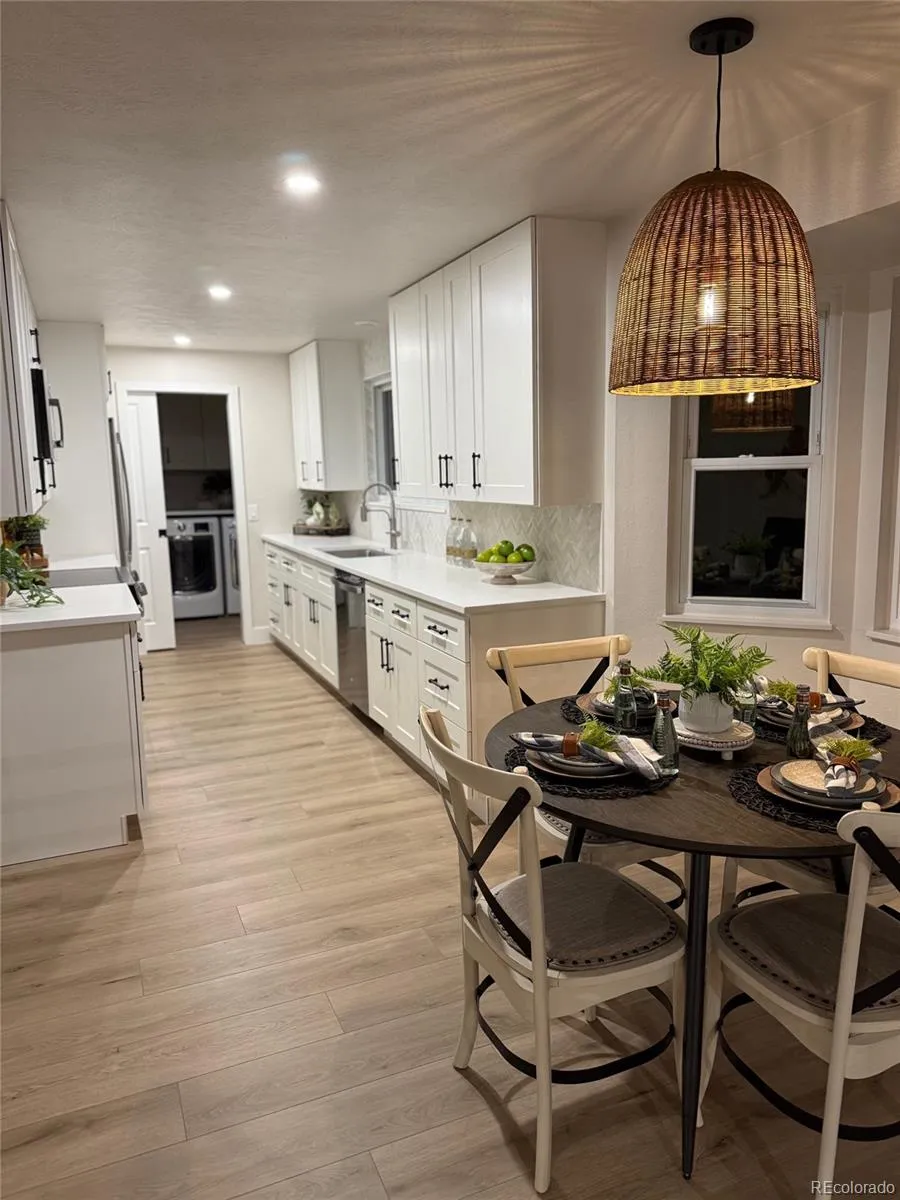 Beautiful ranch-style residence in the highly sought-after Columbine Knolls neighborhood! This 4-bedroom, 3-bathroom home sits on nearly a quarter acre and has been fully renovated to provide the best of everyday living and classic charm. The kitchen has been updated with beautiful quartz countertops, new soft-close cabinets and stainless steel appliances. Extending off of the kitchen is is a lovely family room with a cozy gas fireplace and brick surround, as well as a breakfast nook. An additional living/dining area sits towards the front of the home and provides the perfect space for entertaining a crowd. The primary suite offers a new spa-like bath with custom glass shower and walk-in closet. Three additional bedrooms as well as a full bath and laundry/mudroom complete this level of the home. In the basement you will find a large, open recreation room ideal for a home office, workout area or playroom as well as a half bath and a utility room with a new water heater installed in 2025. Step outside and enjoy the beautiful backyard boasting a stamped concrete patio and sizable yard, perfect for gardeners of every level. All just steps away from Marker Park with close proximity to trails, shopping, dining and more. You do not want to miss this property!
