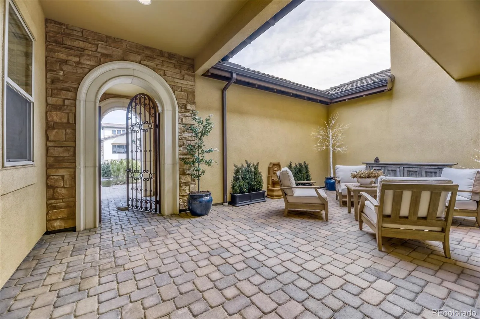 JUST LISTED – OPEN HOUSE this Saturday, Feb 14 12-3pm! WELCOME to the beauty, privacy, and prestige of the exclusive, gated Heritage Hills community—featuring a neighborhood swimming pool. Tucked on a quiet cul-de-sac, this immaculate Mediterranean-style home offers 5 bedrooms, 5 bathrooms, plus a main floor office and showcases an enhanced stucco exterior, lush landscaping, paverstone driveway, and gated courtyard. Beautifully remodeled with expanded and refinished real oak flooring, plush carpeting, pull-trowel finish, and fresh interior paint, the open-concept layout is ideal for everyday living and entertaining. The family room features a fireplace, a wall of windows, and direct access to the paverstone patio with outdoor fireplace, built-in BBQ grill, and motorized sun screens. The dining room overlooks the courtyard and includes a dry bar with beverage cooler. The remodeled kitchen is a standout with a 48″ Wolf range, Thermador convection wall oven and microwave, warming drawer, Tosca farmhouse fireclay sink, new faucet, and quartz countertops. A sun-filled sunroom overlooks the backyard and covered patio, creating seamless indoor-outdoor living. The main floor also includes a redesigned bathroom and private office with decorative paneling. Upstairs, the primary suite captures panoramic mountain views and features a luxurious five-piece bath with clawfoot tub and dual walk-in closets. Three additional bedrooms are upstairs, including one with an ensuite bath, plus a convenient laundry room. The finished basement offers a spacious recreation room with theater area and wet bar, along with a huge fifth bedroom perfect for a guest suite, gym, or craft room. Additional highlights include a three-car garage with floor coating and built-in cabinetry, concrete tile roof, attic fan, and high-efficiency HVAC with 3-zones for complete comfort. Ideally located near I-25, C-470, Charles Schwab, and Sky Ridge Medical Center. Visit the virtual tour at 9449WindingHill.com