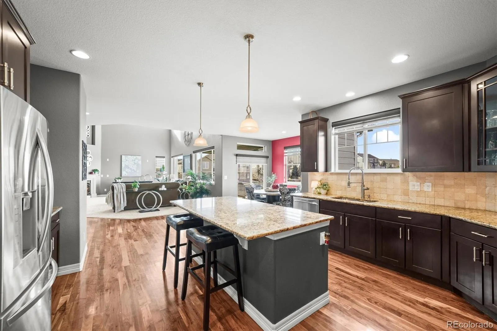 Experience Luxury Living on the Golf Course in Blackstone Country Club. Quietly nestled in the heart of the prestigious Blackstone Country Club community, this highly upgraded 6,028 sq. ft. home blends elegance, comfort, and breathtaking views. Featuring 5 spacious en-suite bedrooms, this home includes a stunning primary retreat with a bay window, sitting area, two walk-in closets, and a spa-inspired 5-piece bath. The chef’s kitchen is a true showstopper, offering granite countertops, high-end appliances, double ovens, an oversized refrigerator, a large island, butler’s pantry, walk-in pantry, and a sunlit breakfast nook overlooking the golf course. The flowing layout continues into a grand two story family room with 18-foot ceilings and a striking Tuscan stone fireplace—perfectly connected to the gourmet kitchen for effortless entertaining. A massive walkout basement with tall ceilings, big windows, and plumbing rough-ins gives you endless possibilities for future expansion. Step outside to enjoy Colorado sunsets from the covered bi-level deck, or gather with friends around the custom patio and gas fire pit with serene golf course views. Additional standout features include: • 2nd-floor laundry • Custom Matching Blinds throughout • Custom lighting & designer finishes • Granite and Corian countertops • Jack-and-Jill bath • Vaulted ceilings • Oversized 3-car garage • Upper and Lower (2) HVAC systems • 2 Large Hot Water Heaters • Upgraded flooring • and more..