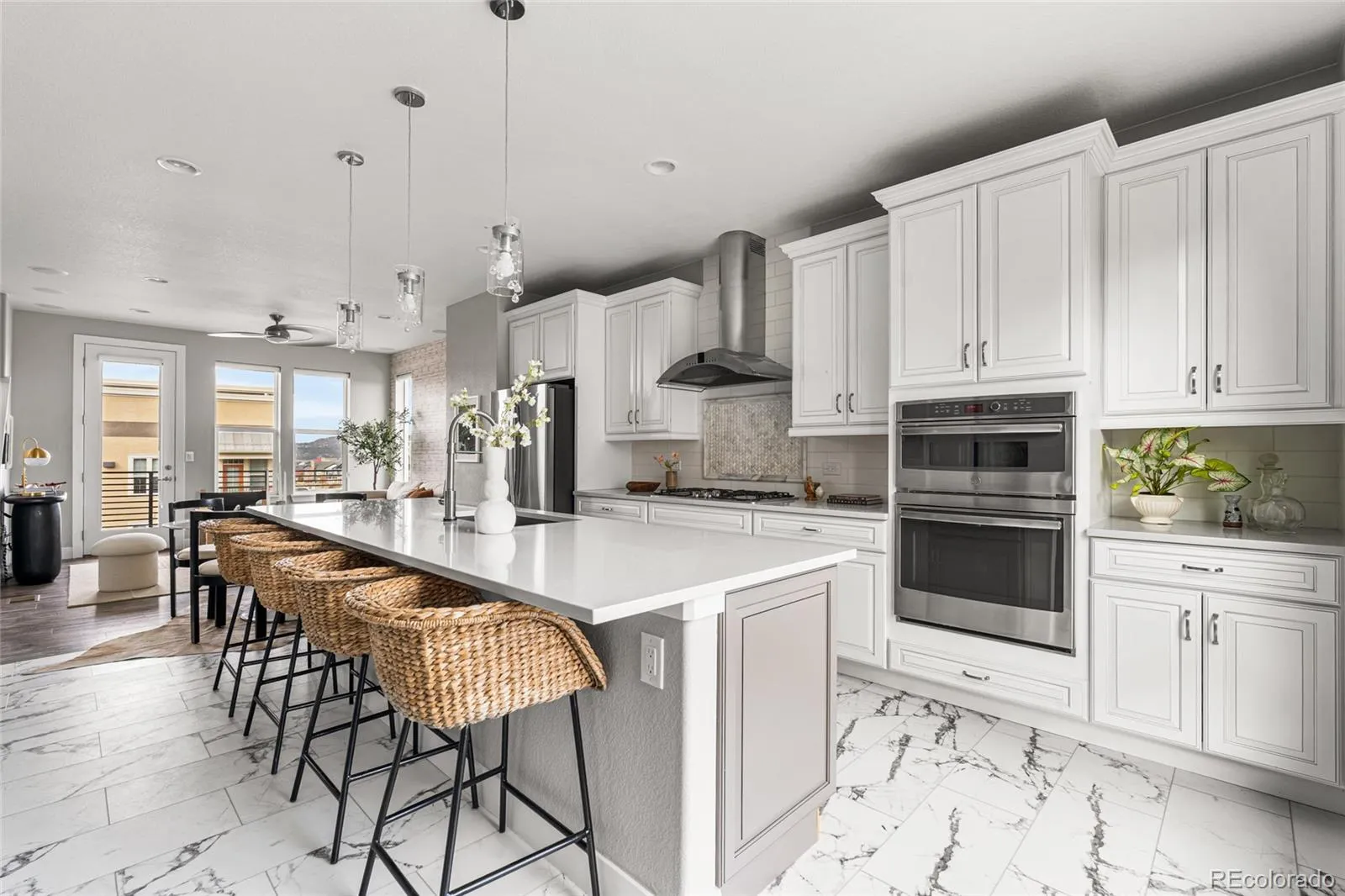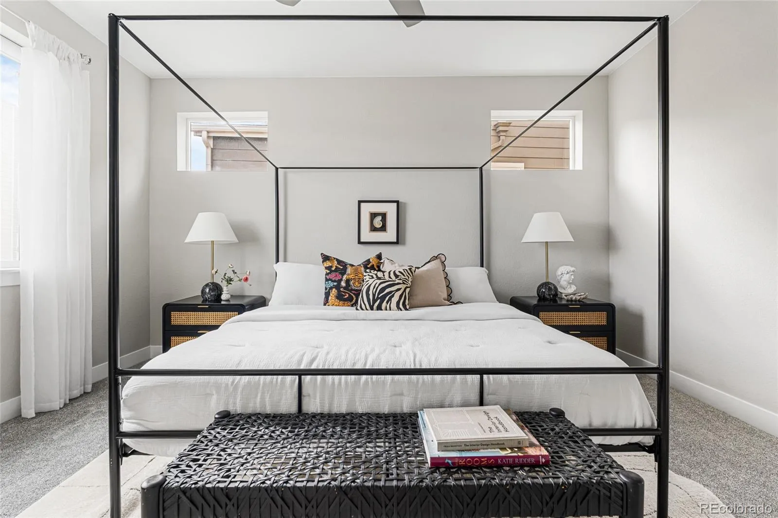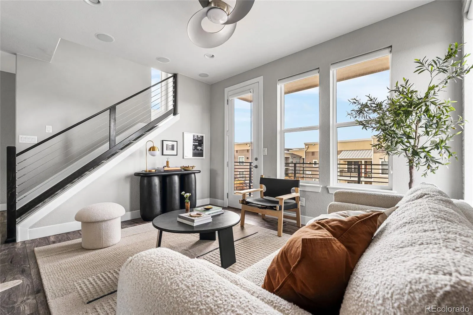 Welcome to 2543 Mayotte Way, a stunning 2-bed, 3-bath home offering a unique urban design and rooftop patio with breathtaking mountain and city views. Designed for low-maintenance living, this contemporary residence is bright + sunny with 9 ft ceilings and elegant upgrades that make it better than new. You’re welcomed by an inviting foyer and bonus room that can be a versatile flex space or office. The main level is centered around the gourmet kitchen, the heart of the home. With quartz counters complemented by gorgeous backsplash, the eat-in kitchen offers a large island, ample cabinets with crown molding, gas cooktop, pantry, and a coffee bar nook. Perfect for entertaining, the open-concept floor plan flows seamlessly to the dining area and into the living room adorned with a balcony. A powder bath adds convenience for guests. Upstairs, you’ll find the primary suite with spacious walk-in closet and bathroom with dual vanity and custom walk-in euro-style shower with dual shower head. The second bedroom with ensuite bath and laundry complete this level. Step outside to the private rooftop patio where you can unwind or entertain and enjoy unobstructed panoramic views. Castle Rock is booming and this home puts you right in the middle of it. Endless shopping, restaurants, and parks and trails are at your doorstep. Plus award winning schools just minutes away and quick access to I-25 for an easy commute. Schedule your showing today & see why CityScapes at The Meadows is one of Castle Rock’s most desirable locations!