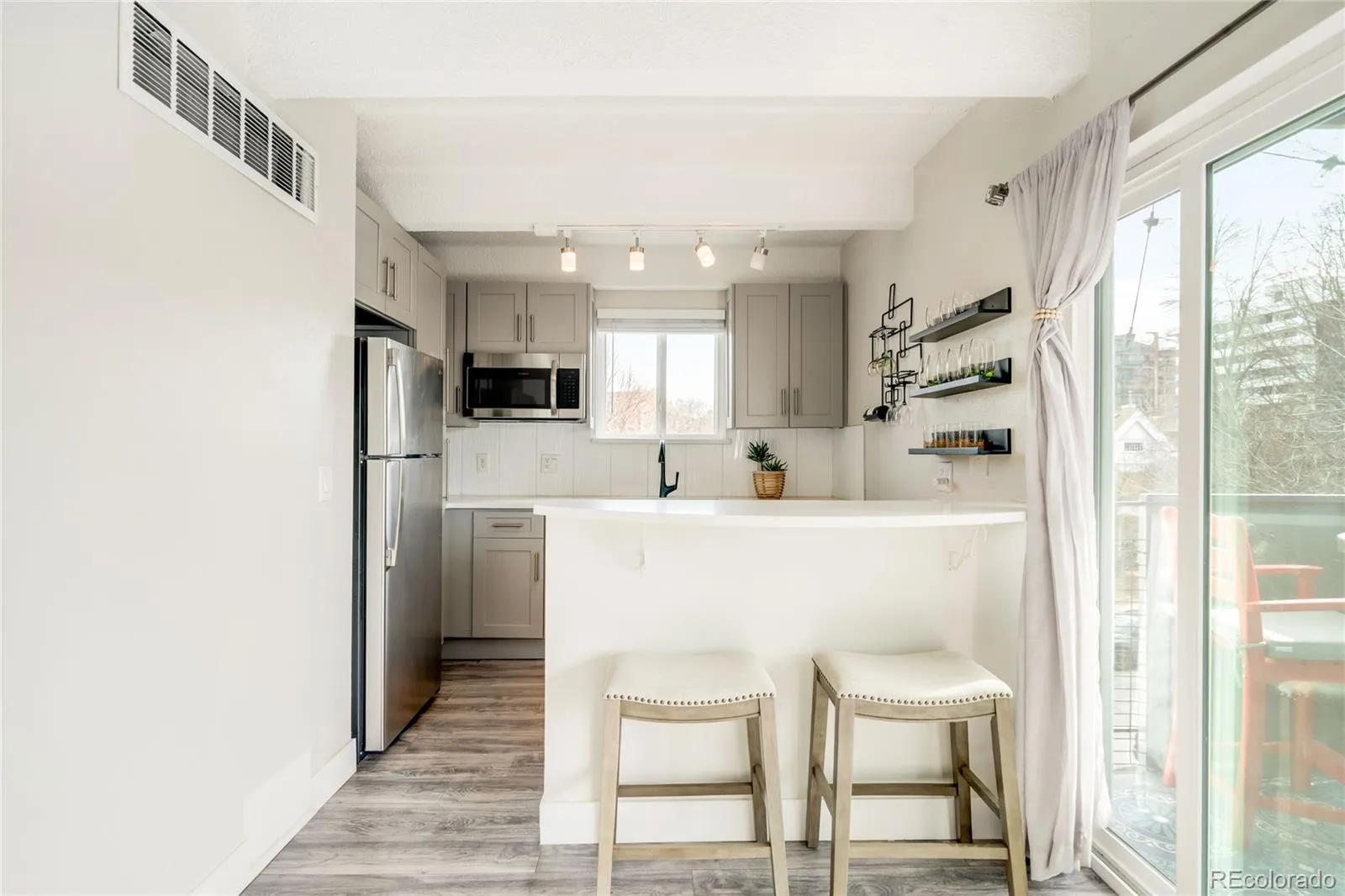 Open the door to a perfectly updated residence in Denver’s most central neighborhood. Located on Cheesman Park, this corner unit is home to designer details, modern finesse and spectacular flow. The open floorplan moves effortlessly from the foyer with two storage spaces to the spacious living area with a cozy wood-burning fireplace. The connected kitchen and dining space makes entertaining a breeze. A sizable walk-out balcony adds a private outdoor retreat. The new chef’s kitchen showcases shaker cabinets, a quartz island with bar seating and newer appliances, tile & lighting. The chic primary bedroom has a new en-suite shower, vanity & large walk-in closet. The spacious secondary bedroom features a sunny southern exposure and a large closet. Revel in the convenience of multiple storage closets, 2 full baths, a secured, underground parking space w/ additional storage and 2 elevators for residents. The well-managed HOA offers several amenities including a newly painted exterior w/ fresh landscaping, updated interiors, a large pool, gym space and club room. Don’t miss this rare opportunity for a zero-maintenance residence in the heart of Denver at an unprecedented price point for a 2 bed + 2 bath!