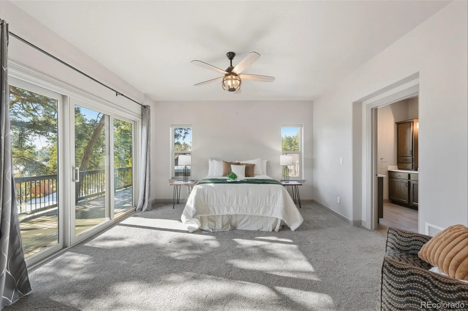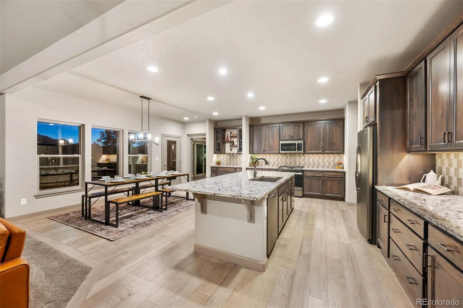 Discover the ultimate Colorado retreat in the coveted Paradise of Colorado community, where every day greets you with postcard-worthy views of Pikes Peak. This thoughtfully designed home prioritizes effortless main-level living, marrying breathtaking mountain panoramas with high-end details. The heart of the home is an airy great room flooded with sunshine pouring through dramatic South-facing wall of windows. A stone gas fireplace takes center stage, flanked by custom built-in bookshelves. The kitchen impresses with granite countertops, soft-close cabinetry, clever under-cabinet outlets and lighting, and a generous island with breakfast bar seating. It opens to the dining and living spaces, making it a natural hub for lively gatherings or family meals. The master suite is your private sanctuary, complete with a 5 piece bath featuring a deep soaking tub, walk-in shower, dual vanities, and an oversized walk-in closet with custom storage. Best of all, wake up to those iconic vistas of America’s Mountain directly from the bedroom, just as you’ll enjoy them from the kitchen and the walk-out lower level. Outside awaits a massive composite deck—partially covered for all-weather enjoyment and an ultra-private hot tub. Two comfortable secondary bedrooms share a true Jack-and-Jill bathroom, and a spacious laundry room that offers direct entry to the attached three-car garage. The full walk-out lower level is a clean canvas awaiting your creativity—whether you envision extra bedrooms, a game room, or home theater – all while framing those same Pikes Peak views. This property borders a 2.5+ acre parcel, ensuring no future development directly adjacent and significantly enhancing your privacy. Thoughtfully planned landscaping, blending xeriscaping and lush flora, adds to the striking curb appeal. This is mountain luxury at its finest: unbeatable views throughout, premium craftsmanship, and pure Colorado living—all wrapped into one exceptional home.