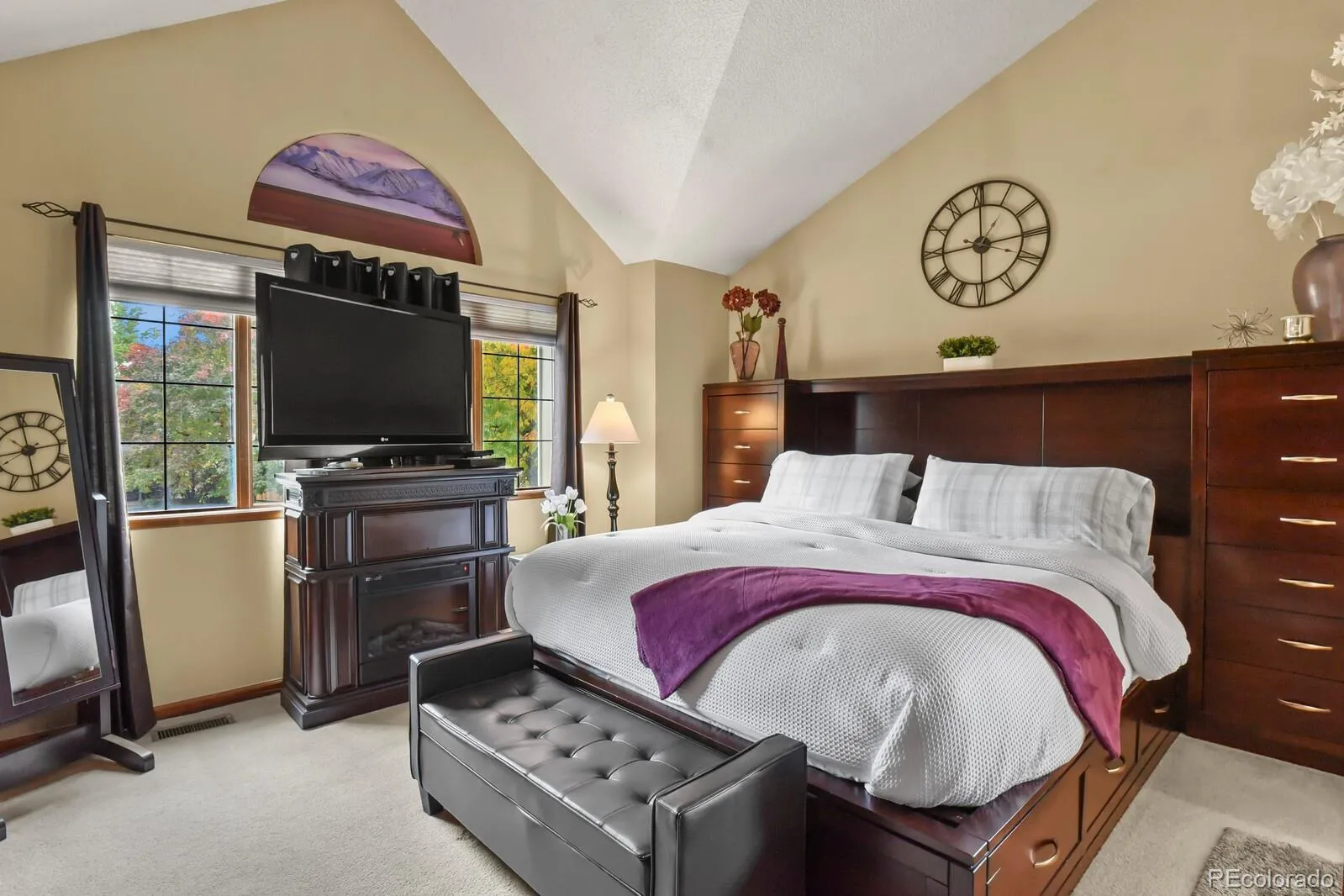 Tucked away in a quiet cul-de-sac in the desirable Columbine West neighborhood! This exceptionally well cared for home, is situated on a generous 13,800 sq ft lot! Inside, you’ll love this 4 bed, 4 bath home, with vaulted ceilings, spacious entry, and the bright, open-concept of the living space. The kitchen has an extended run of cabinetry and countertop space, a dedicated pantry, and eat in area. A separate dining area gives you the flexibility for everyday meals and bigger gatherings. You’ll also appreciate the dedicated sun filled family room complete with a cozy wood burning fireplace and a stylish powder room for guests. Upstairs, you’ll find a generous Primary Suite complete with his and hers closets, a beautiful en-suite bath, plus 3 additional bedrooms. The basement is finished, has an entertainment area or you can easily convert to a bedroom, 3/4 bath and plenty of storage. From the open main level to the backyard setup, this home was thoughtfully designed for everyday living and easy entertaining. RV parking for added convenience. Updates include new electrical panel, south facing windows, and freshly painted rooms. Located in a wonderful neighborhood, this move-in-ready home is close to trails, parks, shopping, and dining. Easy access to C-470 puts you minutes from major highways and just a short drive to the Rocky Mountains for endless outdoor adventure. Wonderful neighborhood trails, scenic mountain views.