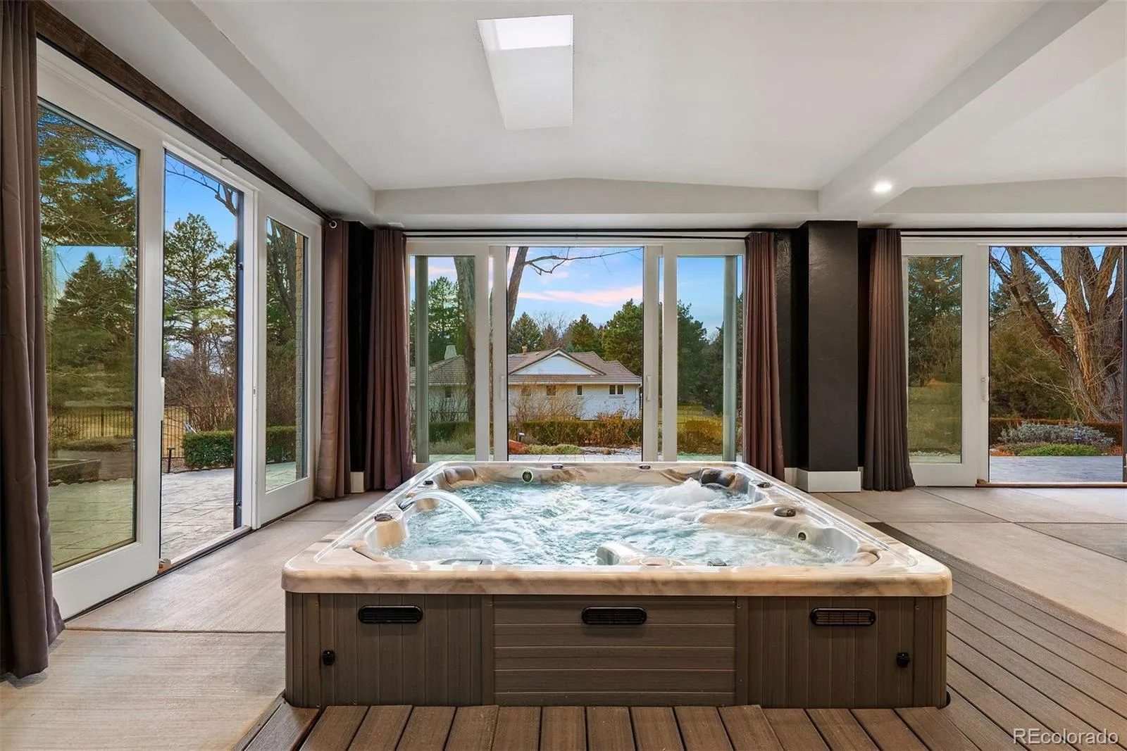 Completely remodeled from top to bottom in 2018, this thoughtfully reimagined ranch in coveted Cherry Hills Village offers exceptional scale, versatility, and design on a beautifully landscaped .75-acre lot. The floorplan is intentionally flexible, designed to adapt to a wide range of lifestyles. A circular drive, expansive driveway, and 3-car garage provide abundant parking and an impressive arrival. At the center of the home, the kitchen opens to both a breakfast nook and formal dining space, flowing seamlessly into three expansive main-floor living areas offering room to gather and entertain. The sellers’ favorite space, and one of the home’s most unique features, is the fully conditioned 1,200-square-foot sunroom. Heated and cooled with mini splits for year-round comfort, this bright, above-grade flex space lives like a finished lower level, but with sunshine. Envision a game room with pool table and foosball, an entertainer’s lounge with bar seating, a playroom, art studio, golf simulator, or additional living retreat. A hot tub is currently in place (and can be removed), and the sellers are offering a flooring allowance so the next owner can tailor the space to their vision. Four bedrooms, five bathrooms and laundry are all located on the main level, creating rare single-level livability. The primary suite is a true retreat, featuring dual walk-in closets and a spacious bath designed for comfort and functionality. The light and bright garden-level basement continues the theme of flexibility with a spacious family room and wet bar complete with dishwasher and wine refrigerator, an additional bedroom, 3/4 bath, and a dedicated gym that could easily convert to a sixth bedroom if desired. Outdoor living is equally inviting, with stamped concrete patios and generous yard space offering room to host, play, or simply enjoy the privacy of the .75-acre setting. Major systems have been thoughtfully updated, including a new boiler and tankless hot water heater.