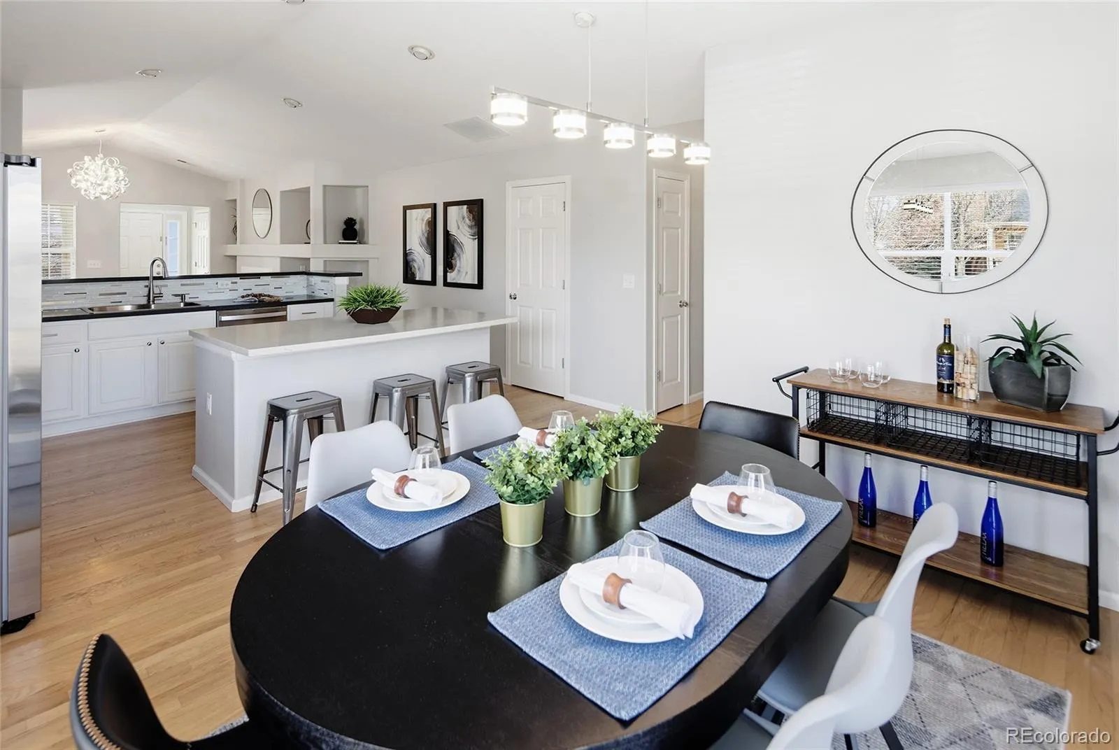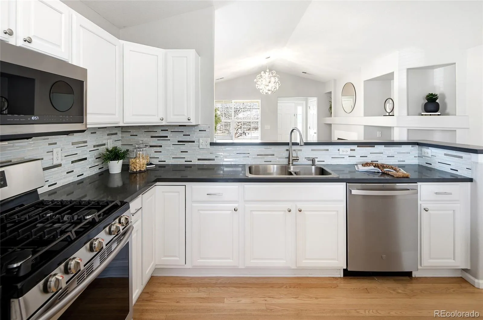 Great opportunity to call this fabulous ranch your very own! Perched on a corner lot in a cul-de-sac, adjacent to the community pool. This beauty features hardwood floors, open floorplan, vaulted ceilings and mature landscaping. The chefs kitchen boasts quartz countertops, a huge center island, stainless steel appliances and convenient countertop seating. The huge remodeled primary suite is a true retreat with a luxury vinyl planking, walk-in closet, remodeled bath, and a vaulted ceiling. Enjoy the private back yard after a day at the pool or curl up in front of the fireplace this winter. This one feels like home!