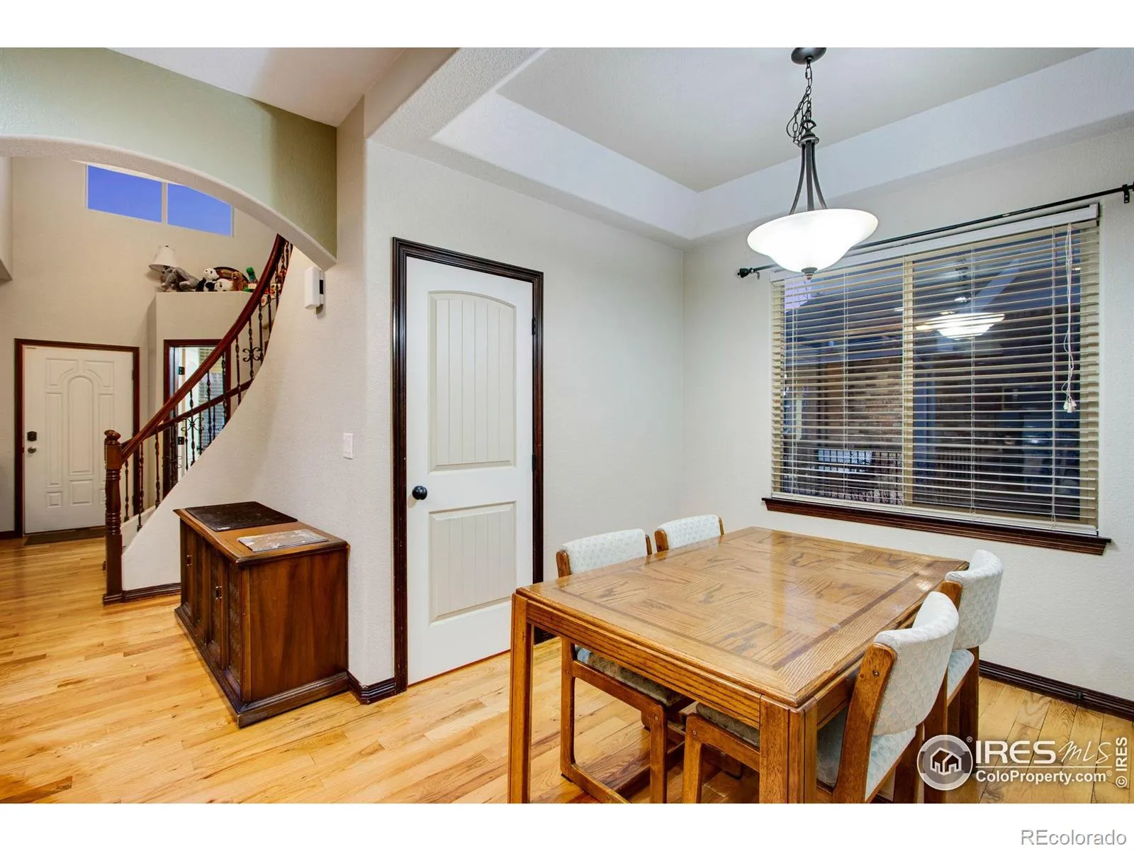 Experience why Fort Collins, Colorado is consistently ranked among America’s top places to live and retire, with vibrant Old Town Fort Collins just minutes away. Welcome to this hard-to-find Fort Collins townhome that truly has it all, just minutes from CSU, shopping, dining, breweries, entertainment, parks, trails, and endless outdoor recreation, with Old Town Fort Collins only a short drive away. Fort Collins is frequently voted as one of the best places to live and/or retire in America, and this home puts you right in the heart of it. This desirable END UNIT features a full basement, private yard space, and an oversized 2-car heated detached garage. NO METRO TAX. Step inside to a spacious foyer with hardwood floors, coat closet, rounded corners, knockdown texture, and energy efficient double-pane windows. The bright and open living room offers vaulted ceilings, a ceiling fan, and a cozy corner gas fireplace with wood mantel. The circular staircase with iron railing and decorative tile inlay adds character and charm. The kitchen includes stainless steel appliances, tile countertops and backsplash, knotty alder cabinets with crown molding, under-mount lighting, abundant can lighting, a lazy Susan, and a breakfast bar, with a cozy dining area open to the kitchen. Upstairs features all three bedrooms plus a convenient laundry room with washer and dryer included. The primary suite offers Rocky Mountain views, vaulted ceilings, fan, and a private bath with tile flooring and backsplash. The basement boasts 9′ ceilings, engineered silent flooring, floating walls, two egress windows, and rough-in for a future bath. Enjoy the wrap-around front porch, enclosed back patio perfect for pets, stone and stucco exterior for insurance savings, and ideal sun exposure for sunrise, sunsets, and natural snowmelt. Fire hydrant within 500 feet for additional insurance savings. E-mail broker for a detailed list of features, floor plan or to show