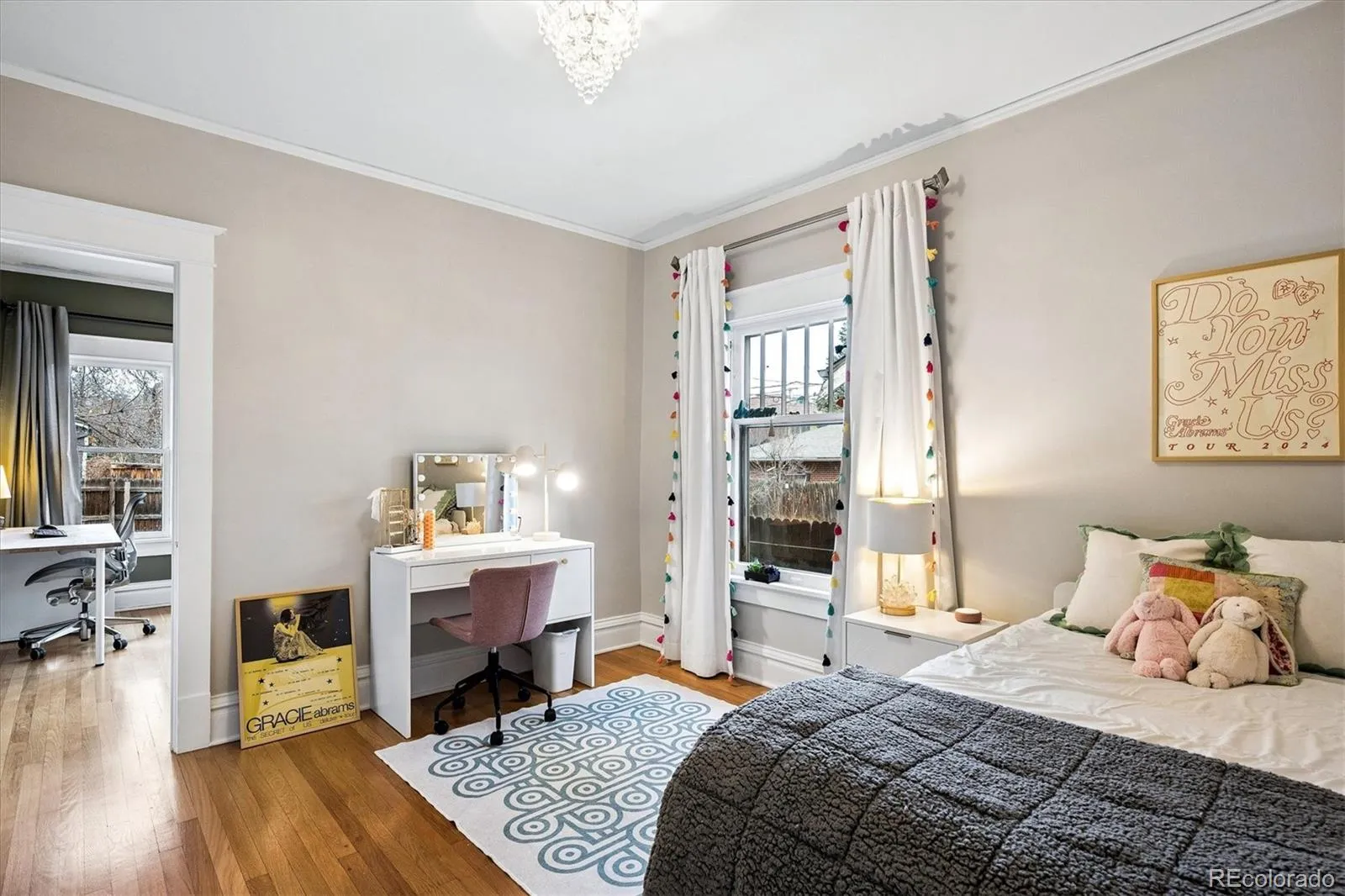 Located in the heart of Congress Park, this beautiful bungalow blends classic character with modern charm. Flooded with natural light, this home showcases original crown molding and hardwood floors throughout. The spacious main floor offers a large kitchen open to the dining room and cozy living room with a fireplace. The main floor also boasts three bedrooms and a remodeled bathroom, with a fourth bedroom and an en suite bathroom in the basement. The layout of this home offers plenty of versatility. A second living space in the basement is great for a media room or playroom. Sitting on a generous lot, the professionally irrigated landscape features mature, region-appropriate perennials and a productive fruit garden—designed for beauty, sustainability, and low maintenance. Eco-conscious upgrades include fully owned solar panels and a NACS/Tesla EV charger, which significantly reduce utility costs. A front-accessible driveway leads to a garage for convenient parking and storage. Enjoy indoor-outdoor living with a large covered front porch, a flagstone patio, and a fully fenced yard, ideal for entertaining or relaxing on a fabulous Colorado evening! Property Highlights: Four Bedrooms, two bathrooms, spacious floor plan, tons of original charm with modern updates, large laundry room with utility sink, and private backyard. This home is just blocks from Congress Park/Pool, the Denver Botanic Gardens, Cherry Creek North, the shops on 9th and CO, along with the historic theaters along Colfax Ave. Easy access to downtown Denver!