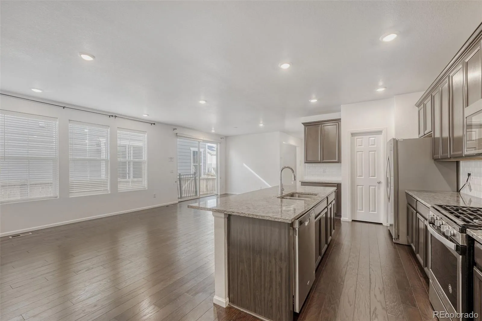 Welcome home to this charming two-story paired home in Olde Town at Parker, offering a comfortable open floor plan designed for easy living. The main floor features a versatile flex room—perfect for a home office or study—along with a spacious kitchen complete with granite countertops, stainless steel appliances, a large island, and an oversized pantry. The kitchen flows seamlessly into the dining area and family room, creating an inviting space for everyday living and entertaining. Sliding glass doors open to the side yard with a patio area, ideal for relaxing or hosting guests outdoors. Upstairs, the spacious primary suite includes a ¾ bath and a large walk-in closet. Two additional bedrooms, a full bathroom, and a conveniently located laundry room with extra space for storage complete the upper level. Additional highlights include a drywalled two-car attached garage with epoxy flooring and new carpet. Residents enjoy access to Sandero’s Creek community amenities including a pool, clubhouse, parks, and playgrounds. Ideally located with easy access to Parker Road shopping, dining, and entertainment, within award-winning Douglas County Schools and near American Academy. Enjoy peaceful living in this welcoming community. Schedule your showing today!