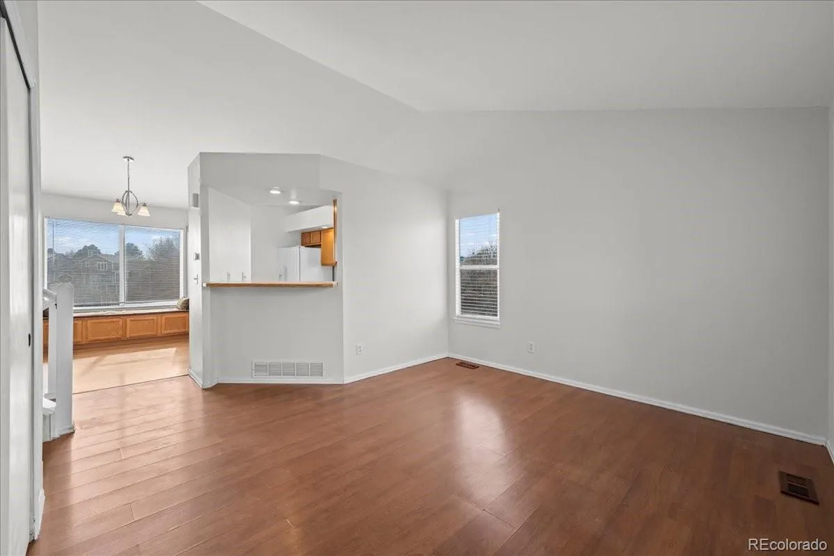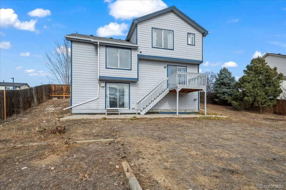 A rare find with a larger lot, this home offers added privacy with no neighbors directly behind or on one side, backing and siding to green space. A welcoming front porch leads into a bright living room with vaulted ceilings and large windows that bring in abundant natural light. The open kitchen and dining area are well suited for everyday living and include a cozy window seat. Just off the kitchen, the family room features a fireplace and sliding glass doors that open to a deck overlooking the backyard—ideal for outdoor dining and relaxing. Upstairs, the primary suite features vaulted ceilings, a walk-in closet, and a private bath. Two additional bedrooms and a full bathroom complete the upper level. The walk-out basement includes laundry and offers the opportunity to finish for additional living space. A large crawl space provides excellent storage with future build-out potential. The fully fenced backyard backs and sides to green space with no homes behind, creating a more private, natural setting—perfect for gardening, play, or entertaining. Recent improvements include a new roof, gutters, fresh paint, and smooth ceilings. Conveniently located near parks, trails, recreation centers, shopping, dining, and I-25, with McCoy Hills Park just up the street.
