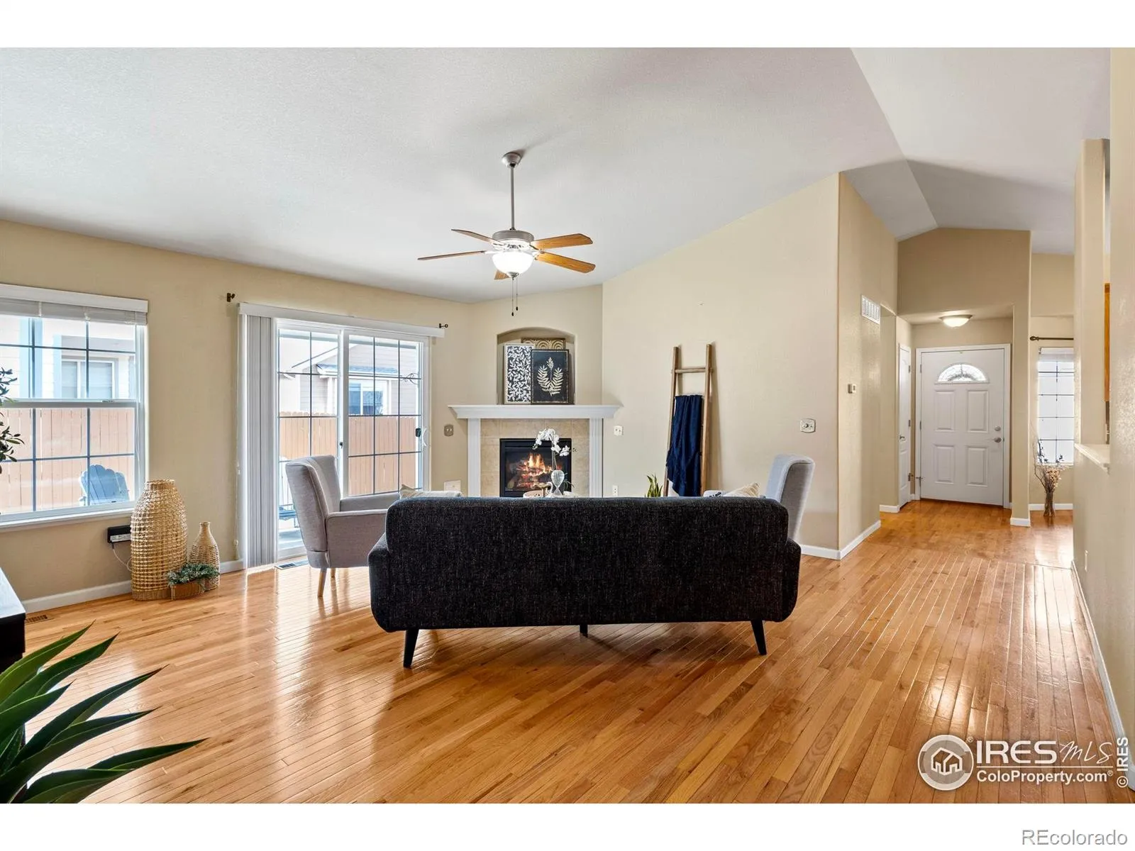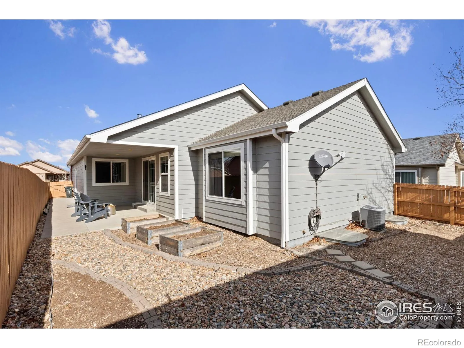 Welcome home to this beautifully maintained 2-bedroom, 2-bath ranch-style patio home in a quiet neighborhood in Johnstown. Designed for easy living, this low-maintenance residence features rich hardwood floors throughout the main living areas and a bright eat-in kitchen perfect for casual dining.The spacious living room showcases vaulted ceilings, a cozy fireplace, and direct access to the private patio. Enjoy the charming covered front patio, a perfect spot for coffee, conversation, or unwinding at the end of the day.The primary suite offers vaulted ceilings and a large walk-in closet. Downstairs, the unfinished basement provides excellent potential for future expansion. Previously used as additional living space, it is already equipped with a vanity and toilet – offering a head start for buyers looking to customize.The xeriscaped backyard with garden boxes allows for outdoor enjoyment without the heavy maintenance.Thoughtful upgrades include a new roof in 2024 and an active radon mitigation system. New carpet on the stairs complements the durable hardwood flooring throughout the rest of the home. For additional confidence, the home is being offered with a 2-year home warranty, helping protect your investment from day one. Ideally located with quick access to I-25, Sunrise Park, Woods Market, and an array of nearby stores, this home combines comfort, convenience, and opportunity.