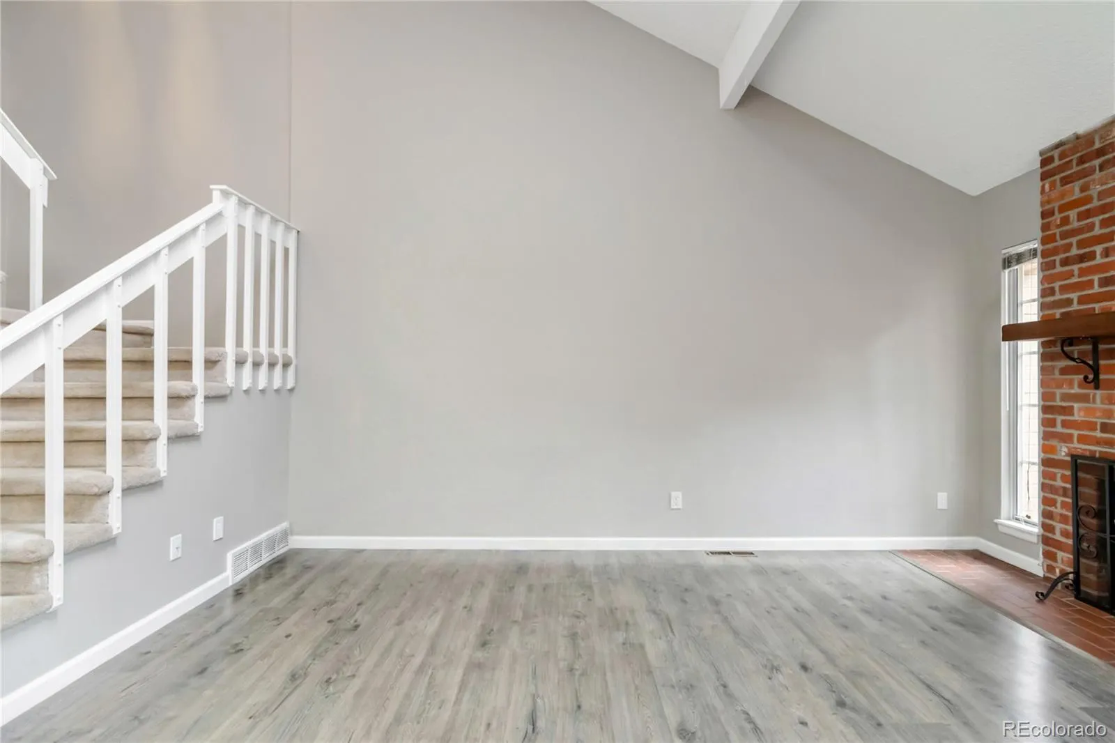 Step inside and you’ll immediately notice the volume of the space. Vaulted ceilings and skylights bring in incredible natural light, while warm wood details and a timeless brick fireplace create a comfortable, welcoming feel. The loft offers flexibility to fit your lifestyle, whether that’s a home office, fitness space, reading nook, or second living area.