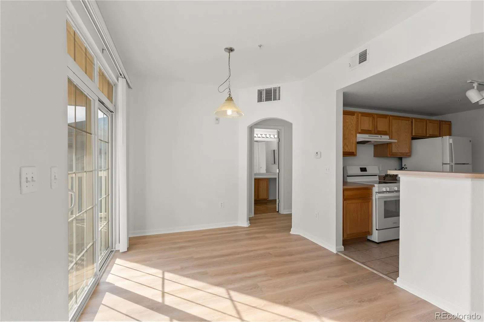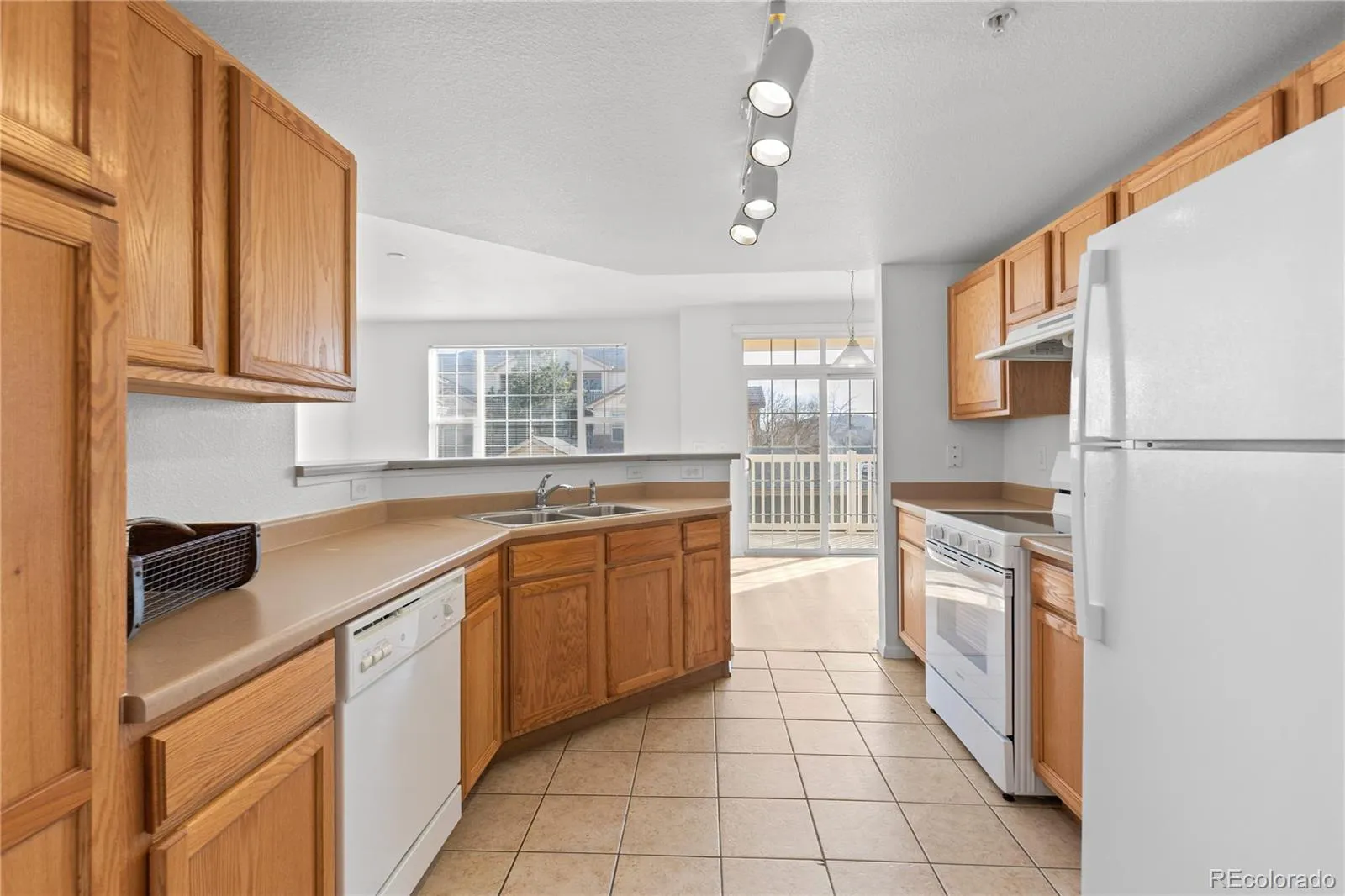 LOCATION, LOCATION! Bright and Sunny! End-Unit 2 Bedroom with 2 Full Baths, Laundry Room, Carport & TWO Private Balconies! This Unit is in Turn Key Condition! The Open Floor Plan Features a Cozy Fireplace, New Flooring & Large Windows. Large Kitchen w/New Range & Lots of Storage and Counter Space. Dining Space with New Flooring & Balcony Access. Bedrooms are on Opposite Sides for Privacy! Primary Suite w/En-Suite Bath. Two Sinks, Lots of Counter Space & a Spacious Walk-In Closet. The Primary Suite has its own Covered Balcony w/Western Views. Second Bedroom has a Large Closet & Full Bath Access. Lots of Counter Space, Storage, Tub & Shelving. Spacious Laundry Room that Includes the Washer & Dryer. New Carpet & Paint. Storage Area on the Balcony. This Unit Includes a Carport and there is Open Additional Parking. Resort Style Amenities. Close to DIA, Shops Restaurants & More.